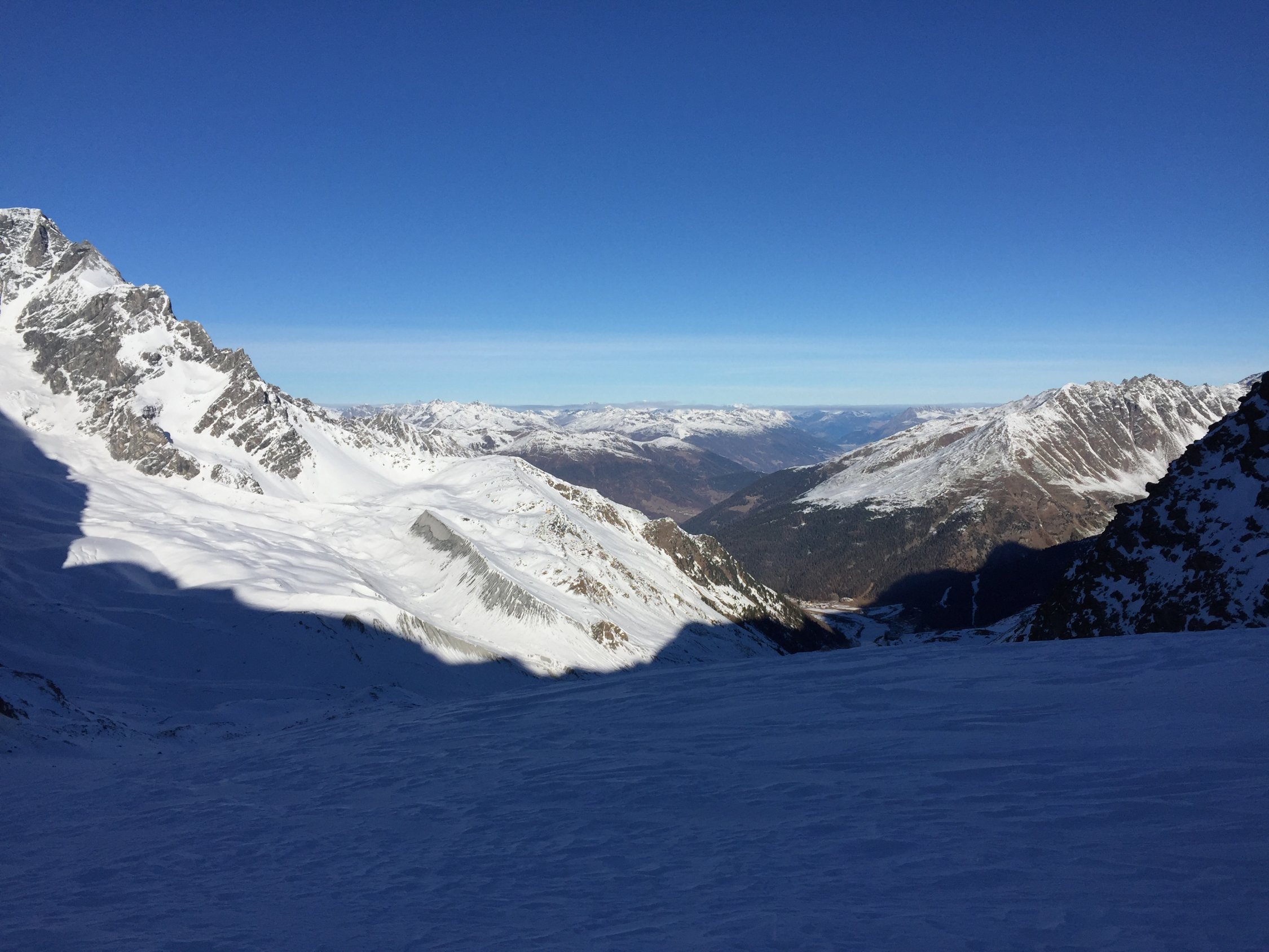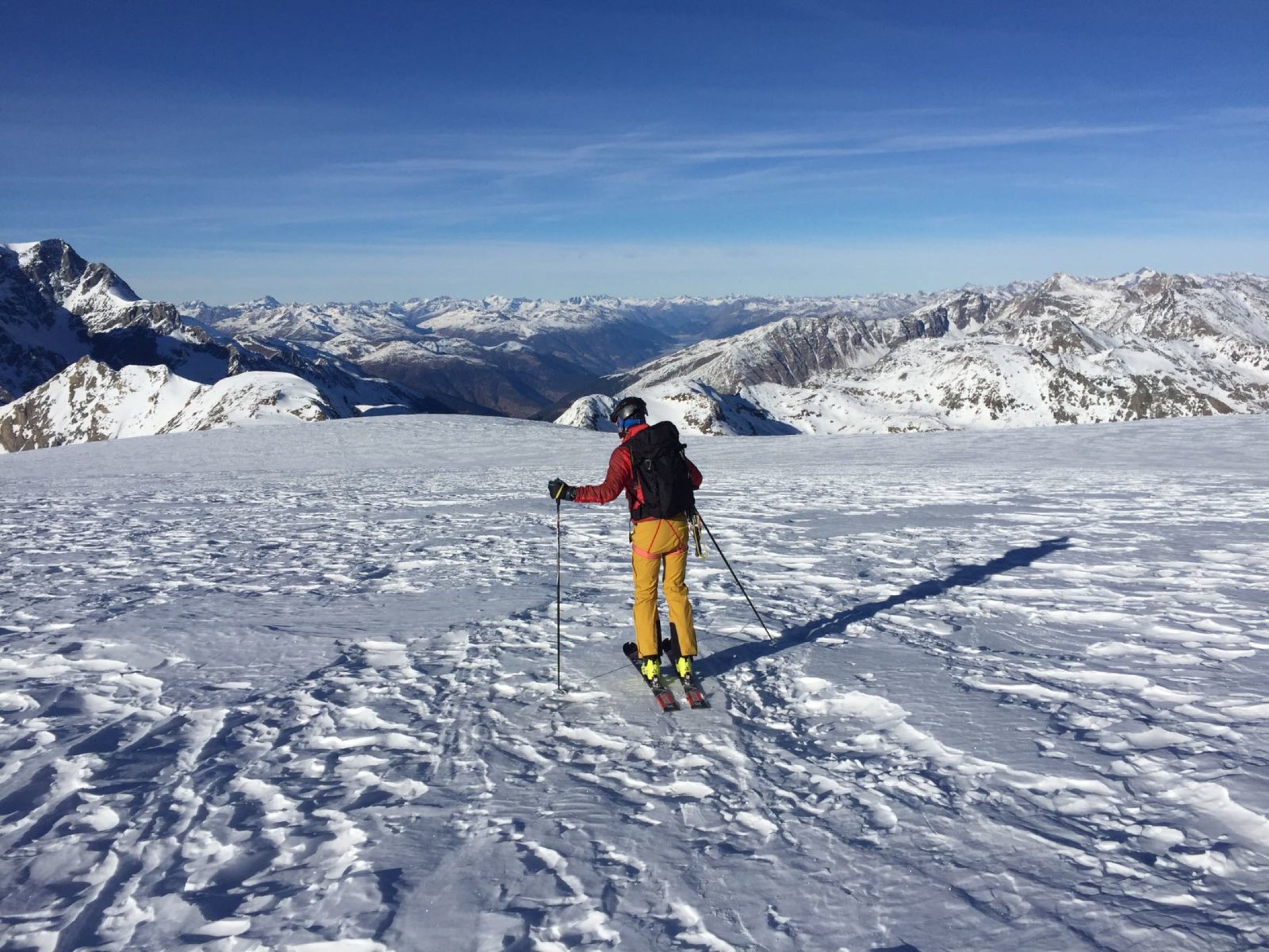 Gletscher gut eingeschneit, Randkluft zum Gipfel kann zur Zeit ohne Probleme überwunden werden. Wir sind mit der ersten Bahn von Sulden rauf und dann via Eisseepass 3139 m und weiter direkt über den Langenferner aufgestiegen. Haben die Ski auf dem Rucksack auf den Gipfel mitgenommen und sind dann ca. 50m unterhalb des Gipfels mit den Ski abgefahren. Auf dem Rückweg sind wir noch auf die Suldenspitze gestiegen. Abfahrt dann via Suldenferner zurück ins Pistengebiet von Sulden und via Skipiste zurück bis zur Talstation der Suldenbahn.