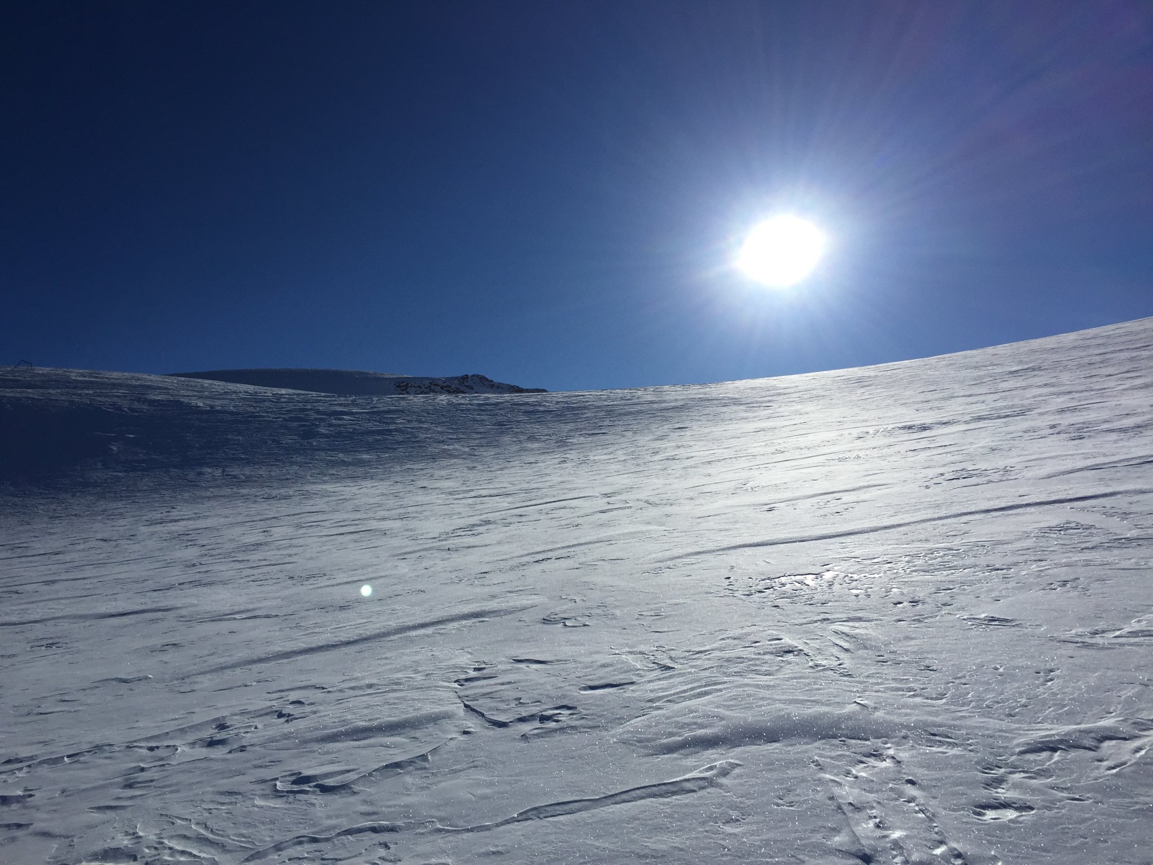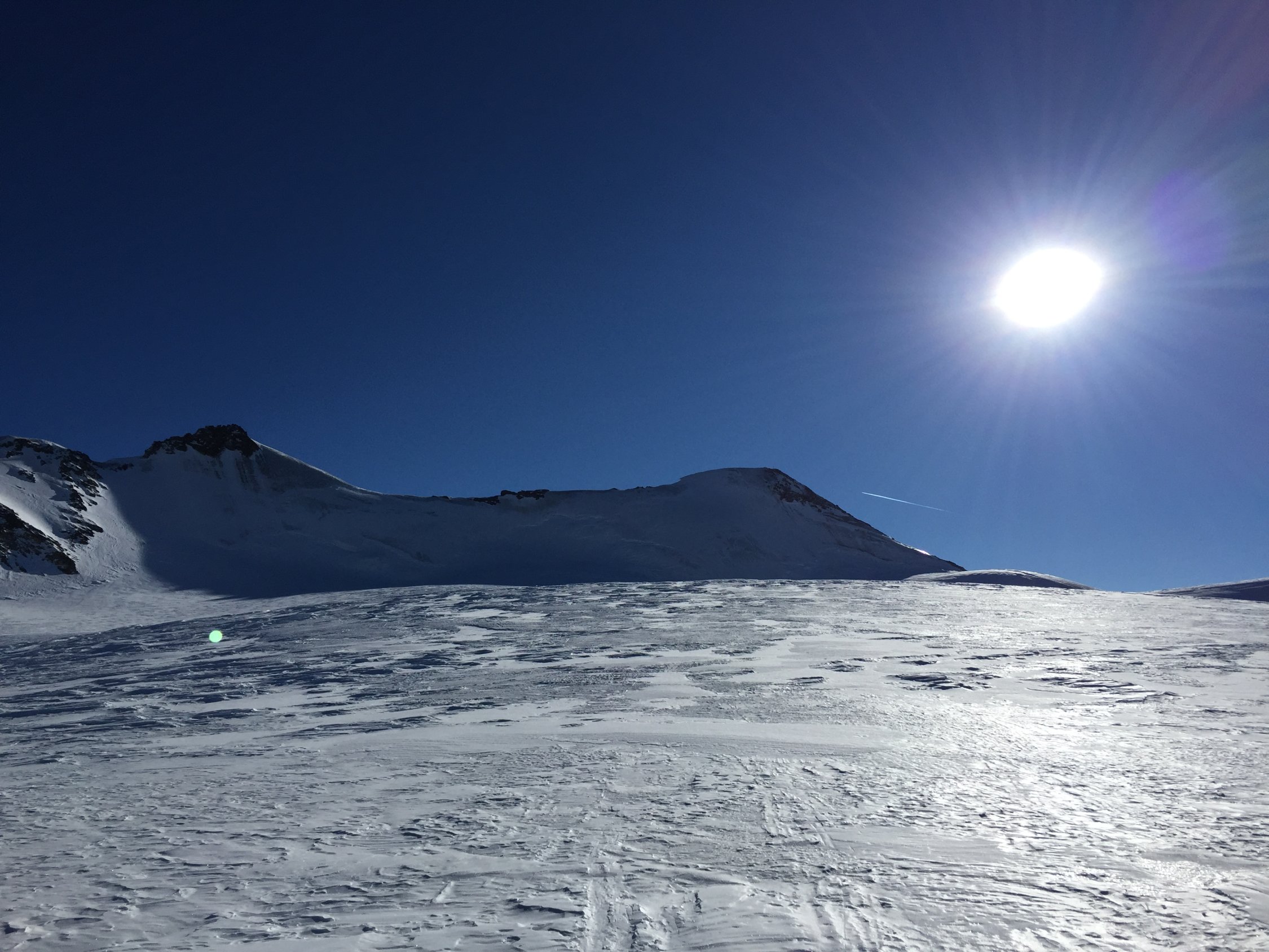 Kann bis zum nächsten Wetterunschwung problemlos genacht werden. Die grossen Spalten sind gut sichtbar, aber daran denken, dass unter den Schnee immer noch welche sind die man nicht sieht. Gletscherausrüstung ist zu empfehlen.