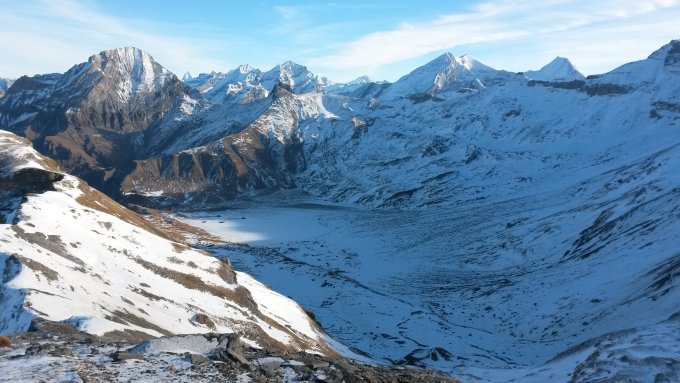 Auf der Engstligenalp wenig Schnee , zuerst habe ich die Ski getragen. Nachher,