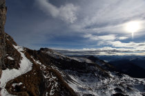 Sehr mild aber windig, die wenigen Schneefelder sind weich und gut zu begehen.