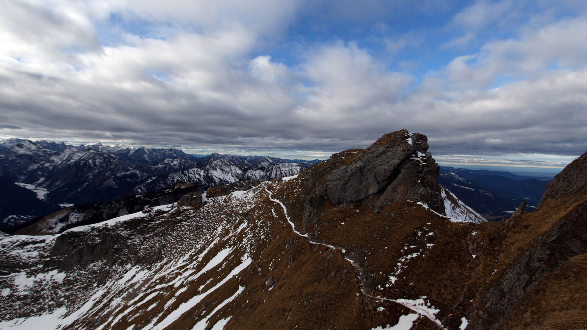 Auch der Steig über den Kamm ist gut zu begehen und ist mehrheitlich abgeweht.