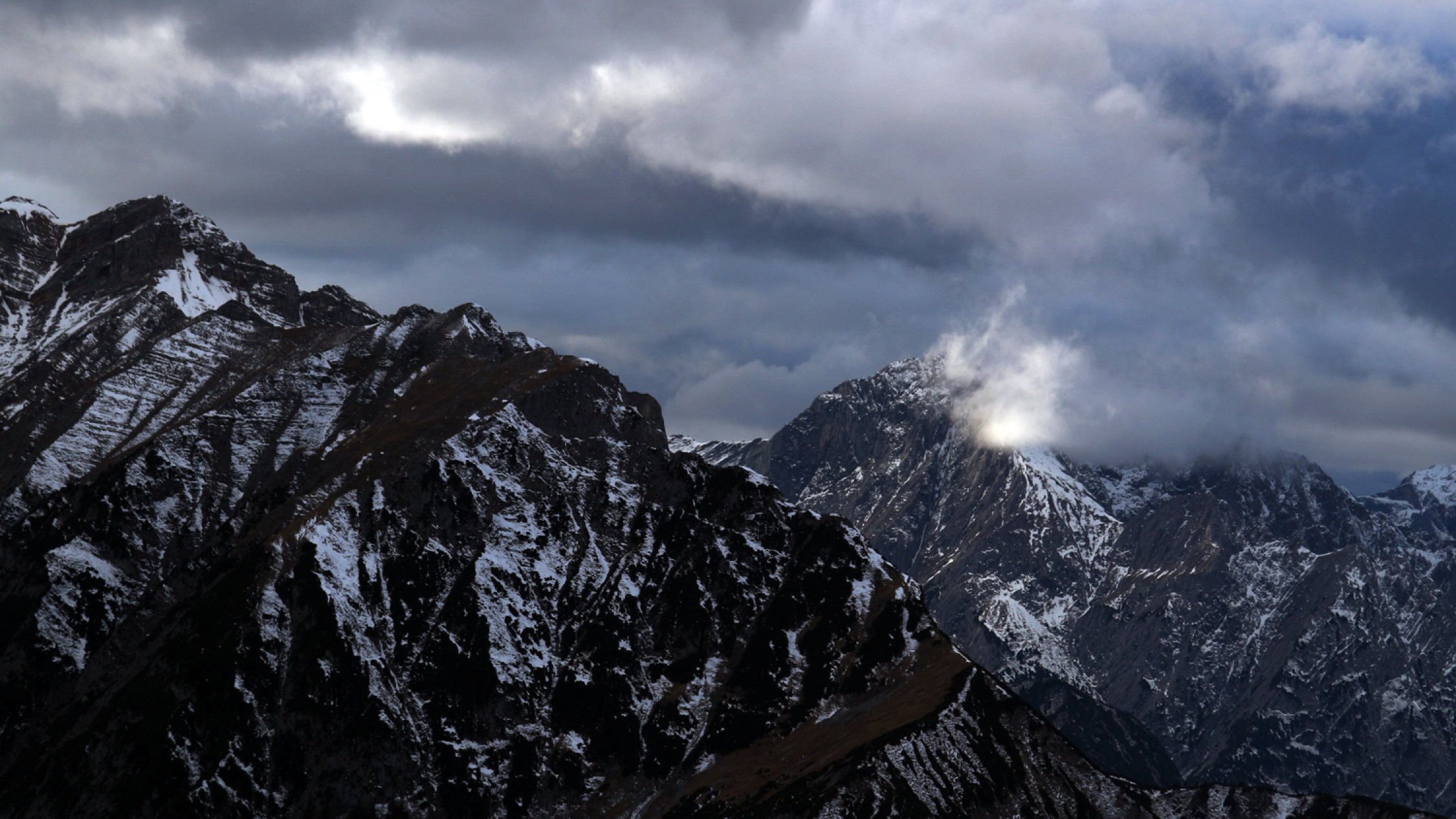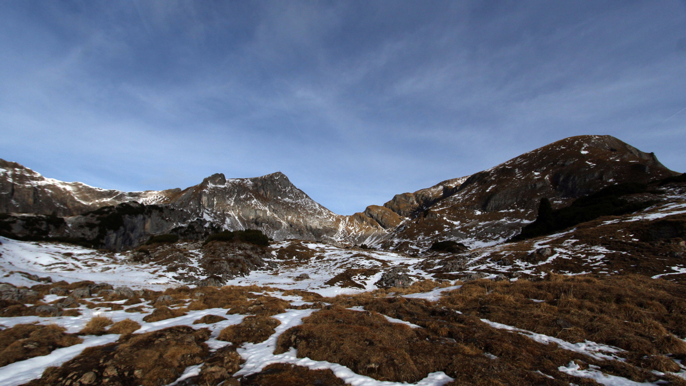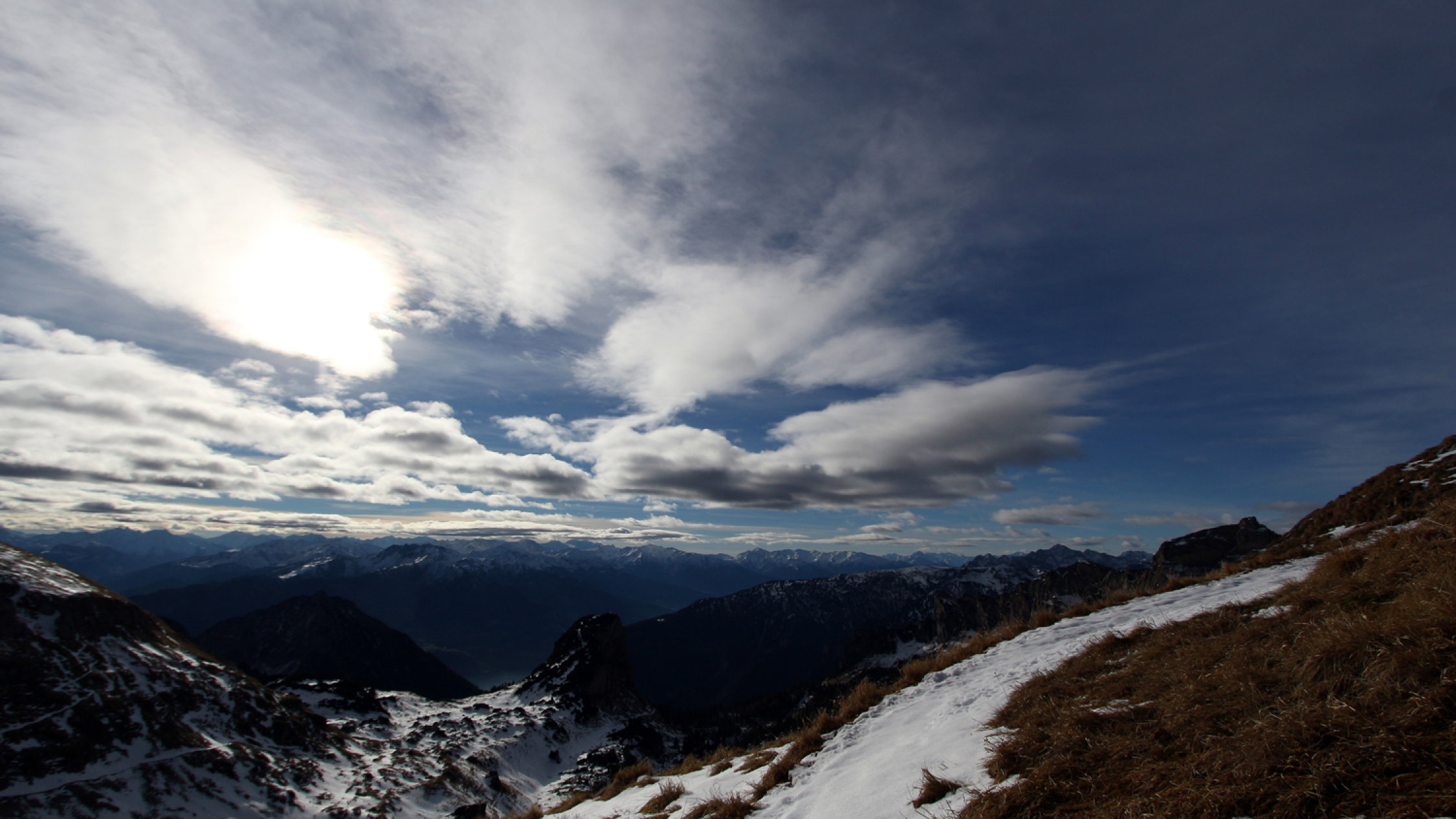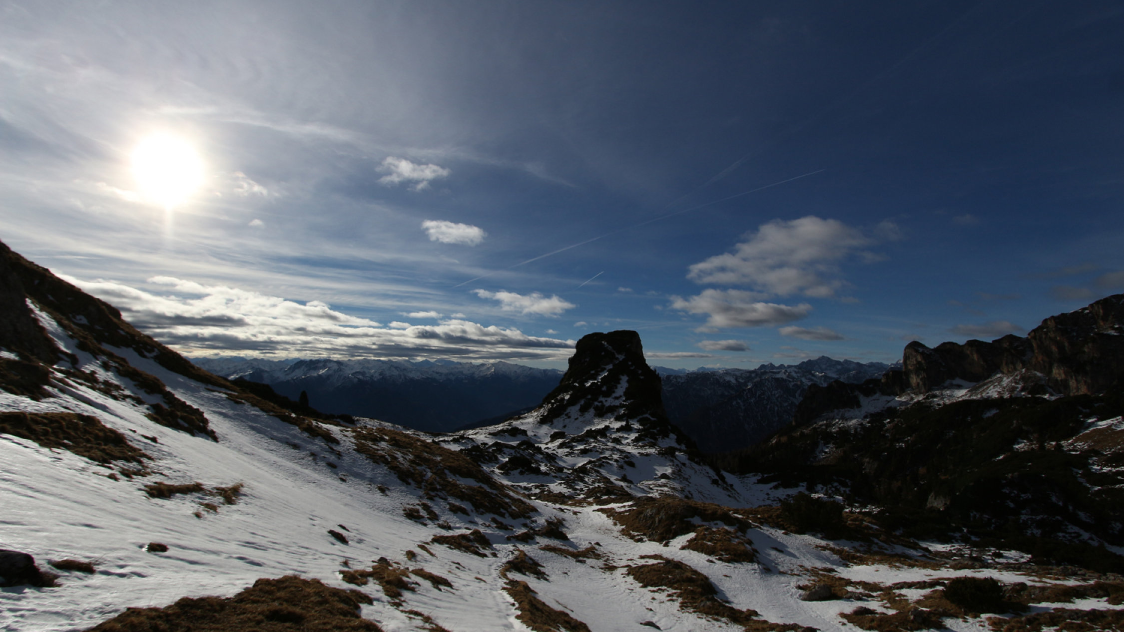 Insgesamt ist in der ganzen Region sowie nördlich davon im Prinzip kein Schnee. Gleiches gilt für die Region um den Kaiser. Auch dort so gut wie kaum Schnee, zumindest in den Südseiten. Beim Blick in die Kitzbühler und Tuxer Alpen schauts zwar nach mehr Schnee aus, doch der Schein trügt. Zudem ist bis etwa 1800m so gut wie nix, der Regen hat dafür jede Menge vereiste Flächen, vor allem auf Forstwegen freigelegt.