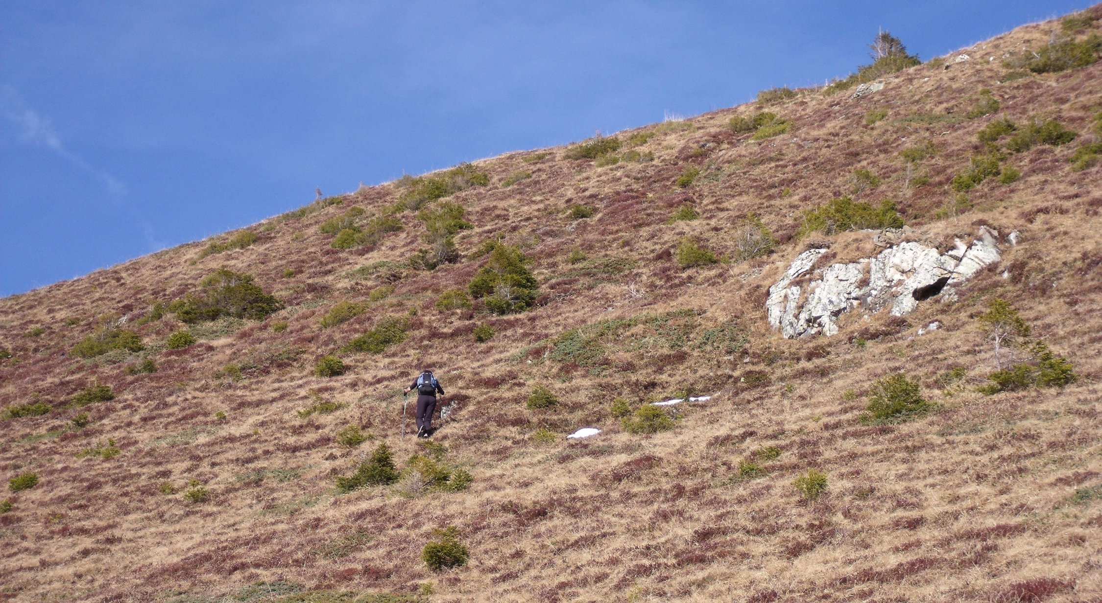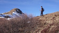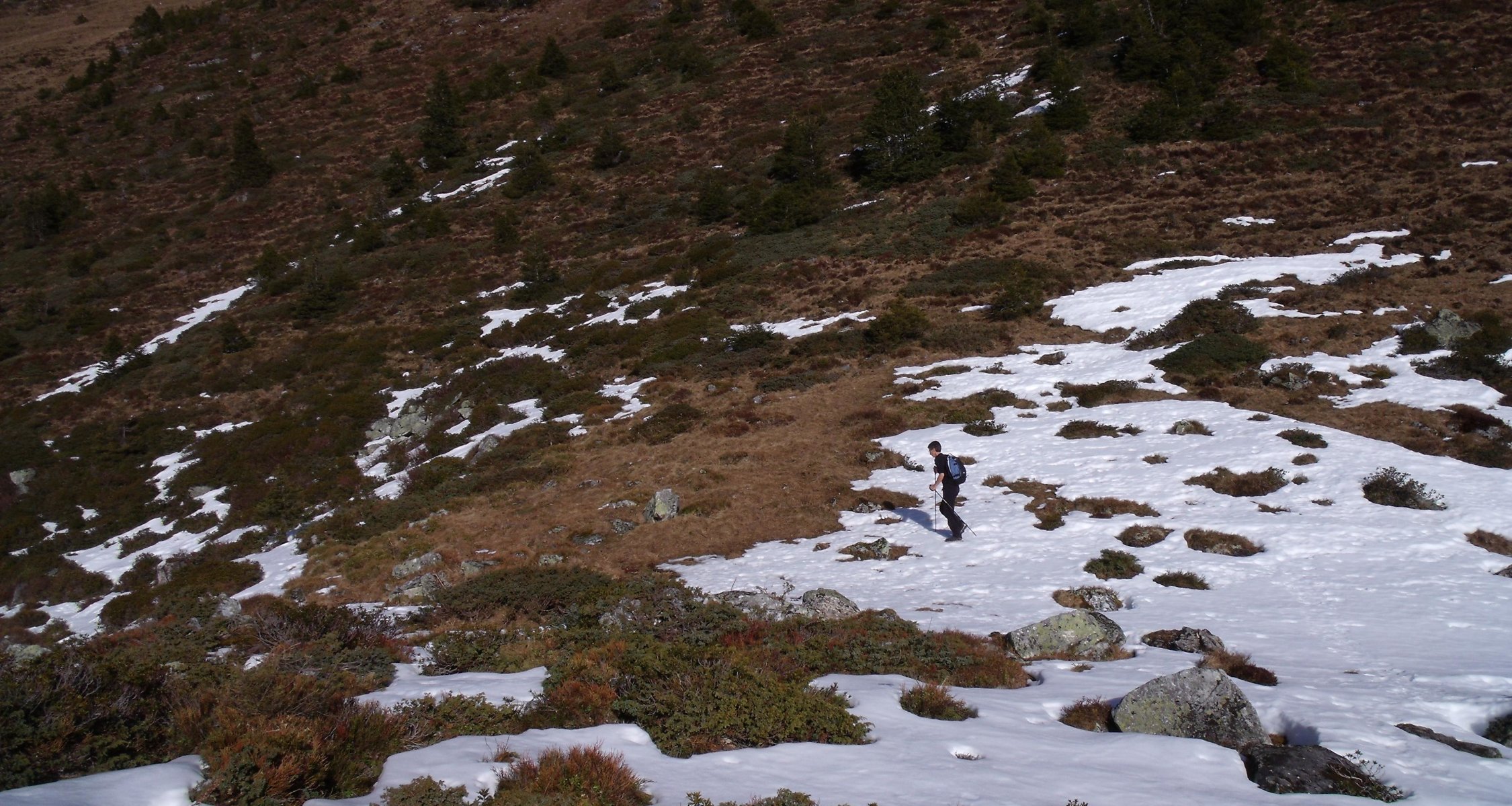 Wir haben gute Wanderverhältnisse angetroffen. Nordseitig liegt wenig Schnee, südseitig sind die Hänge bis auf die Gipfelhöhe aper.