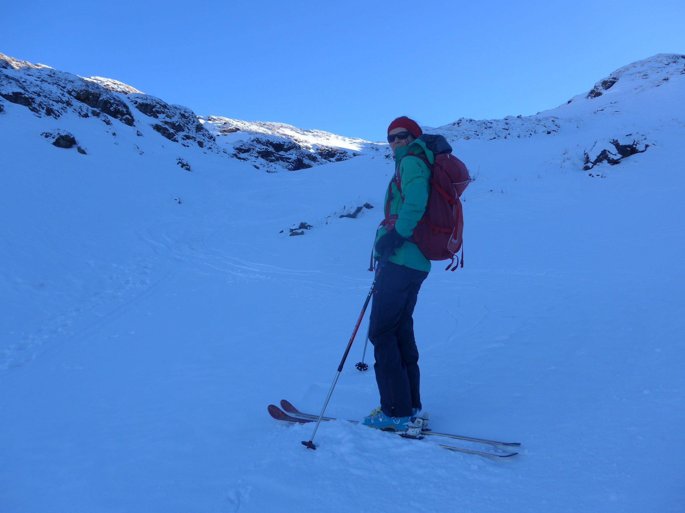 Die Ski müssen an ein paar Stellen getragen werden, denn eine Unterlage hat es nur in den Mulden.