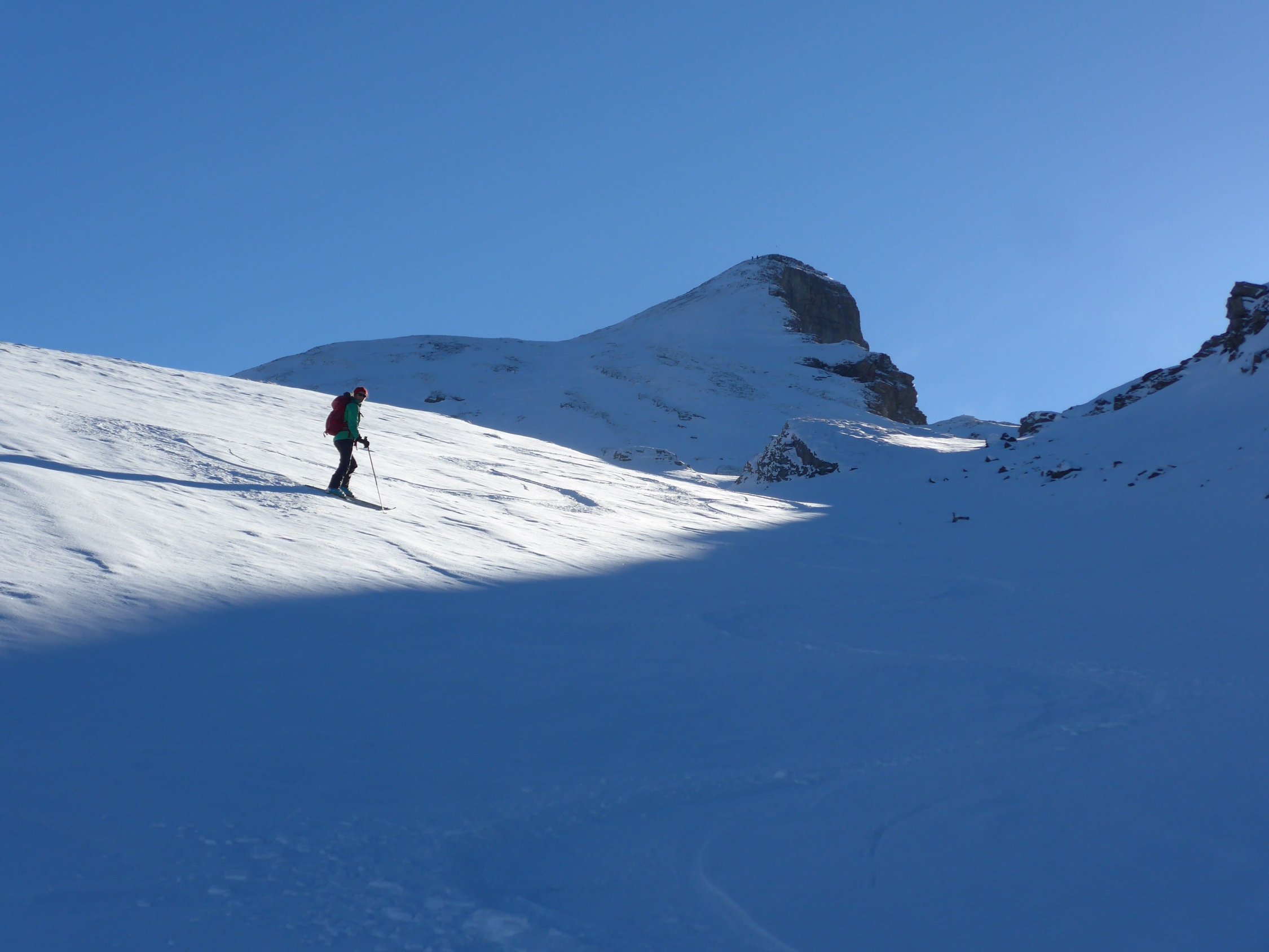 Einige Zentimeter Neuschnee auf dem alten Hartschnee, recht gute Verhältnisse.