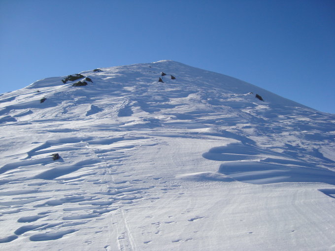 Ein Blick zum Stotzigen hinüber offenbarte mir, dieser war viel abgeblasener. Also, alles richtig gemacht!:-)