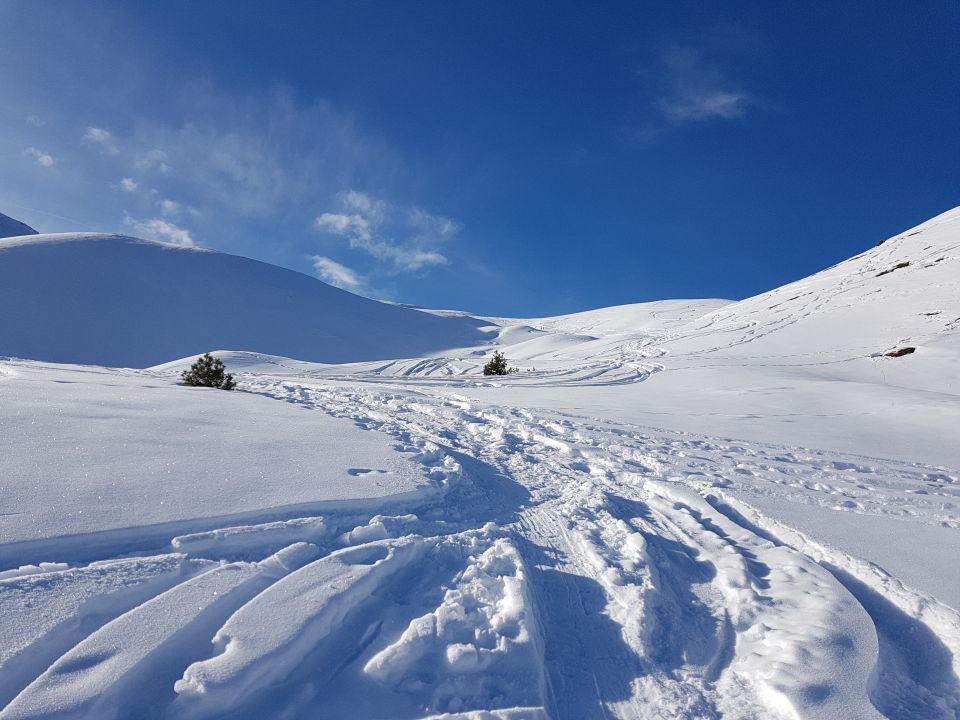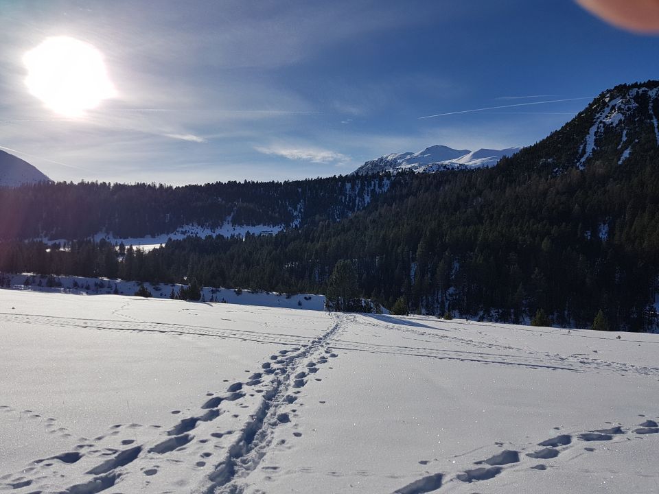 Ich bin eigentlich kein Schneeschuhläufer, ich habe gar keine, doch heute habe ich ausnahmsweise die von meiner Schwester kurz ausgeliehen und bemerkt, dass ich dank dem geringeren Gewicht, verglichen mit den Ski, viel schneller unterwegs sein konnte. Ich war schon in 1 Std oben. Von Buffalora bis P2196 ist der Alpweg perfekt eingeschneit, resp. mit Ski empfehlenswerter. Aber nicht nebenan!