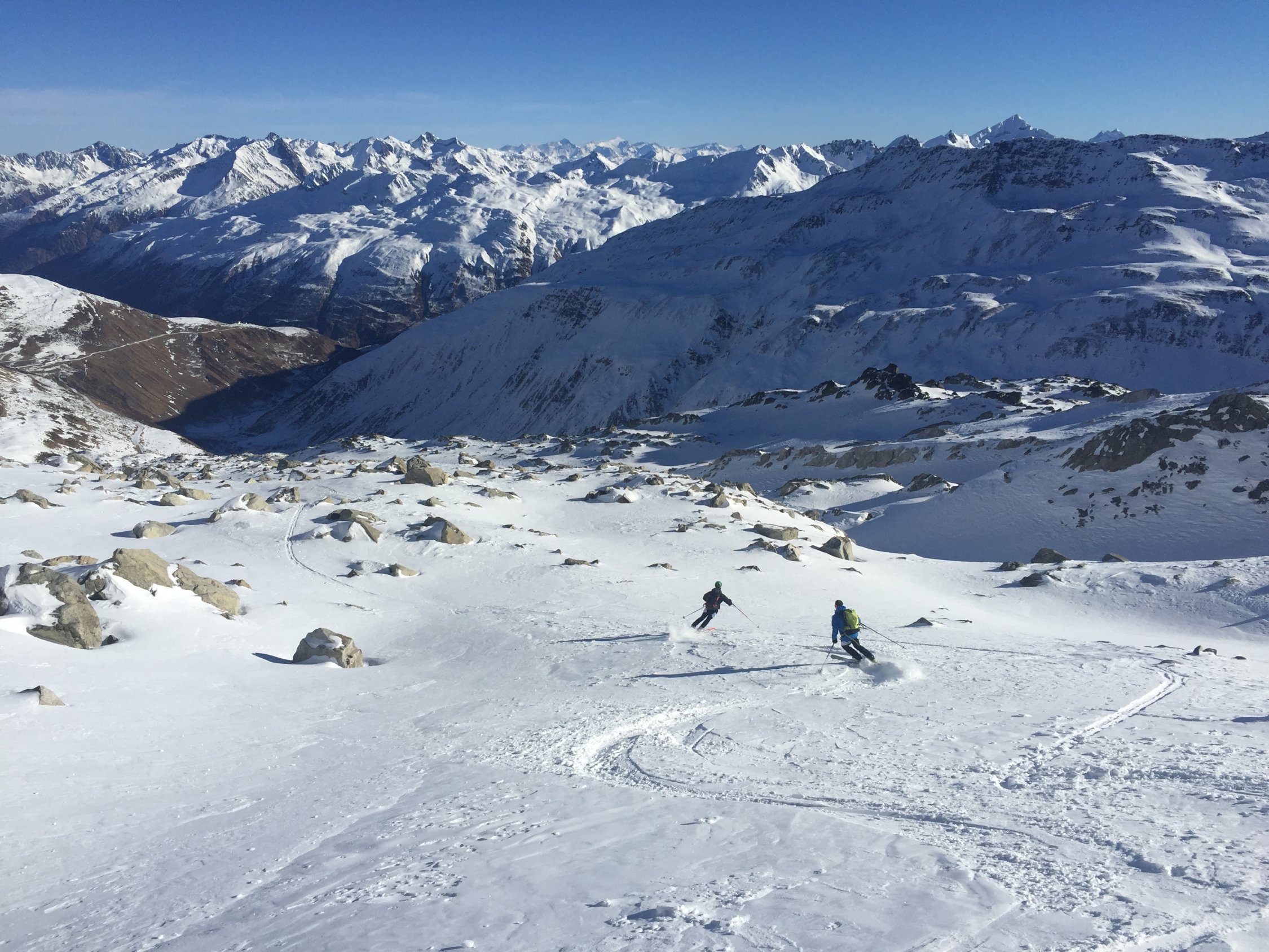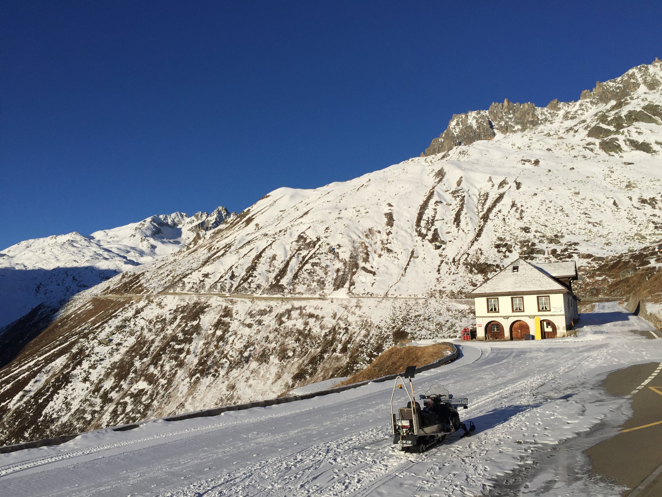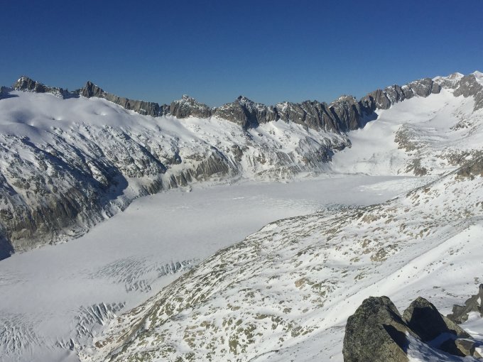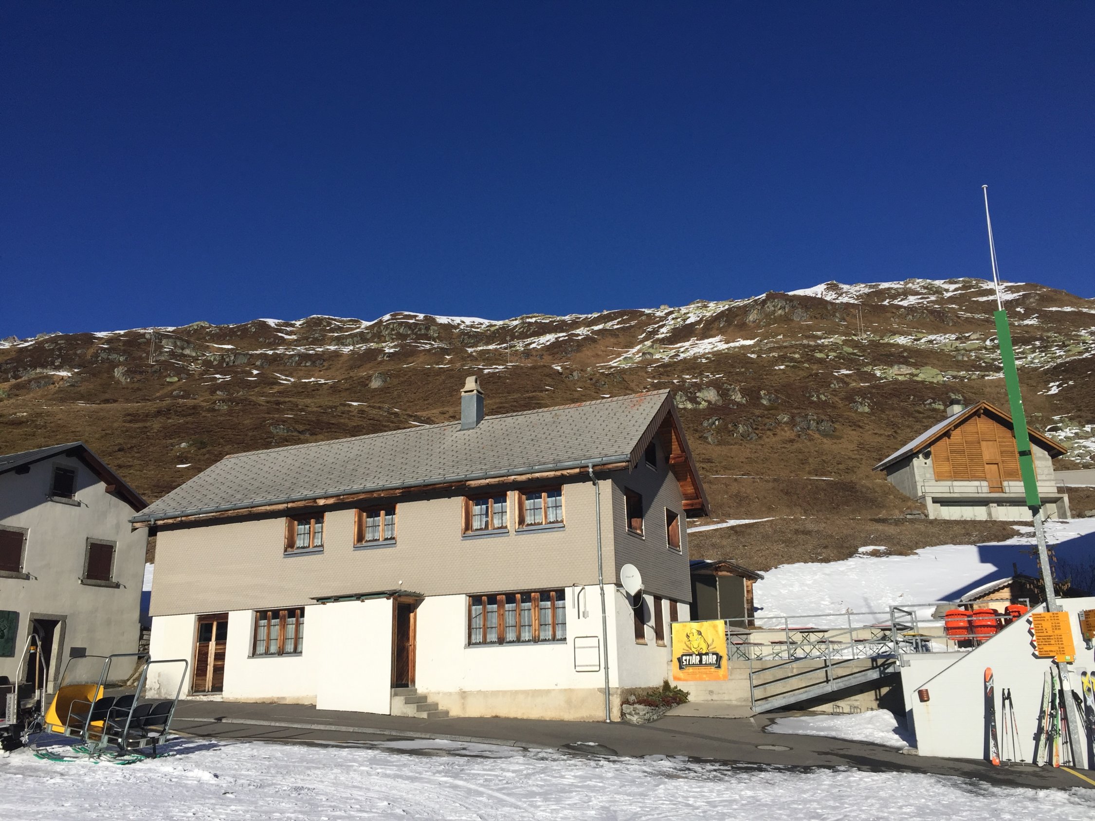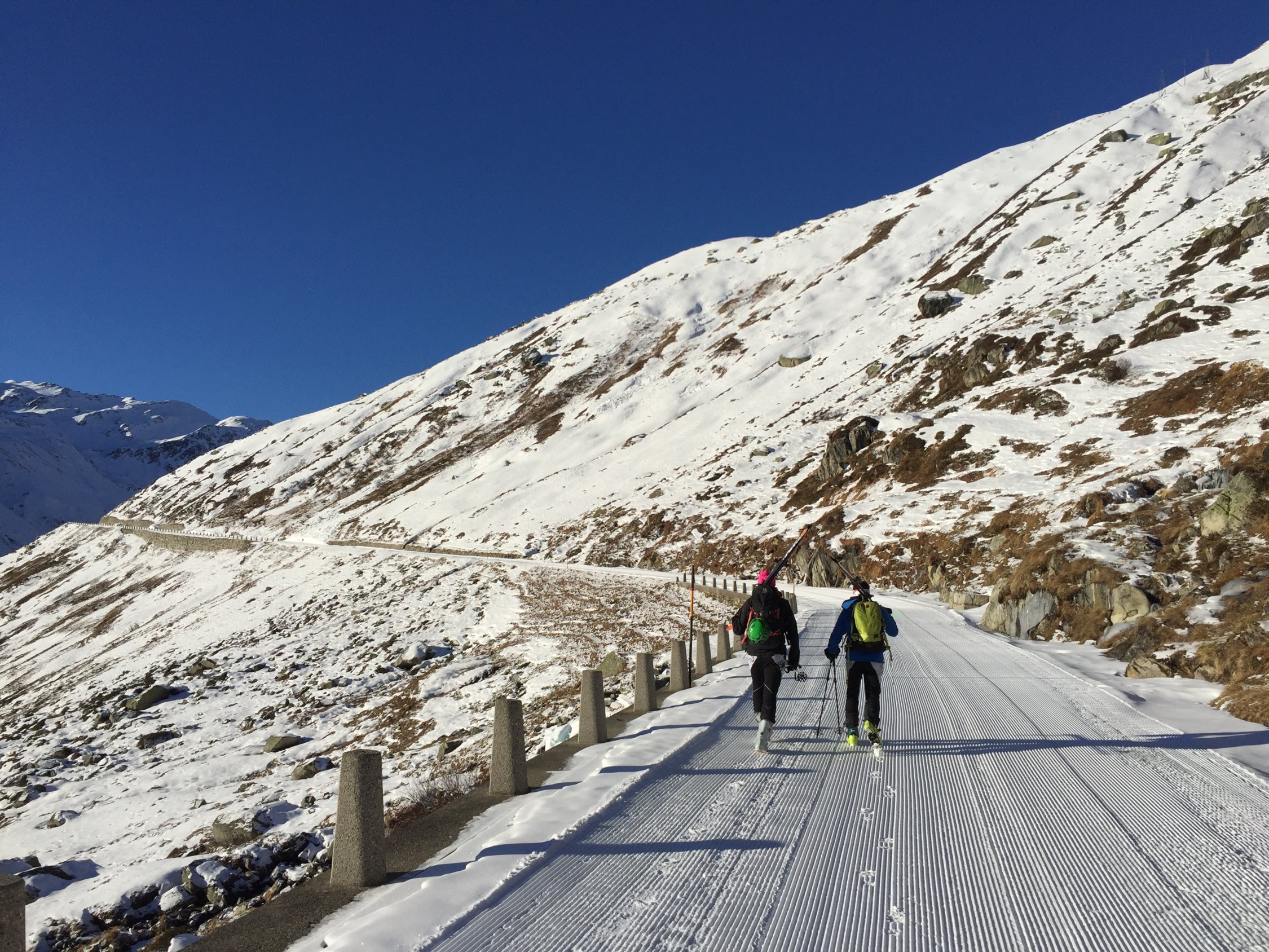 Das Kleine Furkahorn machen wir normalerweise im Frühling. Heute wollten wir wieder mal Sonne auf der Skitour und stiegen vom Tiefenbach der Passstrasse entlang und weiter ab dem Sidelenbach zum Gipfel. Wir waren die einzigen die auf das Kleine Furkahorn stiegen. Fast windstill konnten wir das Panorama geniessen. Der Schnee in der Abfahrt war recht gut mit viel Abwechslung gespickt. Die Passtrasse ist perfekt gepistet. Das Hotel Tiefenbach wird zur Zeit von Wanderern ohne Schlitten als Tagestour gemacht, da unten bis zum Hotel Galenstock kein Schnee liegt. Das Restaurant ist offen und ist zu empfehlen für Speis und Trank. Auf dem Weg Richtung Alberheim Hütte liegt fast kein Schnee mehr.