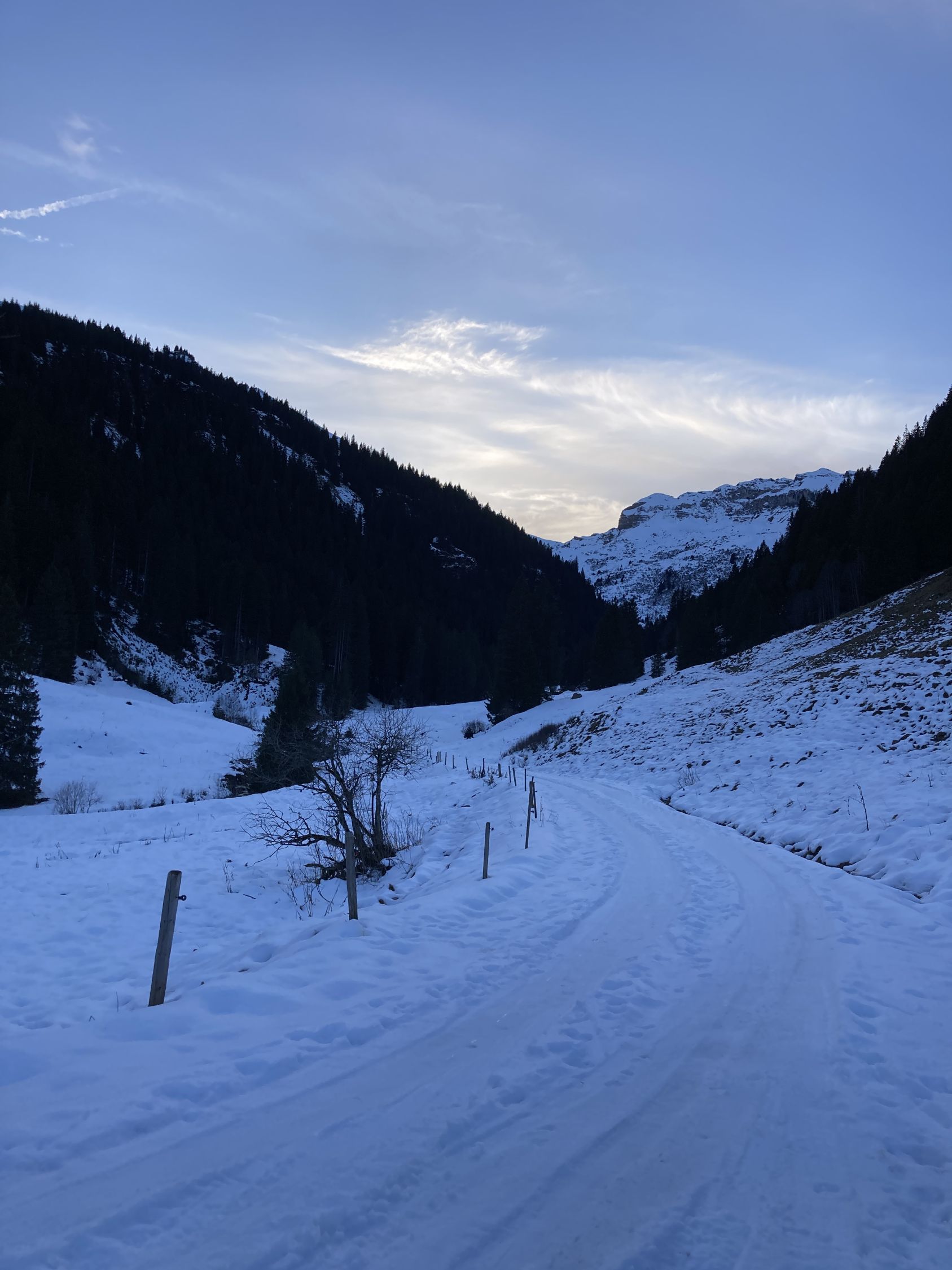 Es hat wirklich wenig Schnee. Man kann bis Cholschlag Vorsäss fahren. Ab dort ist der Weg mit Schneebedeckt. Die Hänge beim Alpstofel sahen im Aufstieg besser aus als sie dann bei der Abfahrt waren. Ab Gadims ist die Schneedecke auch im Gelände durchgehend.