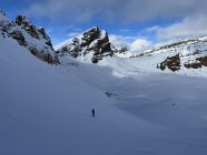 Entgegen den Einträgen über Touren von Ferden in dieser Woche, kann man direkt über die östlichen Wiesen von Ferden mit Ski aufsteigen, mit kurzen Passagen von 5 m, wo man abschnallen muss. So erreicht man direkt die Kehre der Forststraße, wo der Wanderweg zur Kummemalp geradeaus weitergeht Auch dort kann man komplett mit Ski gehen, nur am Anfang muss man 20-30 m tragen. Es gibt einen kleinen, völlig unbedeutend Lawinenkeel zu queren, der im Gegensatz zu den vorherigen Einträgen keinerlei Schwierigkeit darstellt. Insgesamt für die Verhältnisse zur Zeit sehr gut eingeschneit. (Gepresster)Pulver, teilweise etwas Bruchharsch durch eine Regenkruste, aber alles tipptopp zu fahren. Absolut lohnend!