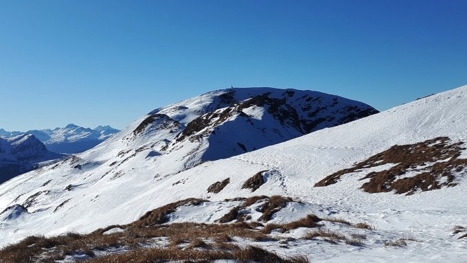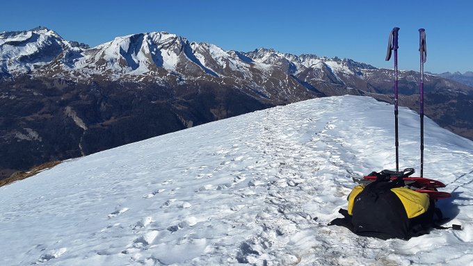 Wunderbare Wanderverhältnisse. Wege meist trocken, ab Furgglis gute Spur im Schnee. Die kalte Nacht hat dafür gesorgt, dass der Schnee gut trägt. Die Schneeschuhe habe ich fast umsonst hochgebuckelt. Für den Direktabstieg nach Prapitscha waren sie doch noch nützlich.