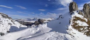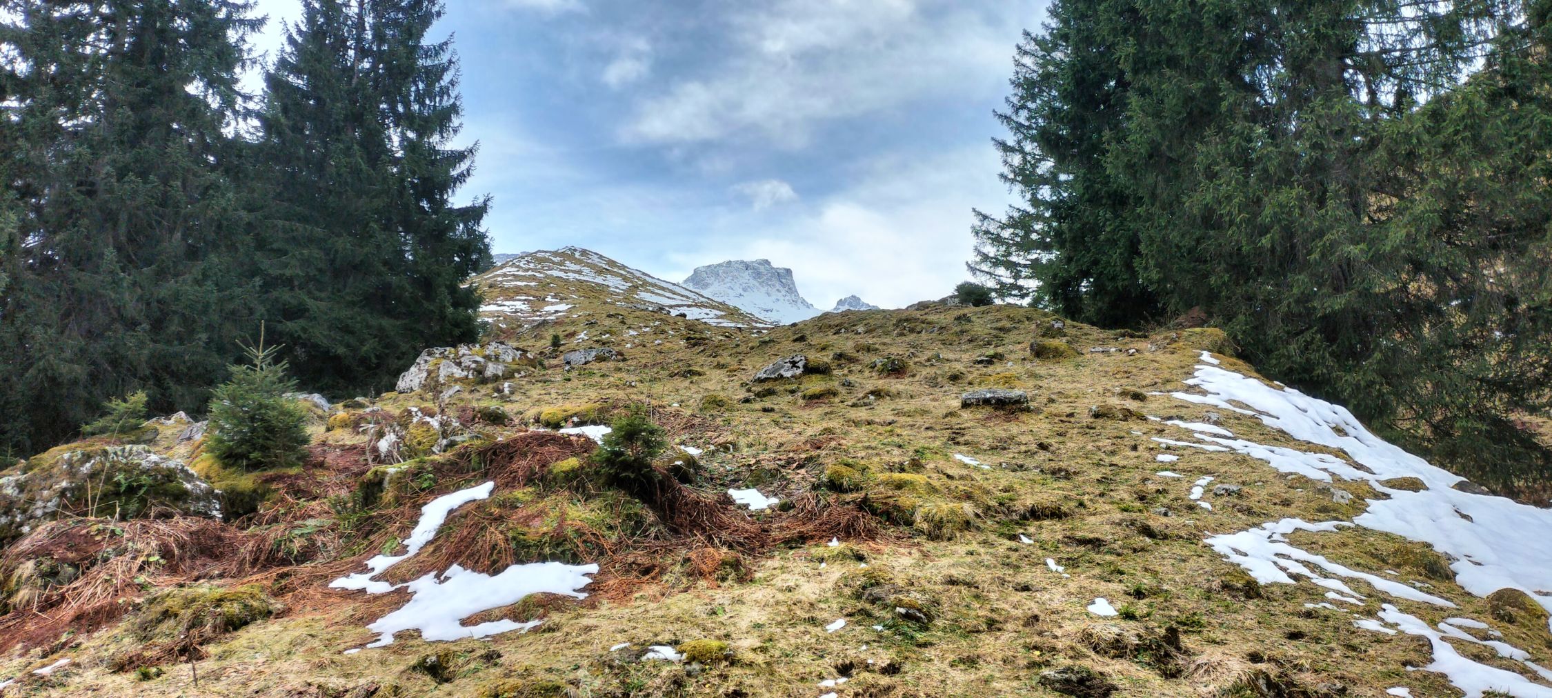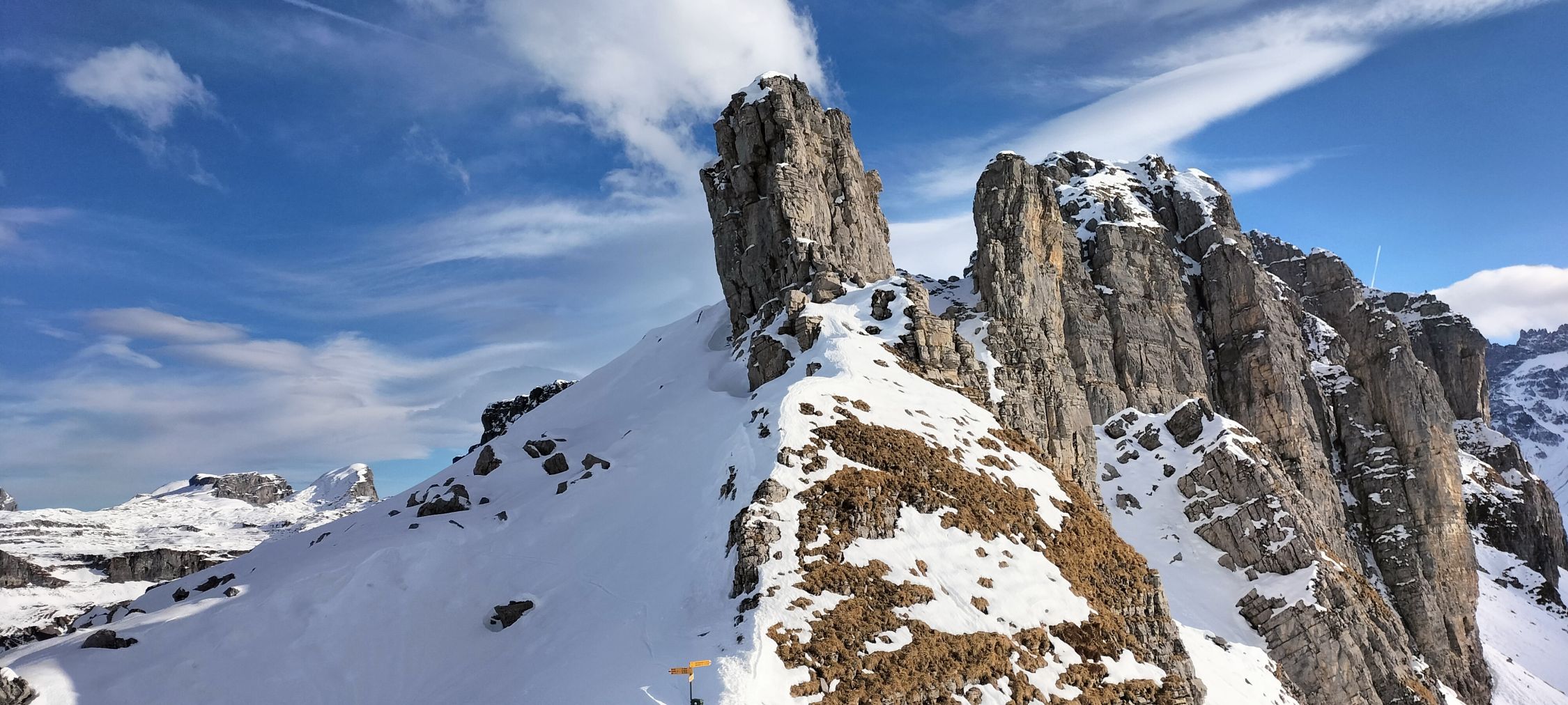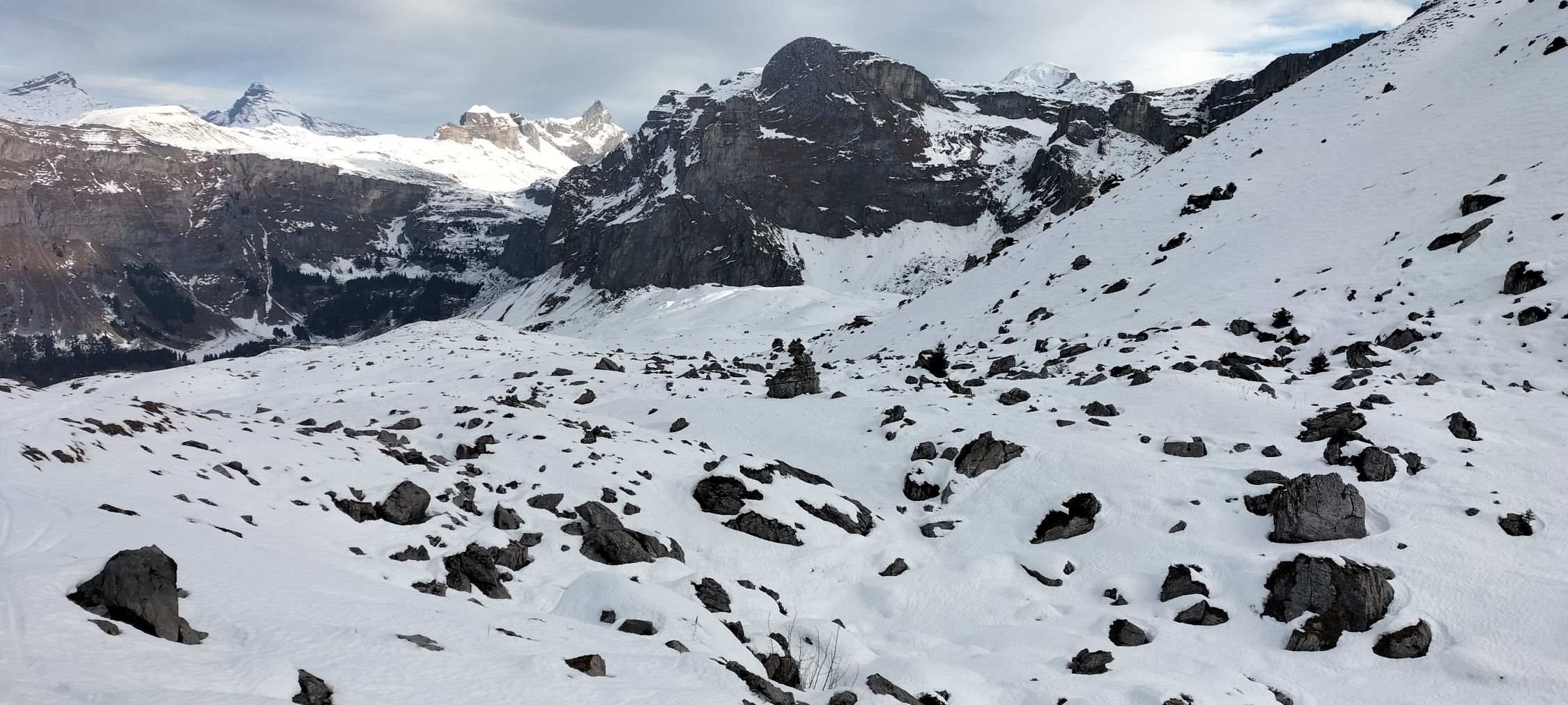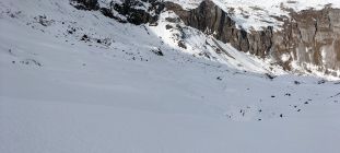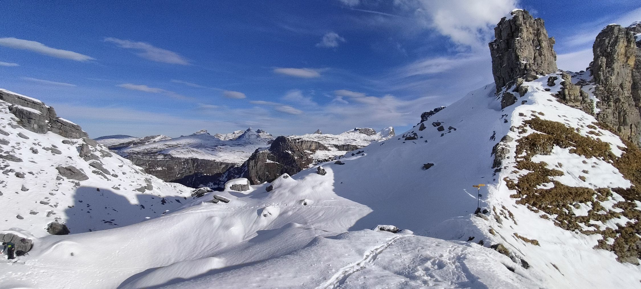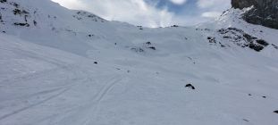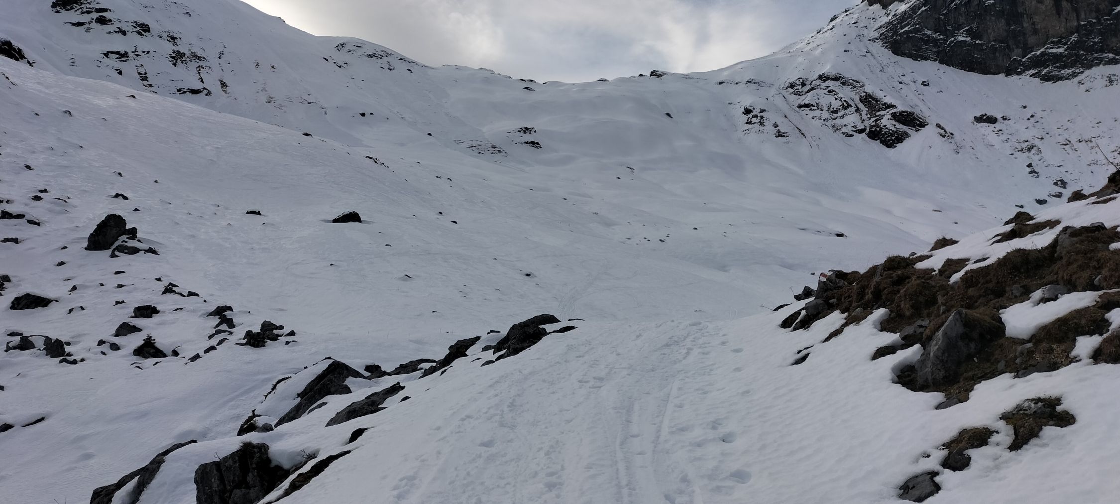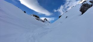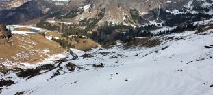 Start der Tour am 9 Uhr , erst bei Ruosalp Unter Staffel eine geschlossene Schneedecke, sehr wenig Schnee mit schlechten Verhältnissen , ab 2000 Meter dann besser , auch auf der ganzen Route heute ein leichter Föhn.