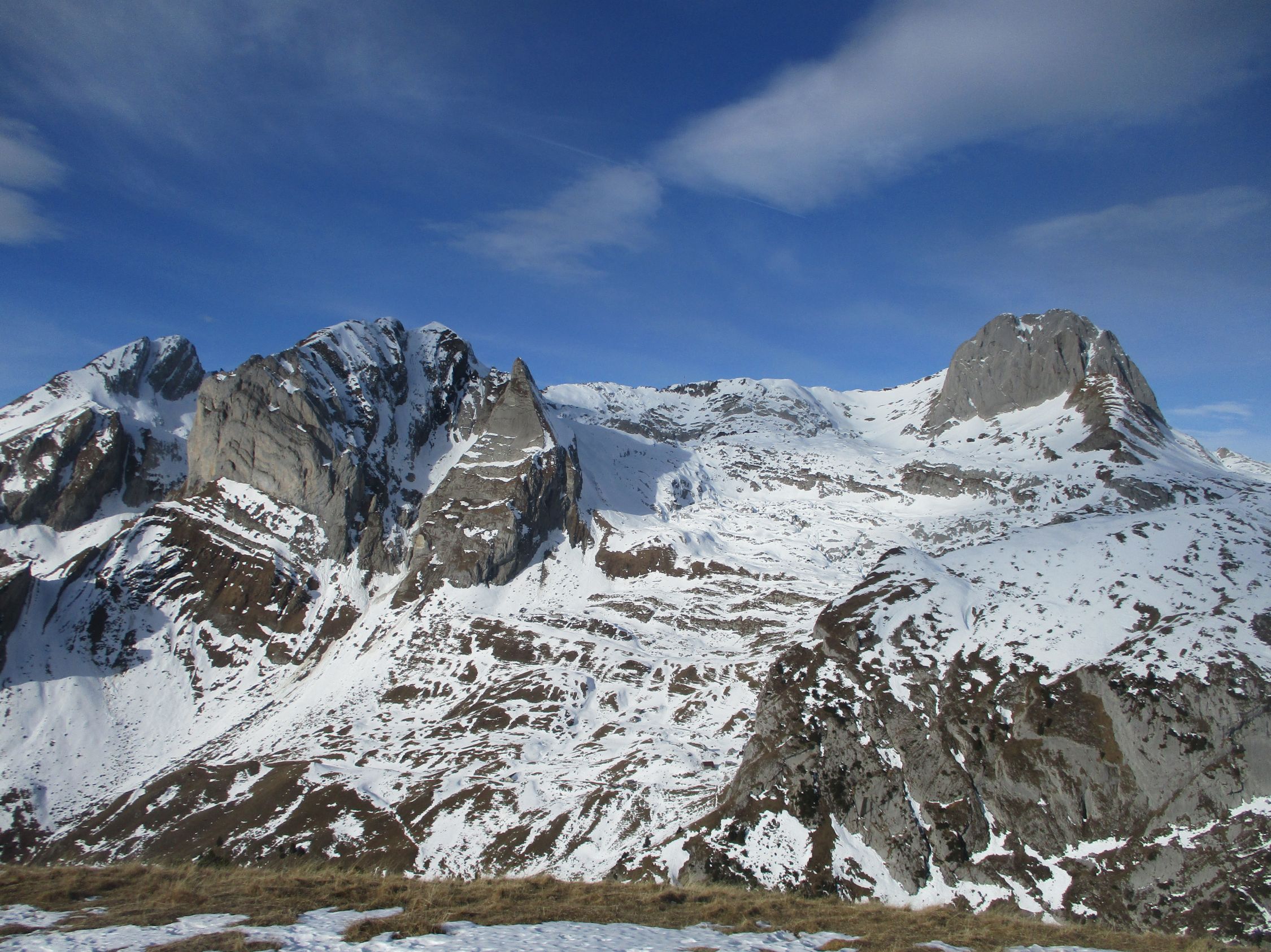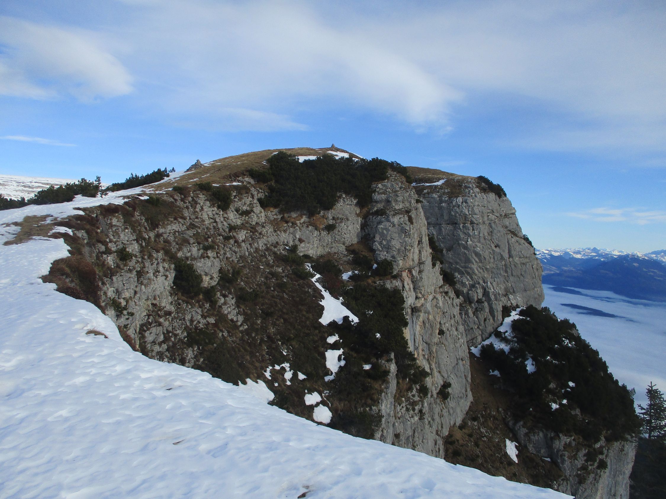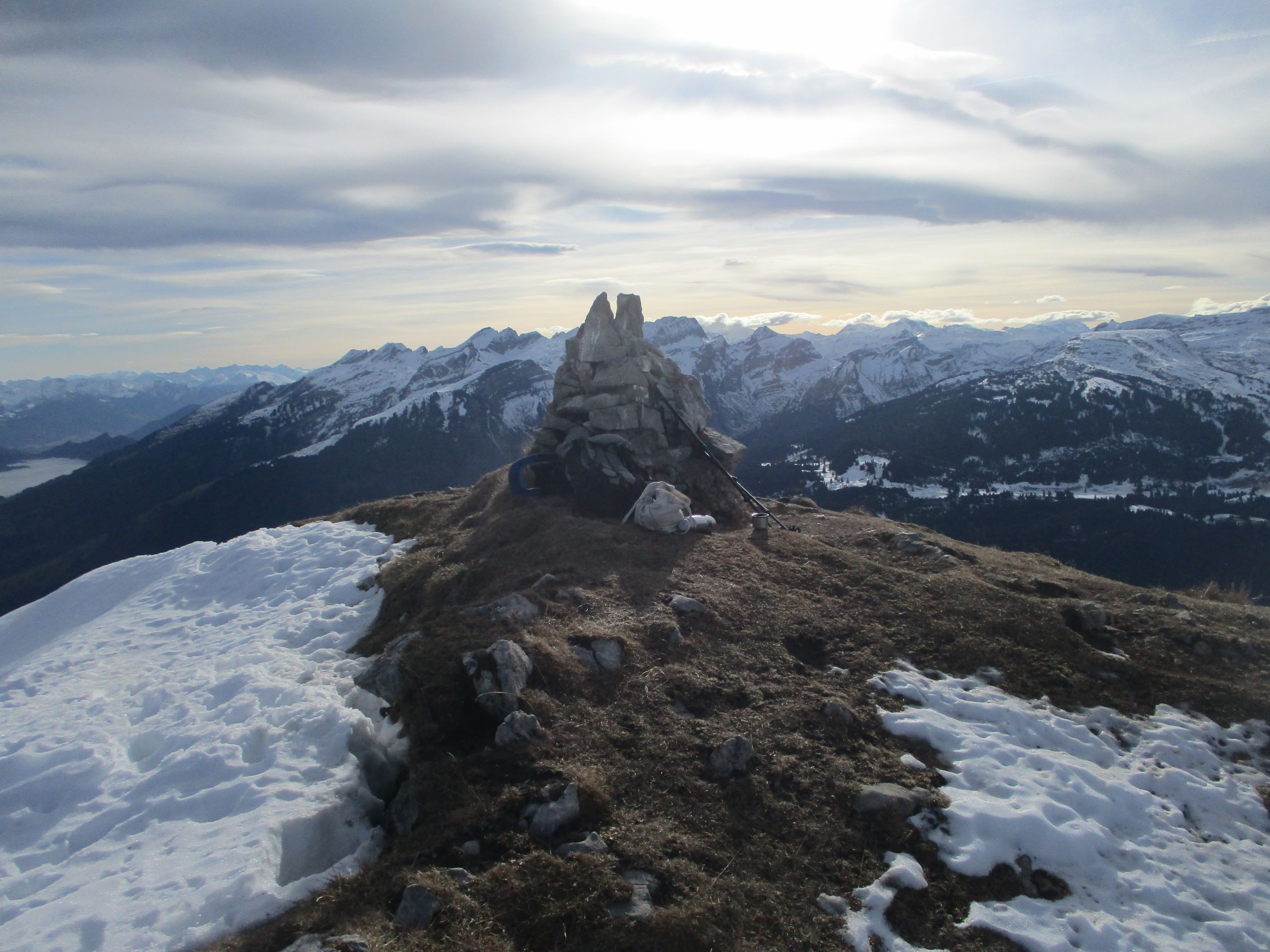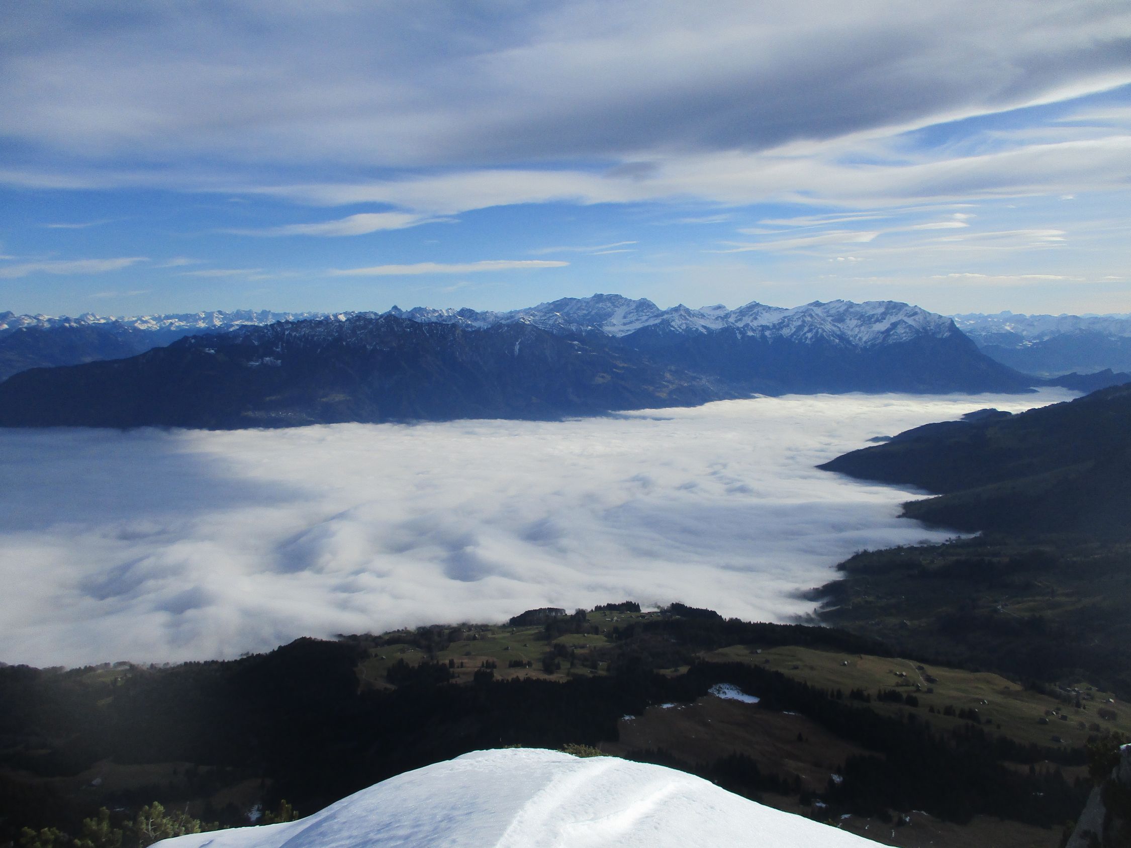 Mit Föhn in der Sonne frühlingshaft. Letztere schien etwas unerwartet den ganzen Tag über. Föhnwind moderat, prächtige Aussichten.