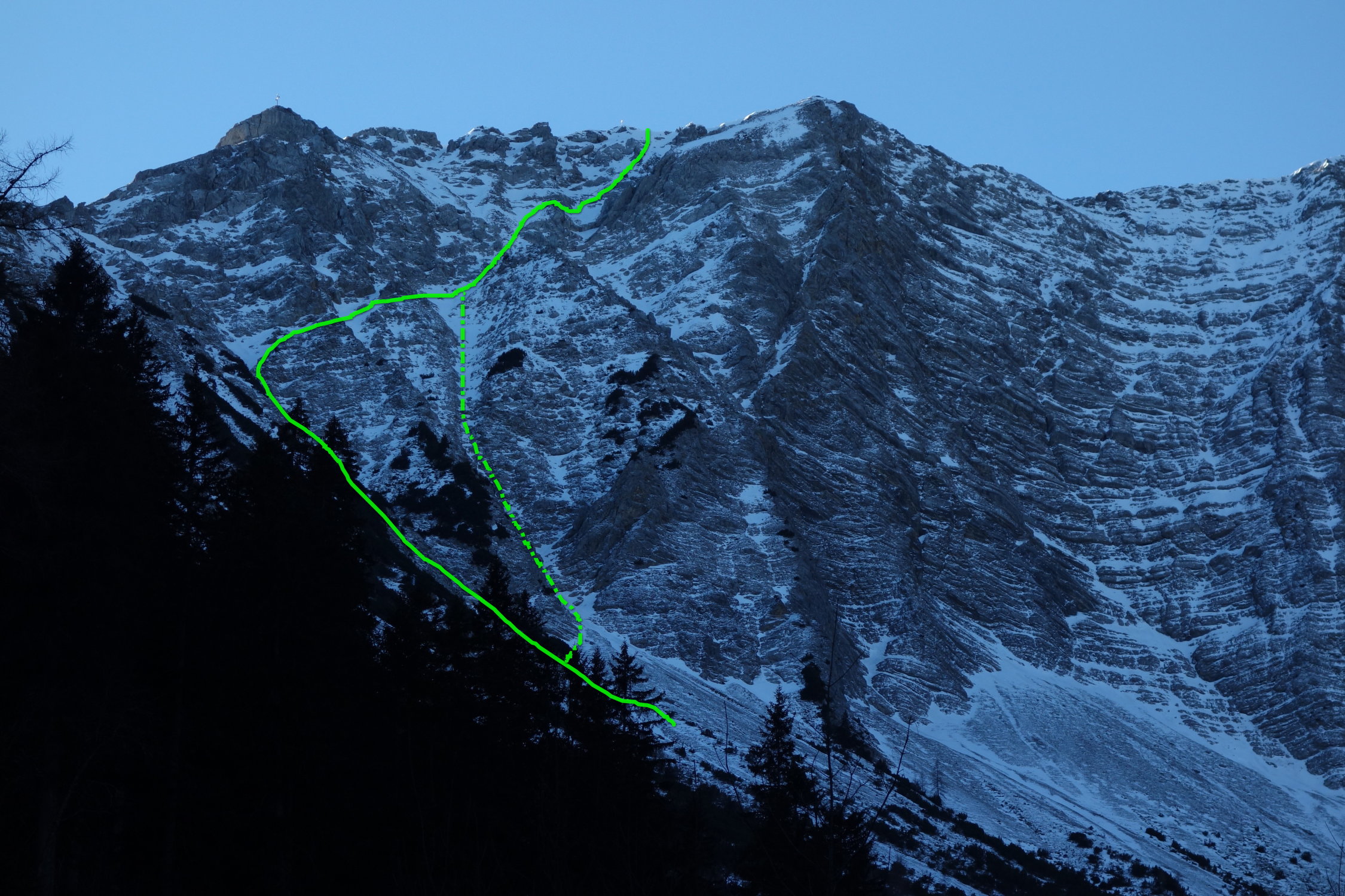 Bis zum nächsten Neuschnee empfehlenswerter Anstieg mit Hochtourencharakter.