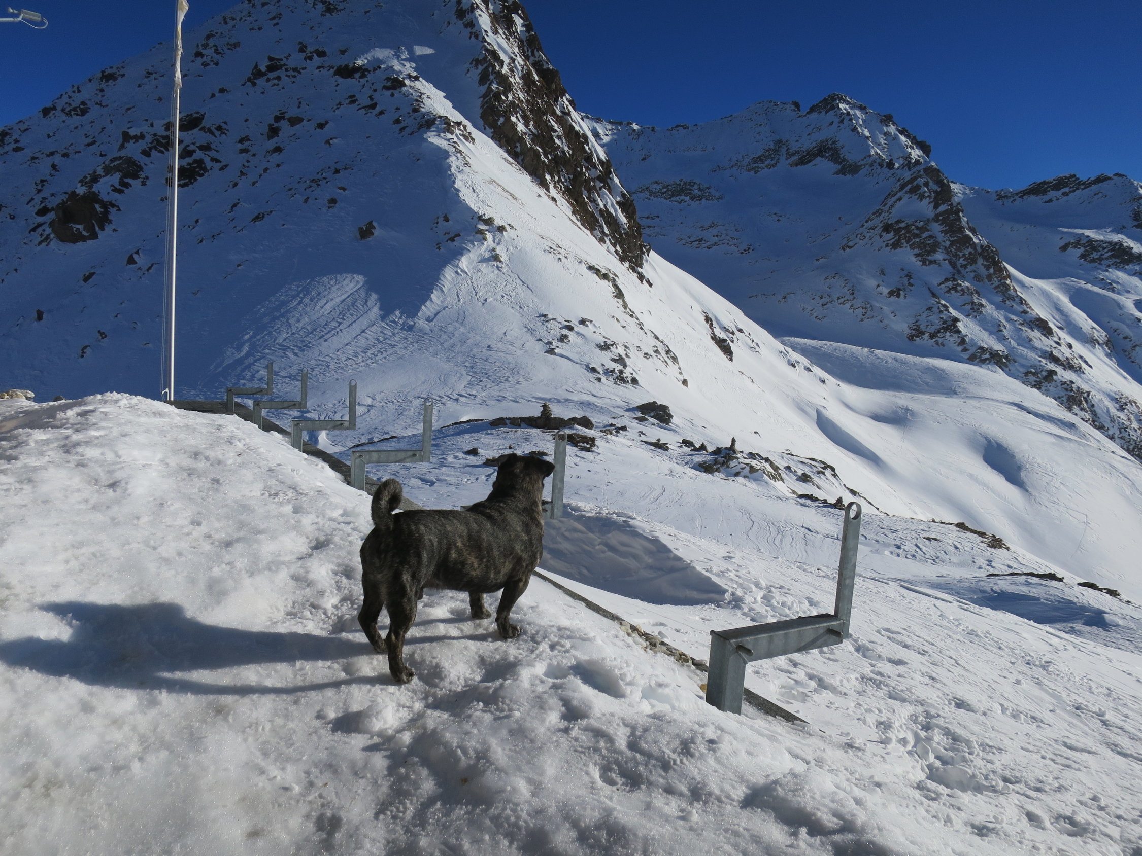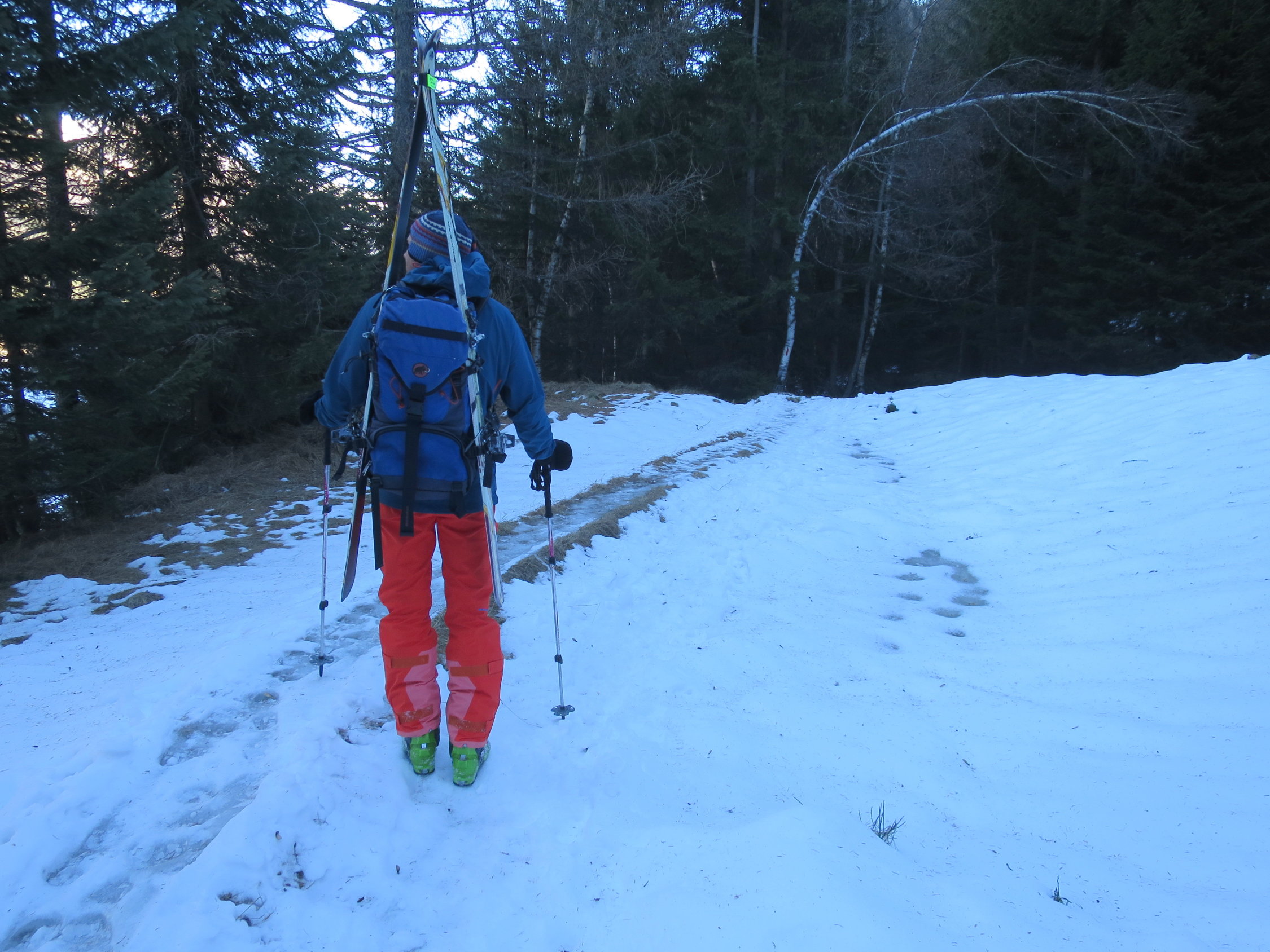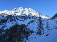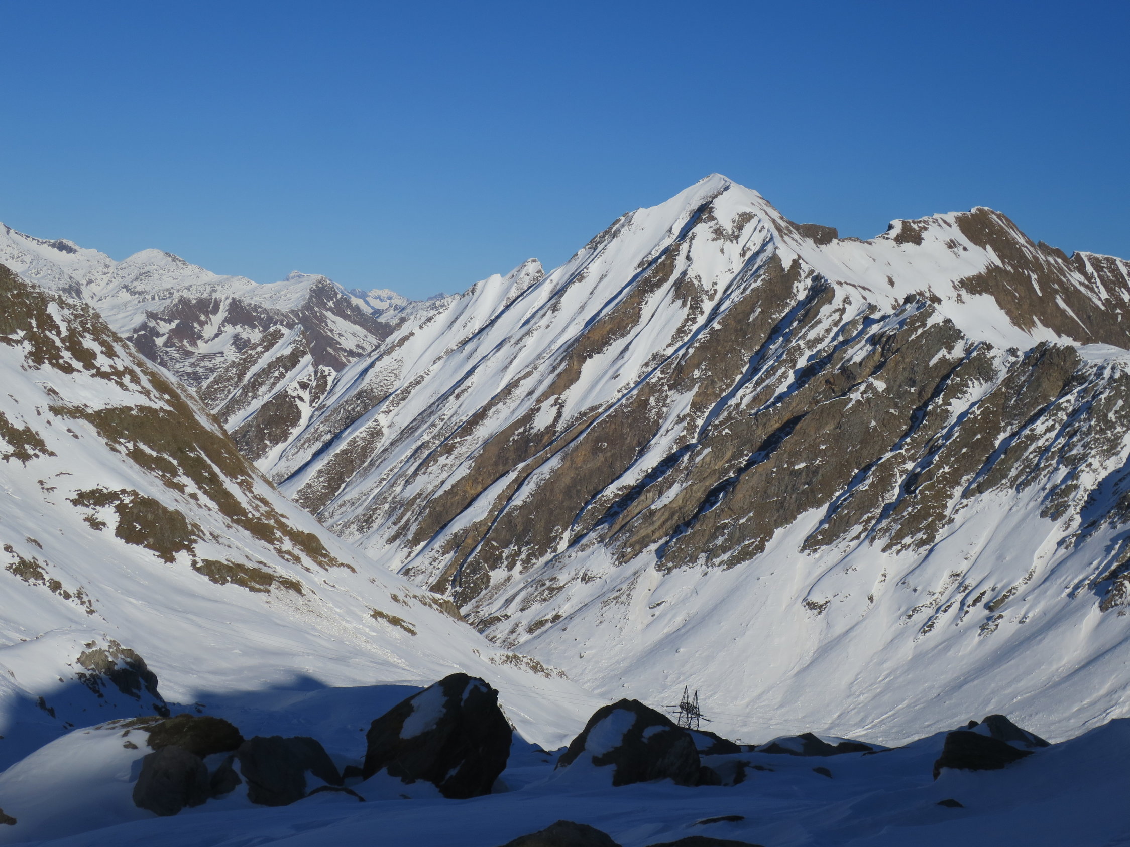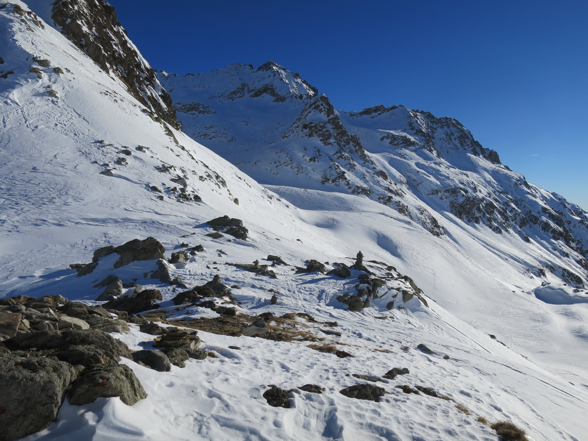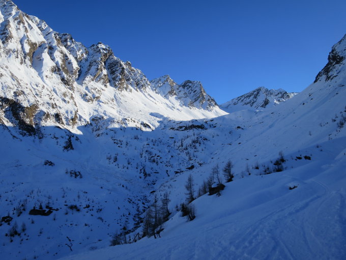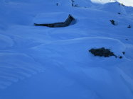 Zurzeit bei der knappen Schneelage nicht das gelbe vom Ei! Im Val Torta wächst der Schnee zusehends ist aber stark vom Nordföhn bearbeitet worden.