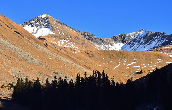 Sonnst eben perfekte Herbstverhältnisse und nur hier und da am Gipfelhang wegen der Schneeschmelze feucht und dadurch glitschig.
