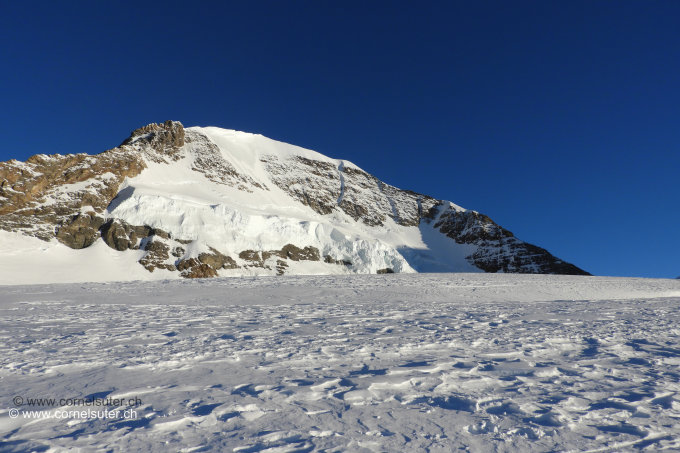 Vom Jungfraujoch bis zum Einstieg zur Normalroute Pisten ähnlich präpariert und gut tragend.