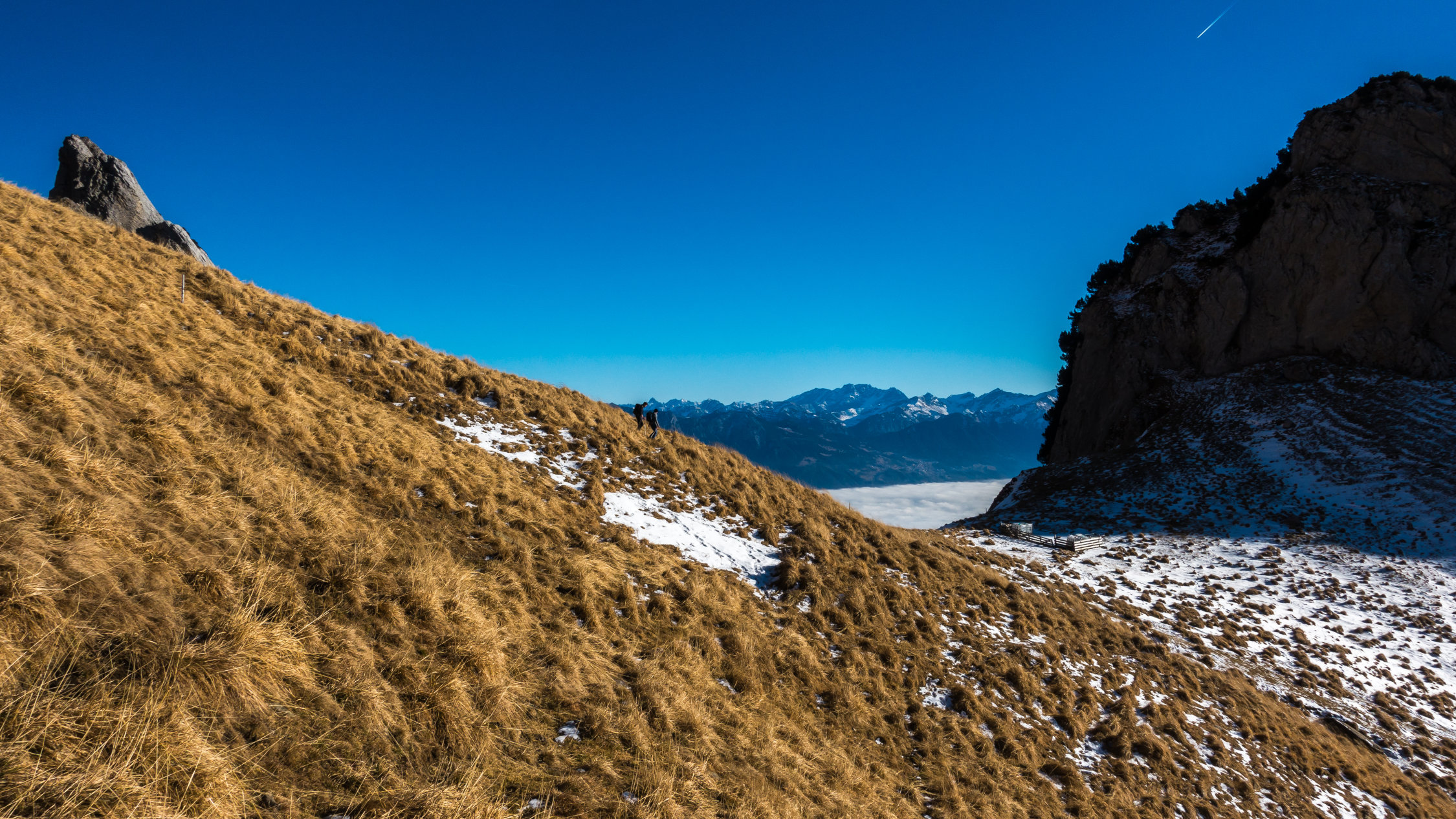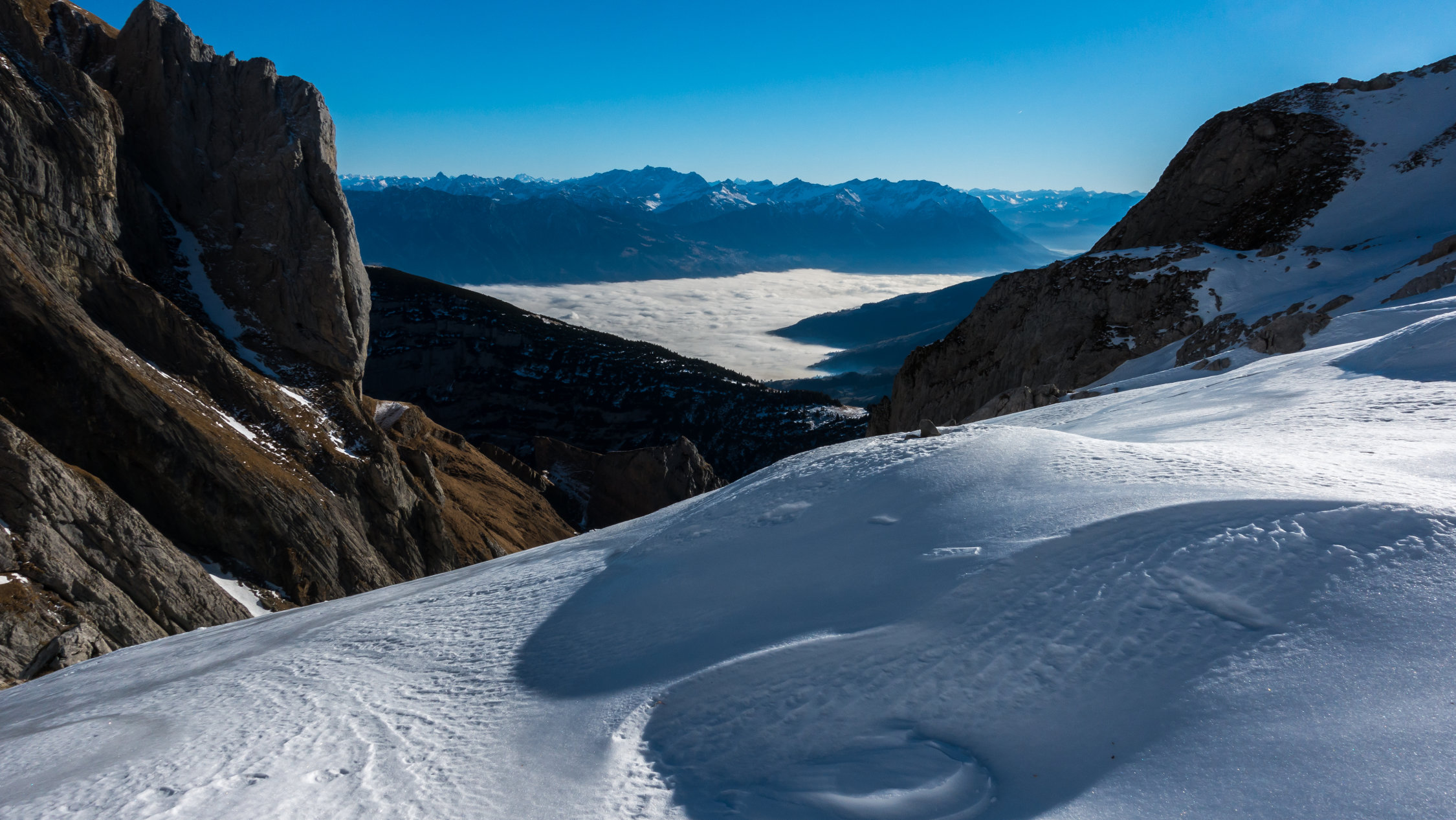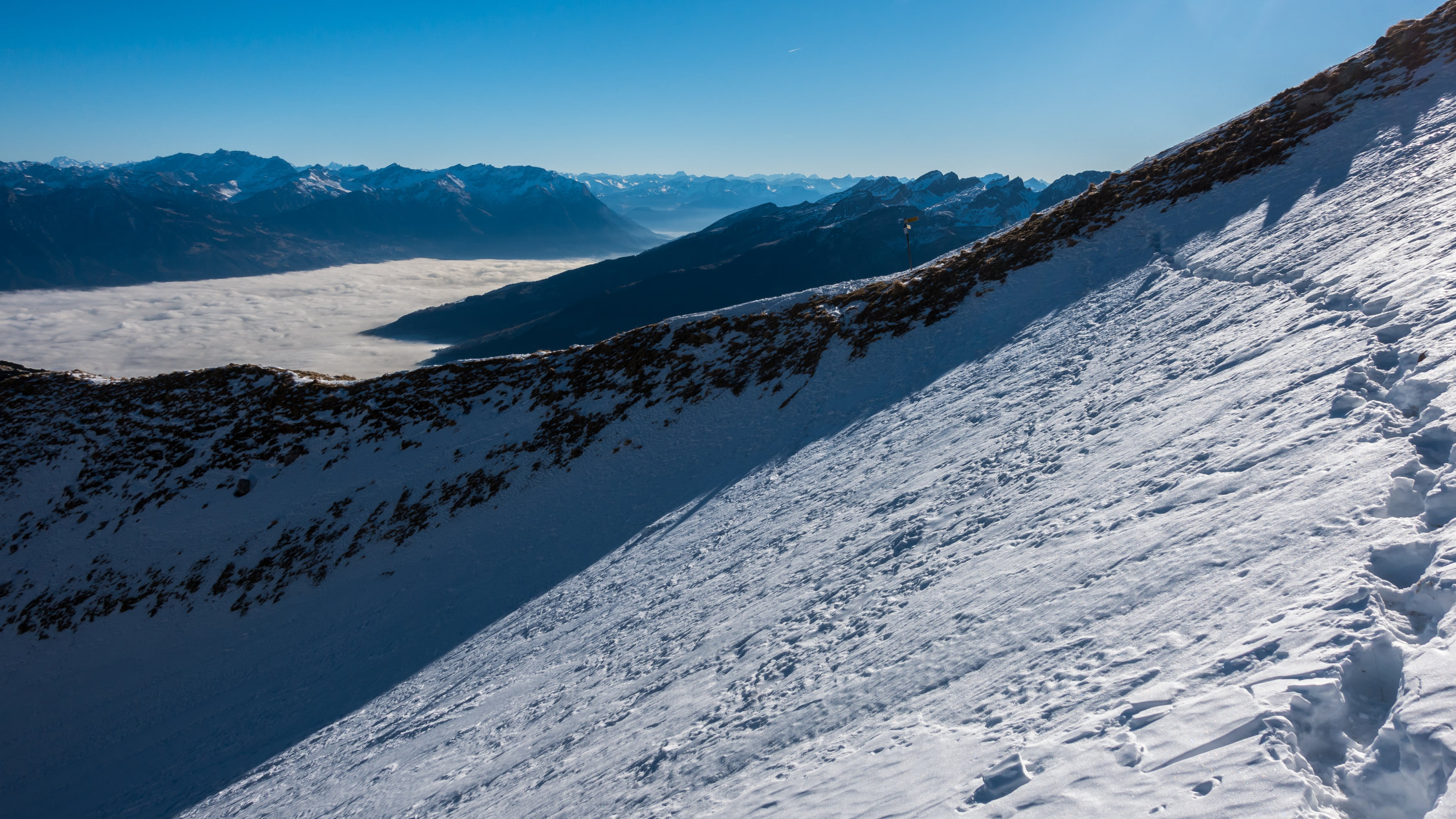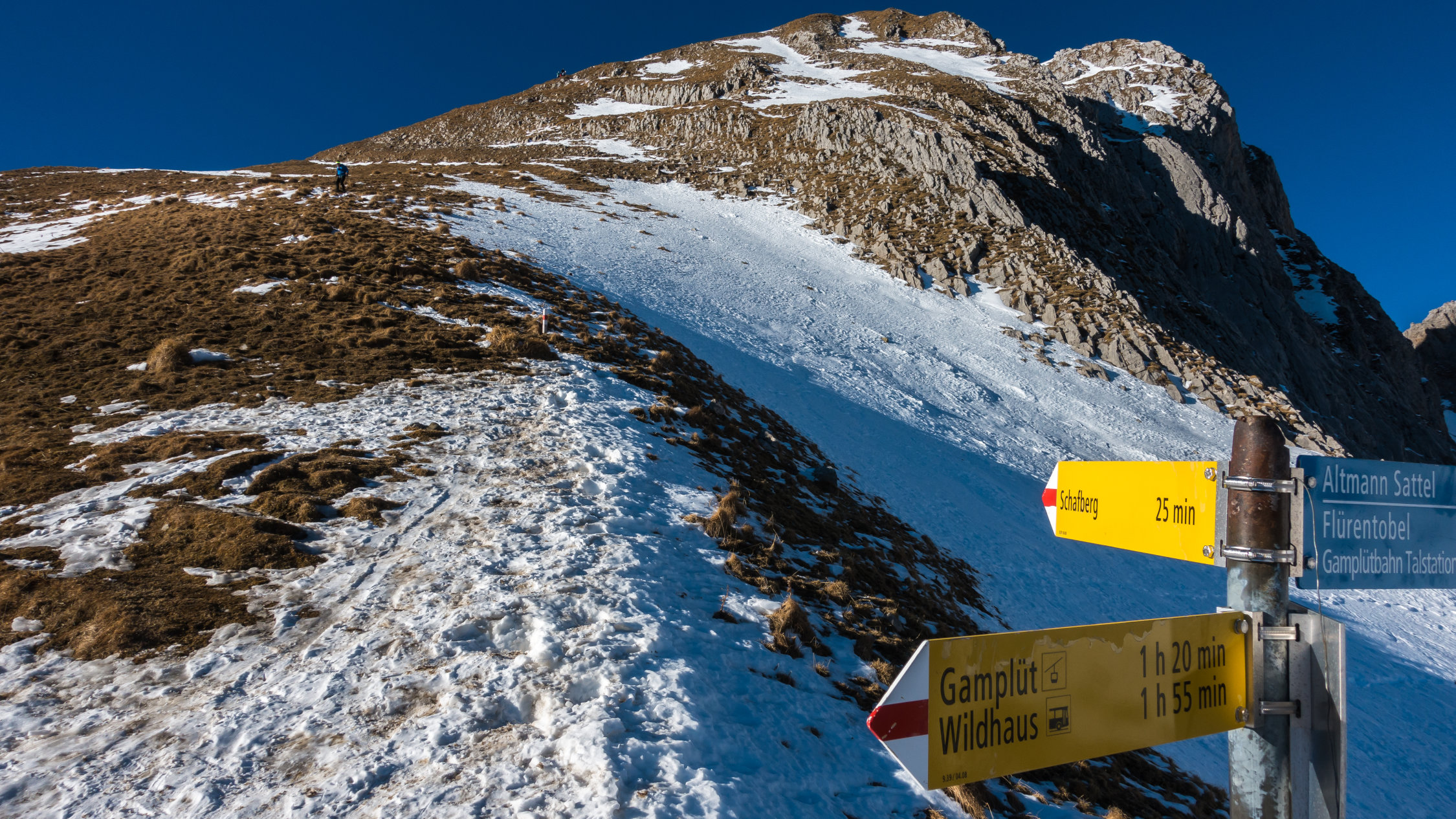 Perfekt! Wolkenlos und sehr mild. Ich habe die Tour in der umgekehrten Richtung gemacht, d.h. Aufstieg durchs Flürentobel und weiter über Schafboden zum Schafbergsattel und von hier zum Gipfel. Abstieg dann über Schäferhütte. Für die Traverse vor dem Schafbergsattel sind Grödel oder Steigeisen nützlich, aber es geht momentan auch ohne, es hat gute Tritte im Schnee. Grödel sind aber sehr angenehm für den Abstieg vom Schafberggipfel, da der Pfad hier teilweise vereist ist und so kann man direttissima über die steilen Wiesenhänge hinuntersausen.