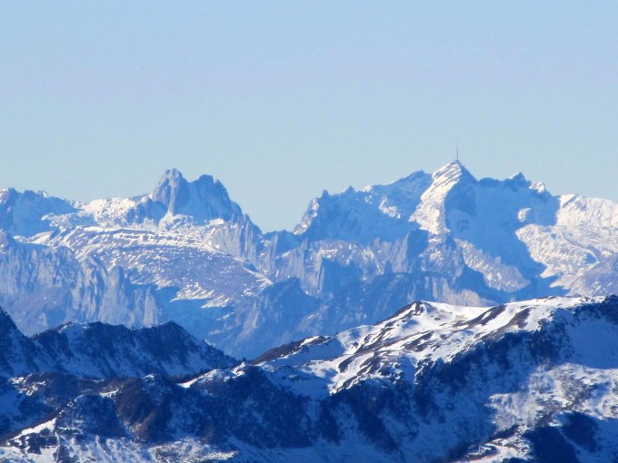 Strahlend schön. -5 Grad beim Start, mit zunehmender Höhe milder. Am Gipfel kühler Wind, was aber eine Gipfelbrotzeit nicht beeinträchtigte.