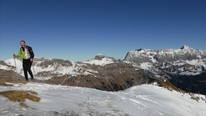 Trocken und schneefrei bis 1600 müM dann gute Spur zum Gipfel.