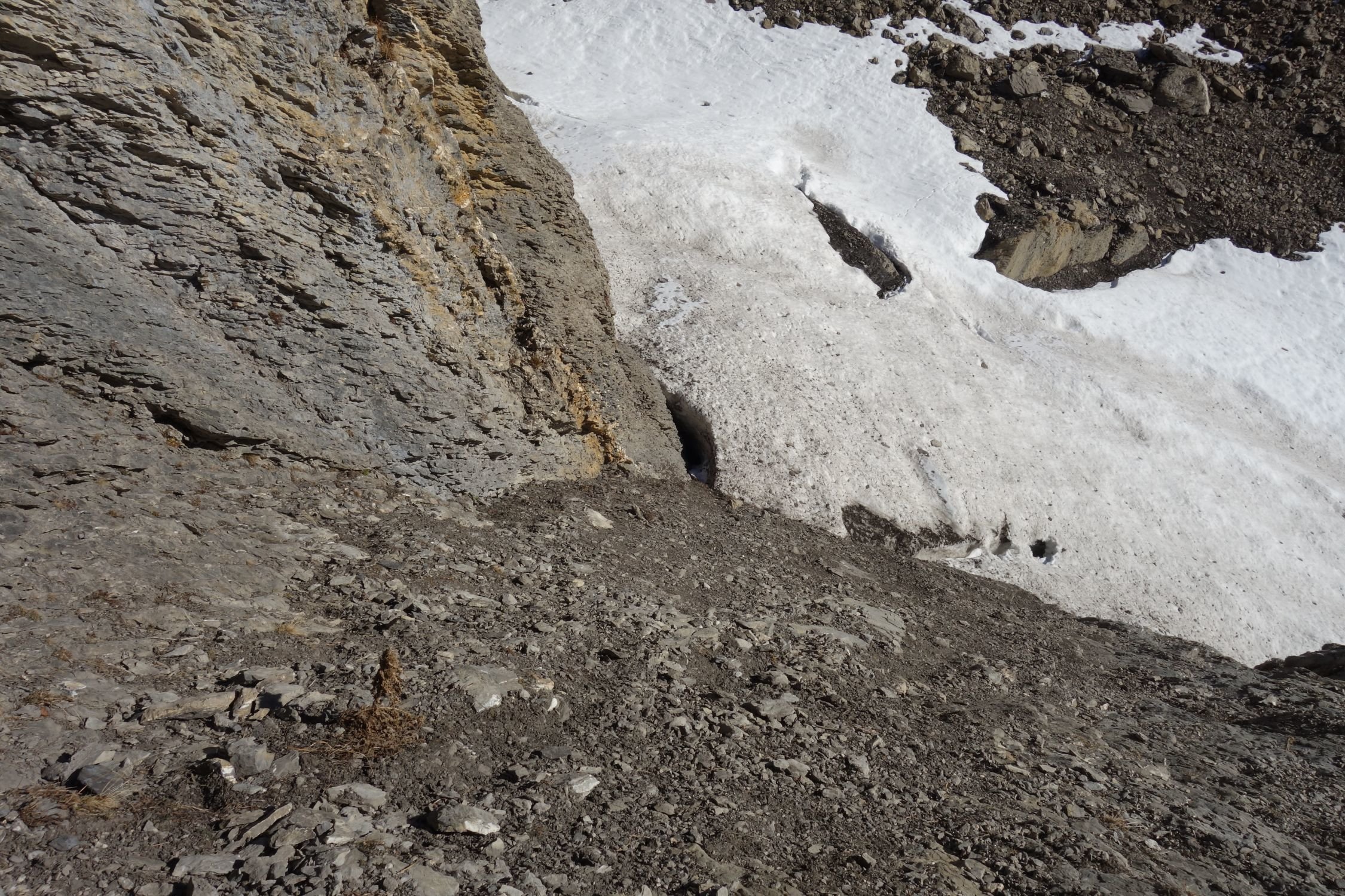 Ende für diese Saison. Obwohl der Dezember extrem trocken war, war unterhalb des Felsenfensters noch Schnee vorhanden. Daraus lässt sich schliessen, dass es nach Schneefall einige Wochen Sonnenwetter braucht, bis die Route wieder Schneefrei ist.