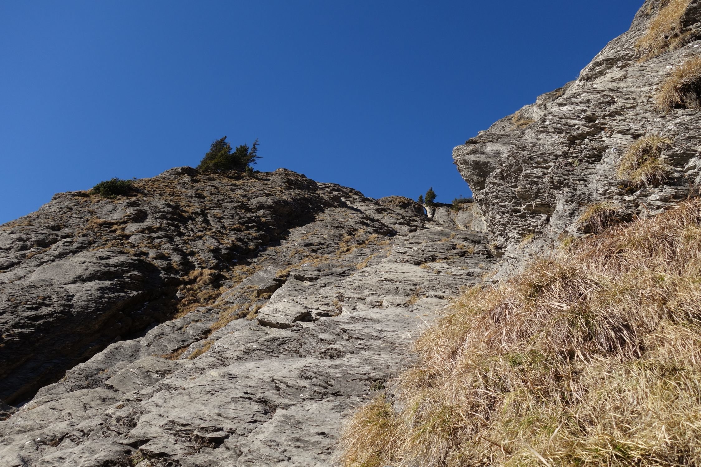 Extrem anspruchsvolle T6 Route welche 100% Konzentration über die gesamten 660 Höhenmeter der Route erfordert. Das Goldloch und der Grat oberhalb des Felsenfensters sind die einzigen Ruhemöglichkeiten.