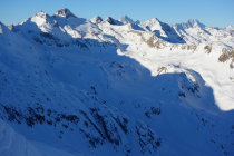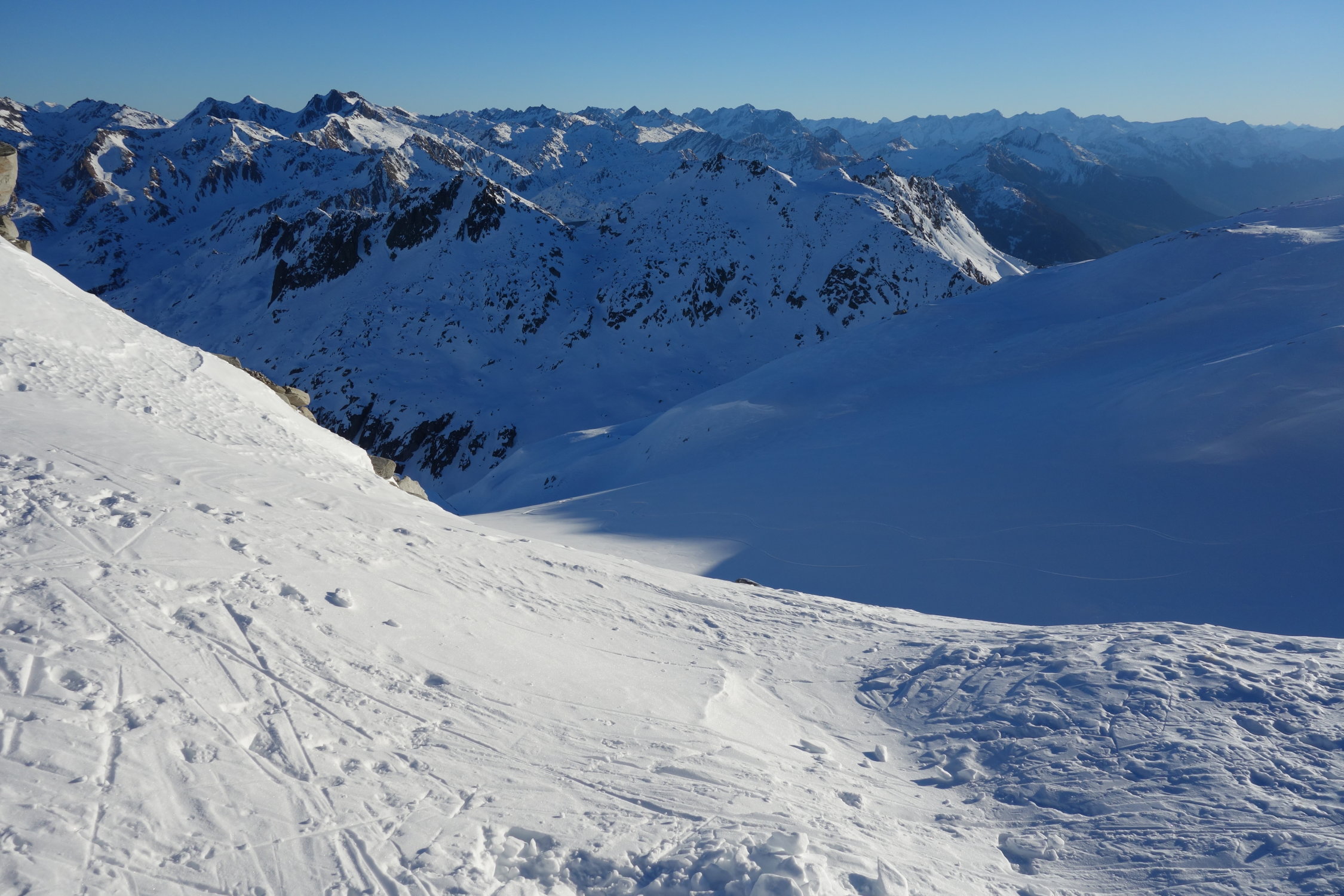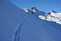 Da es noch sehr früh am Tag war überlegte ich mir was ich mit dem Resttag anfangen sollte. Ich stieg über den Passo di Cavanna zum höchsten Punkt es Ronggergrates auf um von dort in einer weiteren Abfahrt nochmals die pulvrige Nordseite genießen zu können.
