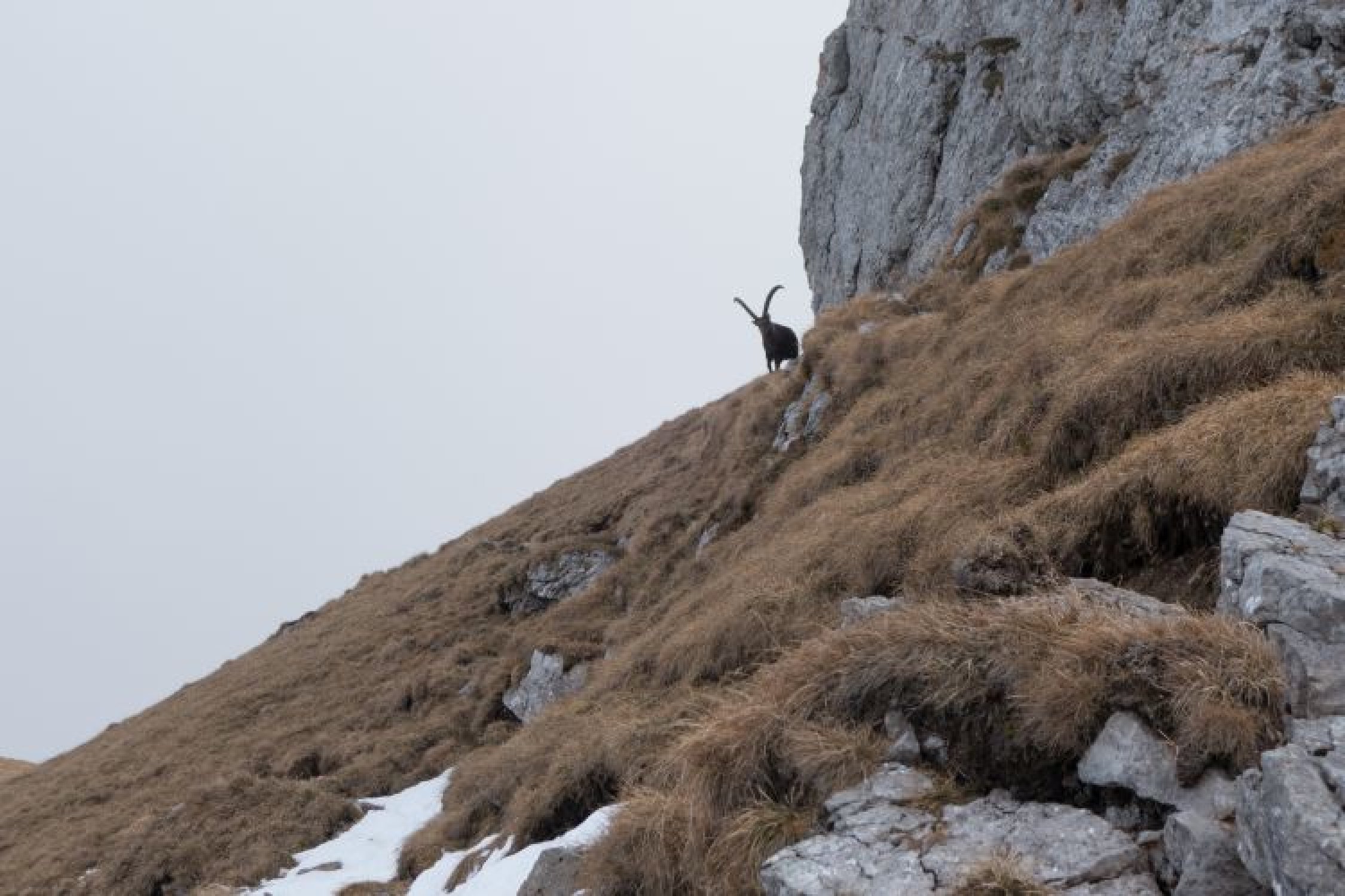 Hinter dem Widderfeld ist ein mächtiger wirklich beeindruckender Steinbock aufgetaucht. Er hat sich uns ohne Scheu genähert. Später haben wir eine ganze Kolonie mit Steinböcken allen Alters aus nächster Nähe gesichtet.