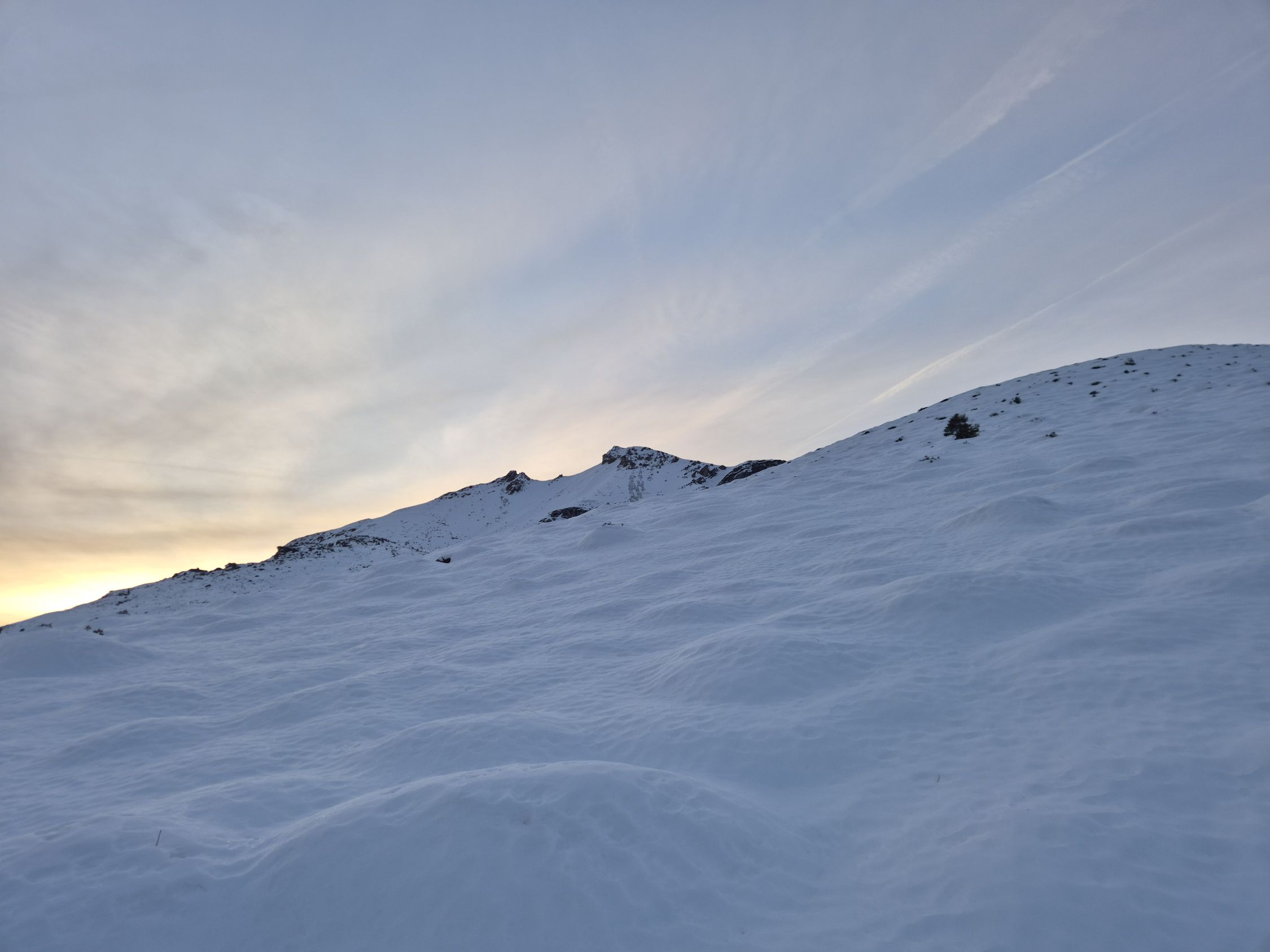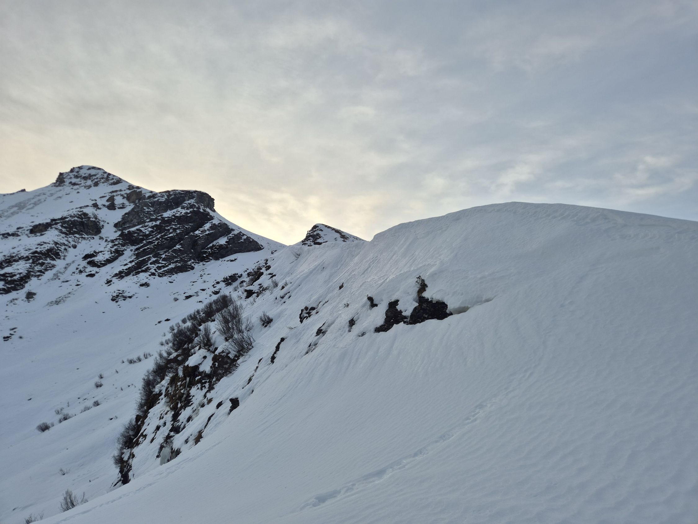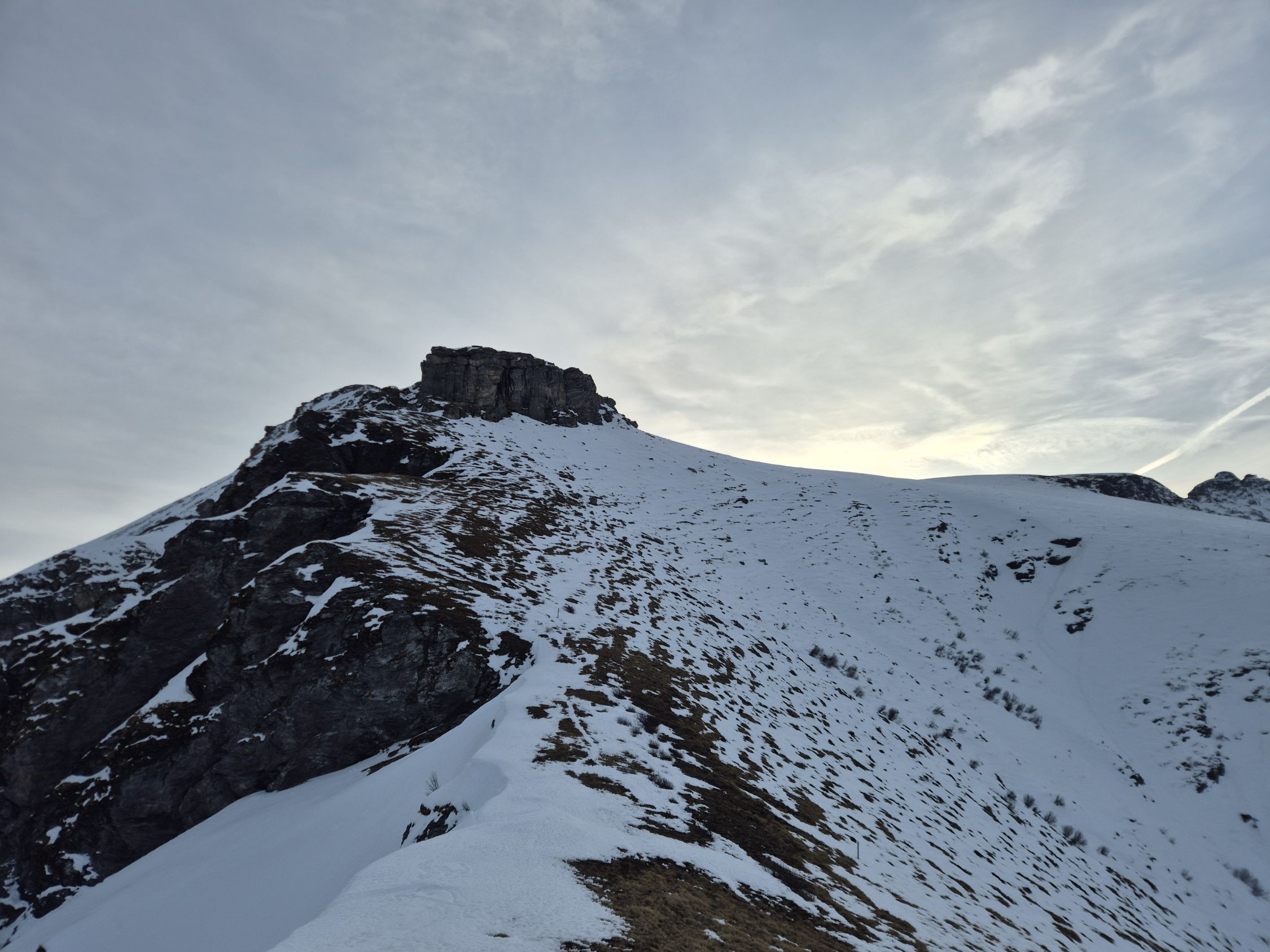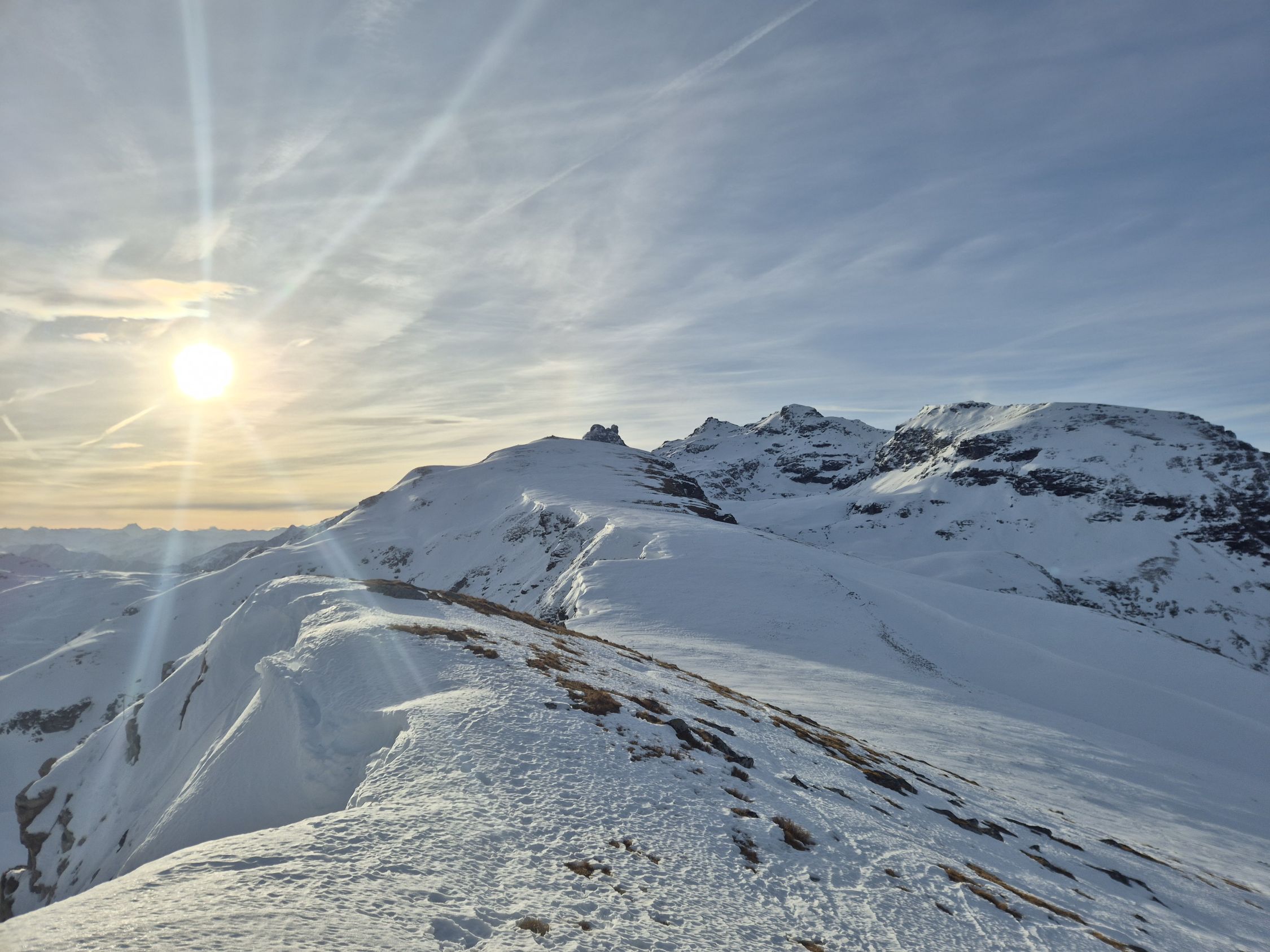Mit dem Bike bis vor Vermiiboden, ab da fast durchgehend geschlossene Schneedecke über den Nordwestgrat. Unten hart, oben Windgepresst aber auch noch Pulverstellen und tragender Deckel.