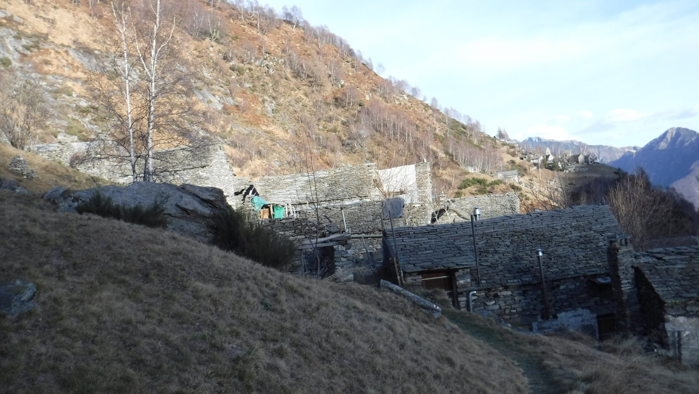 Die sehenswerte Gegend von Mergoscia ist umgeben von Rusticos und Mini-Materialseilbahnen. Man bekommt hier Respekt vor den Vorfahren.