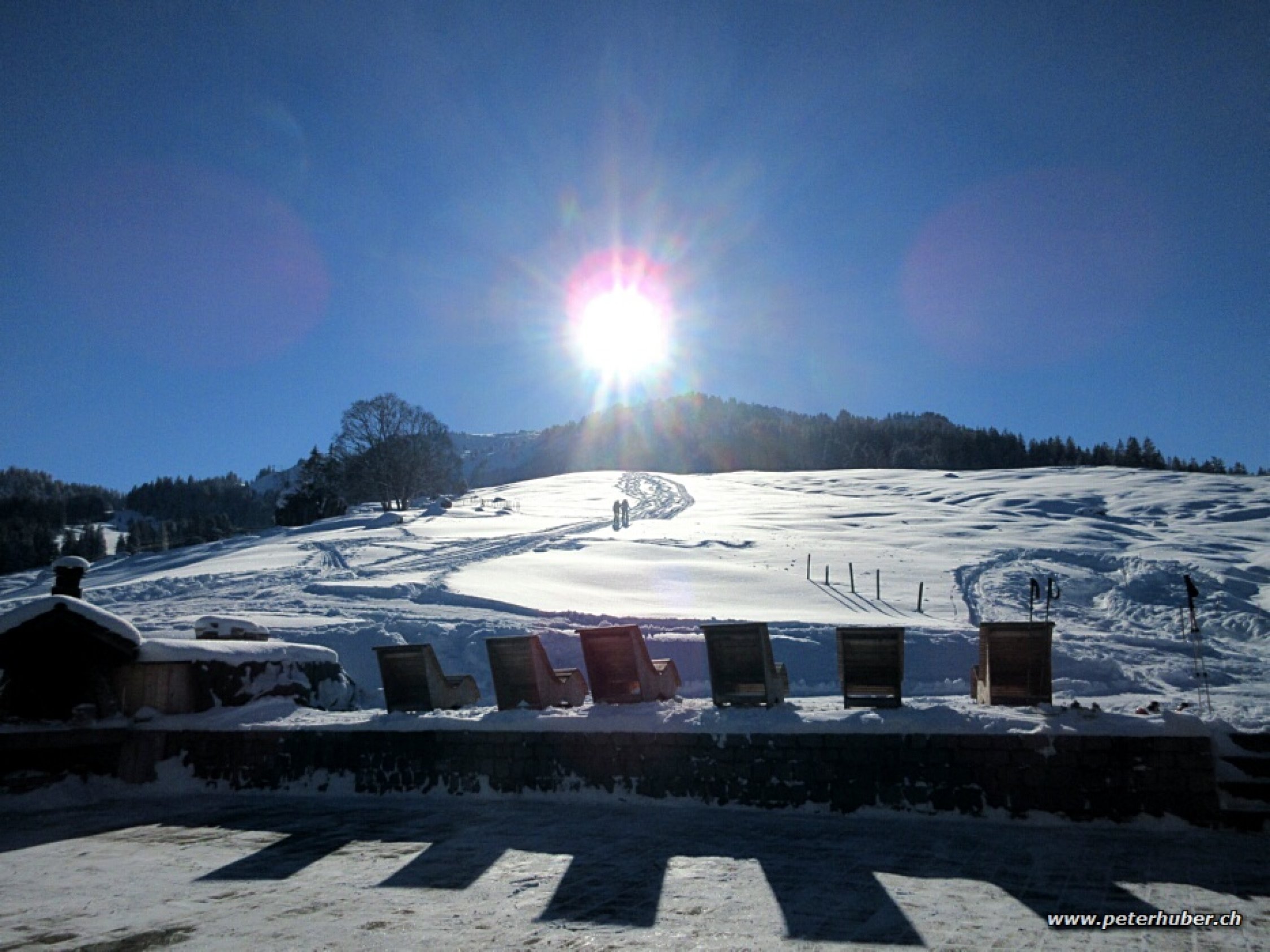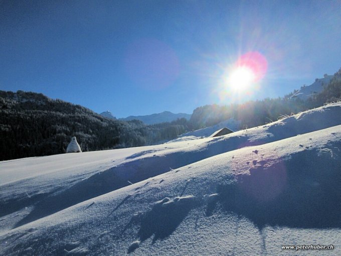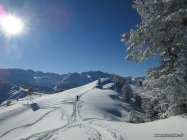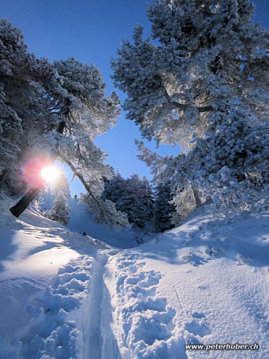 Endlich Schnee. Unten zirka 20 cm, oben bis 50 cm, leider ohne Unterlage. Traumhaft schöner Tag mit Temperaturen um - 15°C. Der Schnee war entsprechend federleicht. Sonst windstill und Temperatur ertragbar.