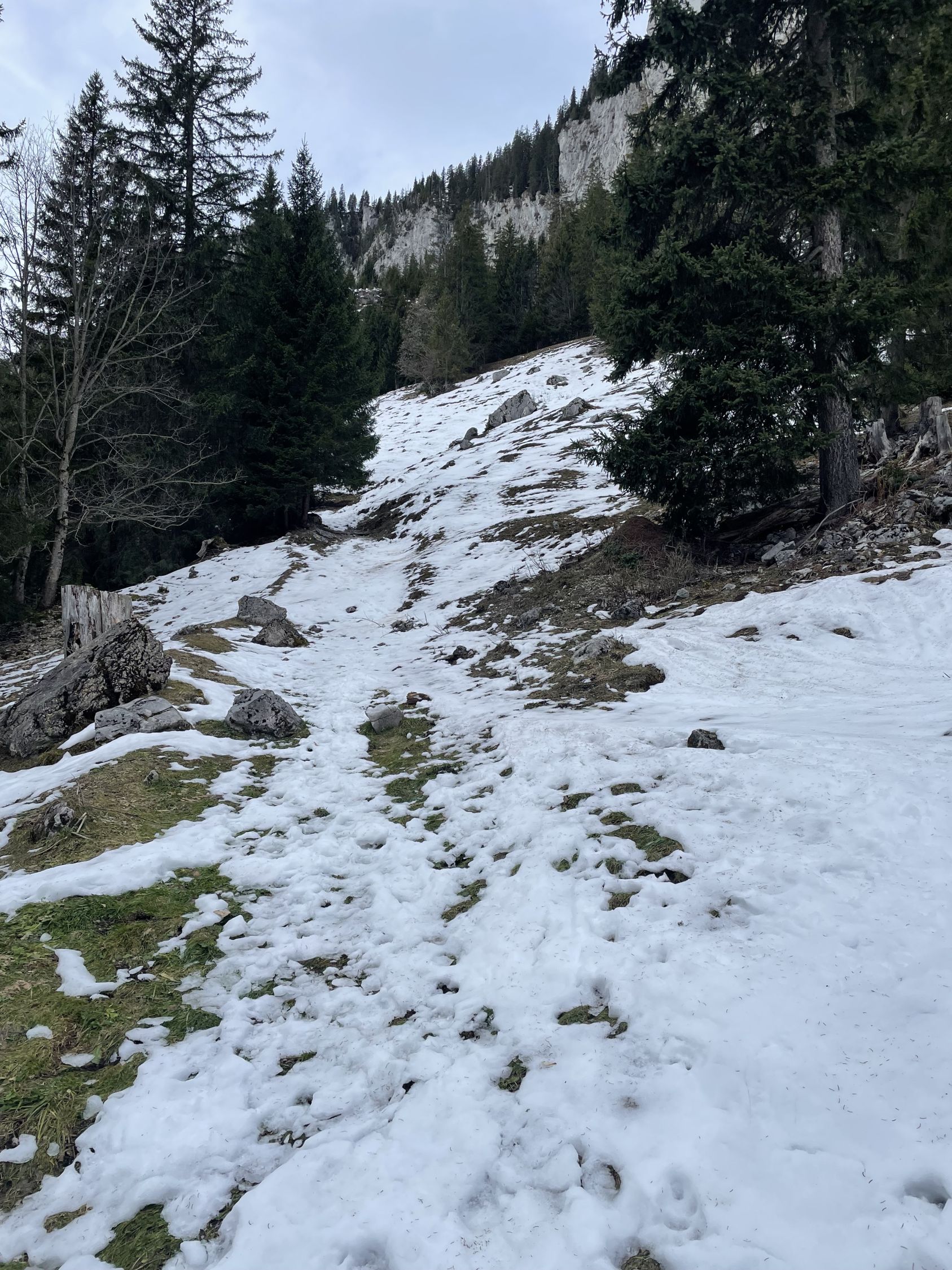 Heute hat es mich verseggelt, das Wetter. Geplant war eine Tour auf den Lueglespitz im Sonnenschein mit Sulzabfahrt, die Wetterprognose gestern stimmte zuversichtlich. Leider gab es aber heute keinen einzigen Sonnenstrahl, bedeckt beim Start und bei der Rückkehr. Dazu leichte Plusgrade. Auf der Strasse zum Brätliplatz hat es seit letzter Woche tüchtig getaut, längere Tragepassagen wie normal im April. Ab Brätliplatz dann durchgehend Schnee und leider auch durchgehend schlechter Schnee, meist Bruchharsch. Unter diesen Umständen liess ich den Luegle sein und begnügte mich mit dem Gestelegrat. Immerhin hübsche Rast. Ich versuchte in der Abfahrt zuerst den südlich ausgerichteten Hang, der mir vor 2 Wochen den Tag gerettet hatte, aber das war heute auch nix. Also im Bruchharsch runtergewürgt und dann auf der Alpstrasse die gefrorenen Löcher genossen :-(. Ab Brätliplatz wars noch am besten, trotz Tragestrecken, das sagt wohl alles.