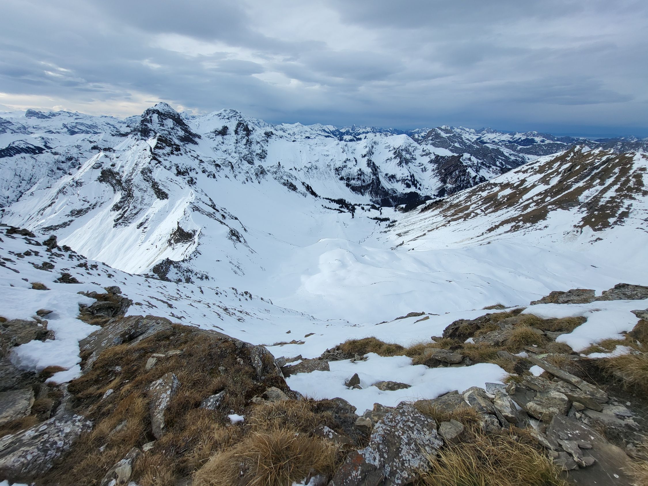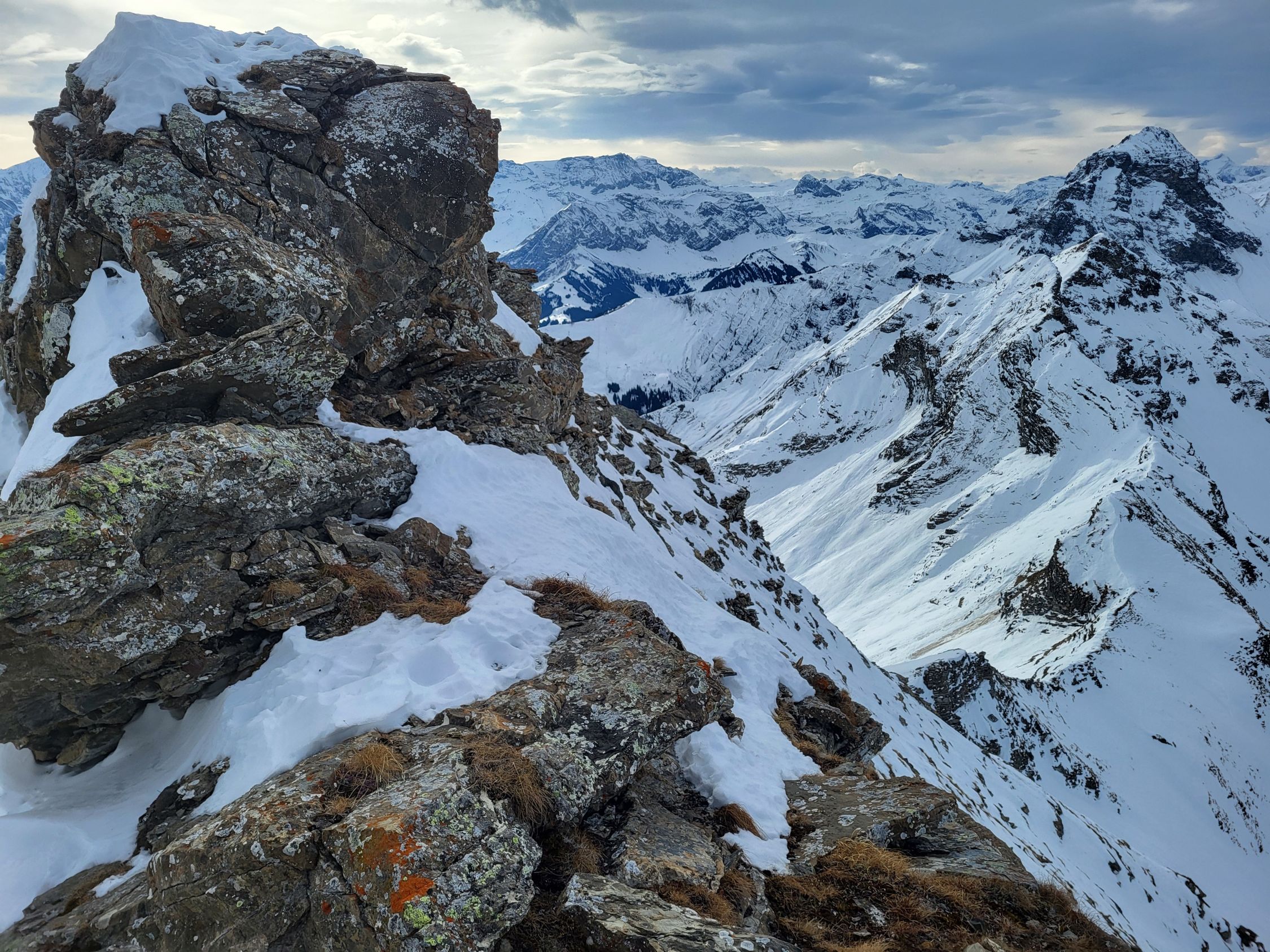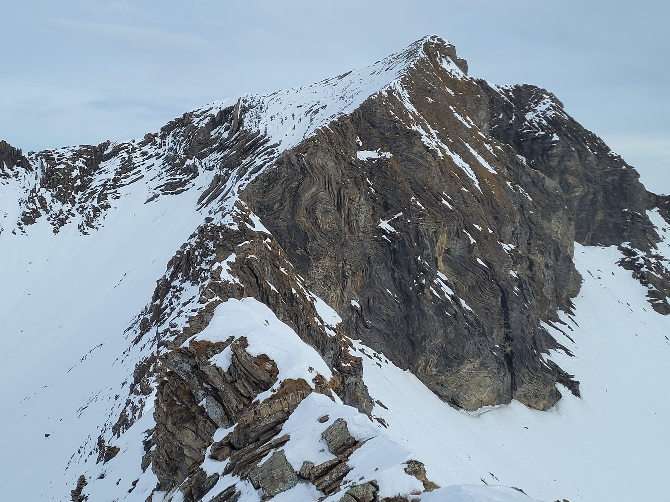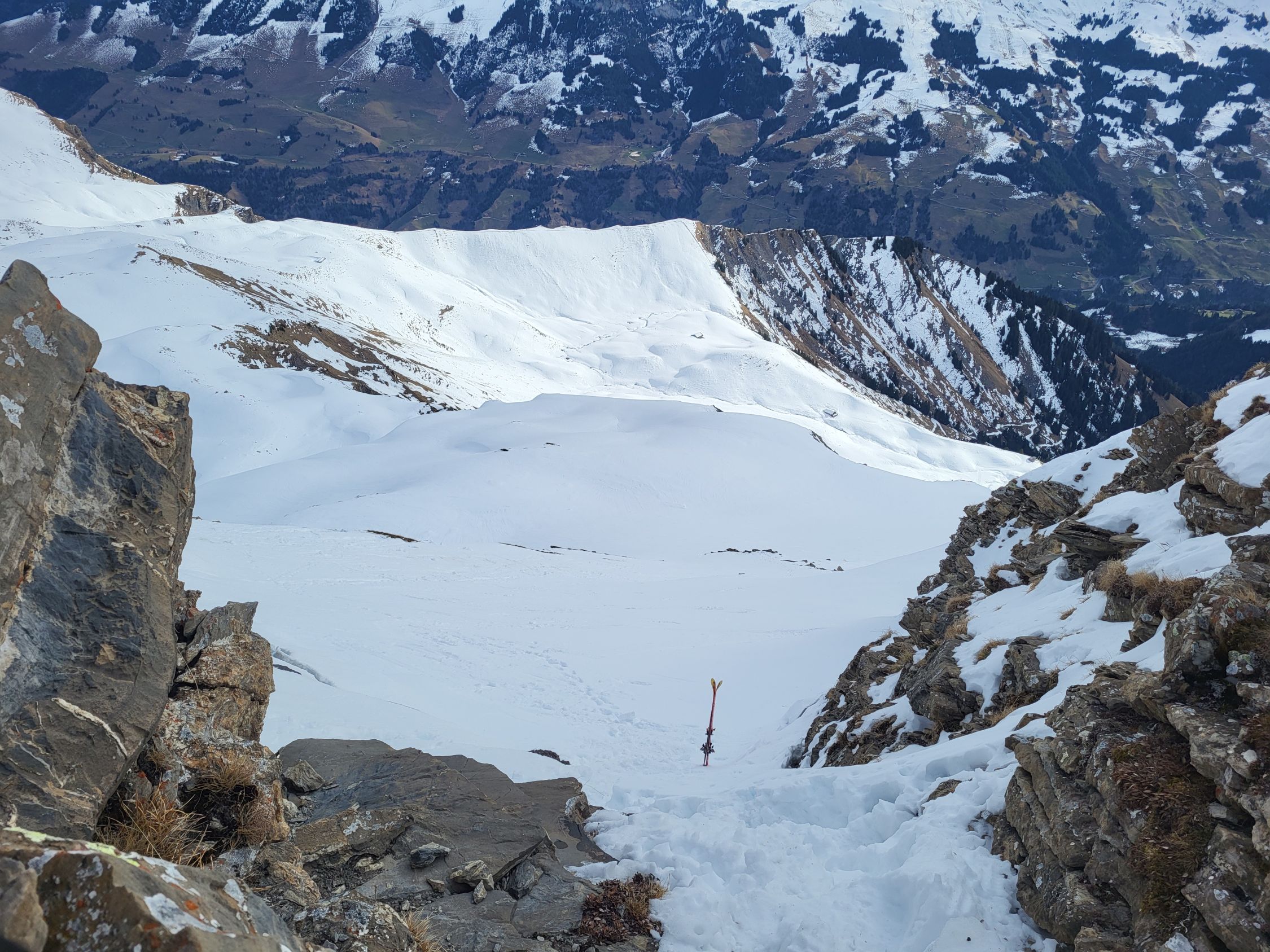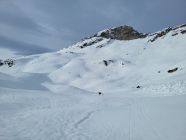Start um 9 Uhr beim Hof "im Schwand". Auf der Fahrstrasse zur Alp Ottere ab ca. 1630 m Schnee, aber leider nur teilweise. Im oberen Teil (oberhalb Pt. 1753) genügend Schnee auf der Fahrstrasse. Oberhalb der Alp Ottere gut eingeschneit (48 cm bei Schneestation 2017 m). Der steile Schlusshang zur Gratlücke war relativ hart, Harscheisen sind notwendig. Ab Skidepot mit Steigeisen zum Gipfel in guter Trittspur.