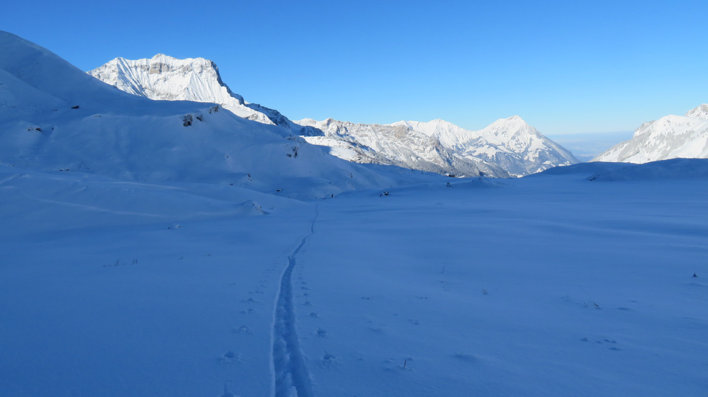 Ich durfte heute ab Griessalp alles allein Spuren was bei der kälte viel kraft kostete