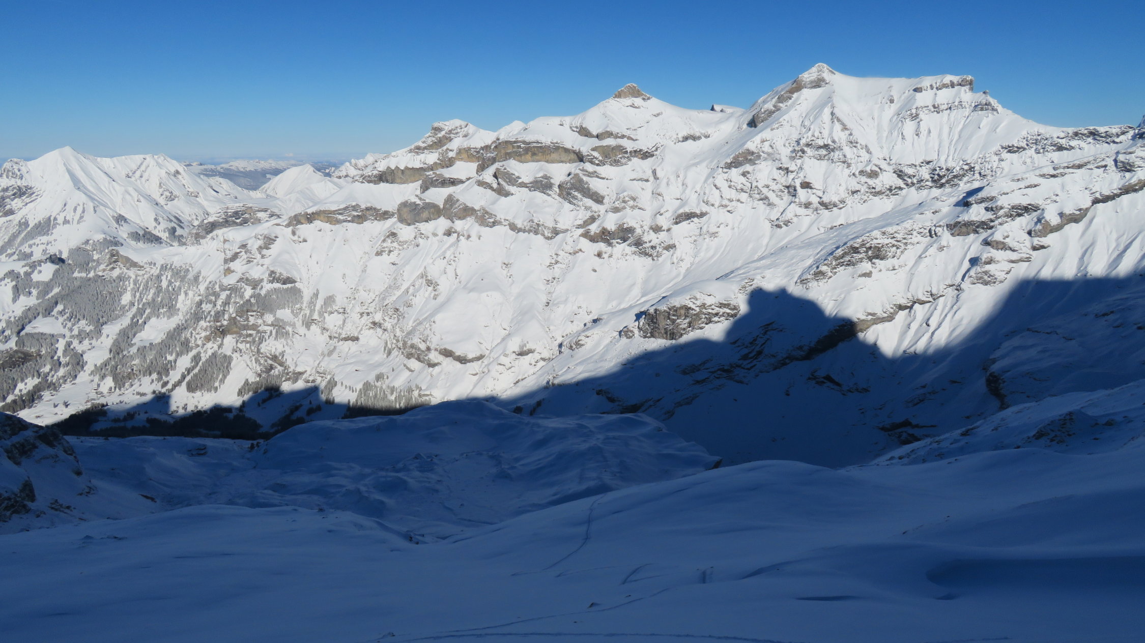 Heute endlich wieder mal 25-40cm Pulverschnee, oberhalb 1900m mit Unterlage in den rinnen und Mulden super zum fahren.