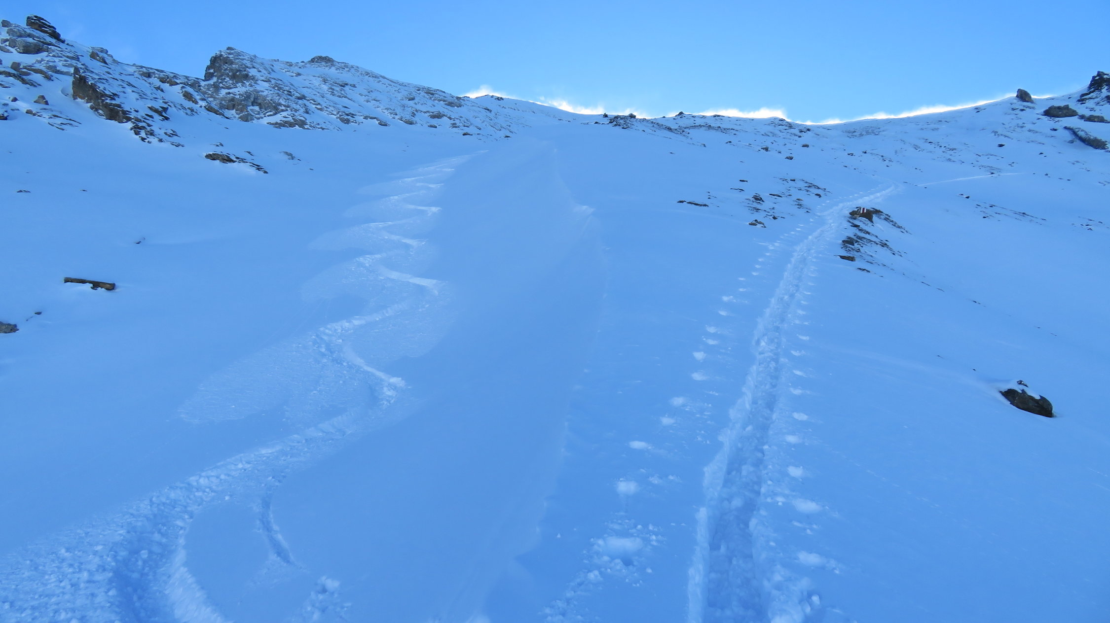 Oberhalb 2650m hat der Starke Wind den ganzen Neuschnee wieder weggefegt