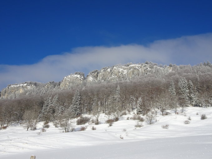 Dank meiner Juraspezialisten konnte ich eine schöne Tour machen die ich überhaupt nicht kannte. Über dem Chamben mit seinen von der Bise bearbeiteten Bäumen zu gehen, war ein Hochgenuss. Bei solchen Verhältnissen, wo die Natur ihre Kreativität und Schönheit zeigt, eine solche Tour zu machen ist es ein schönes Erlebnis.Da gibt es nicht "grosse" oder "kleine" Touren, sondern Was und Wie man erlebt ist "Gross".