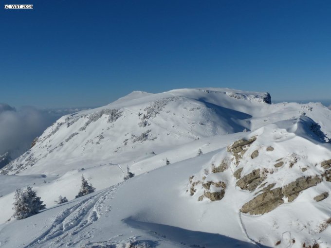 Insgesamt waren heute NUR ca. 5 weitere Personen am Gipfel - gem. Spuren vom Skigebiet rüber.