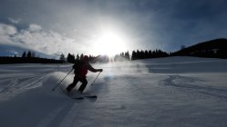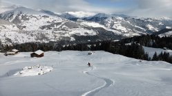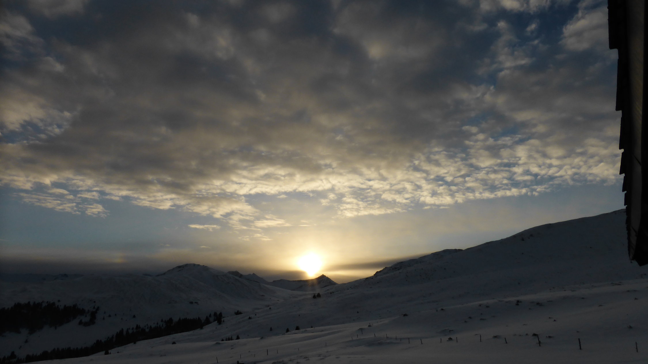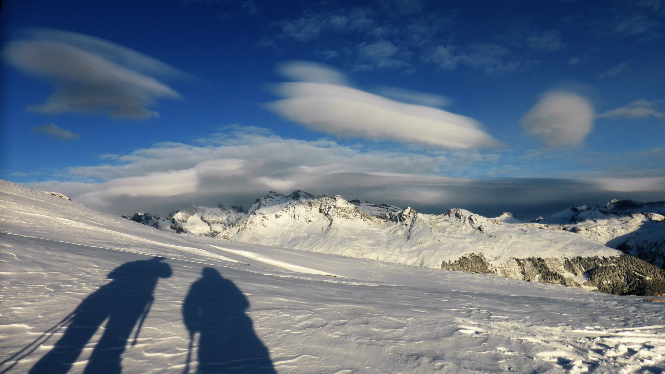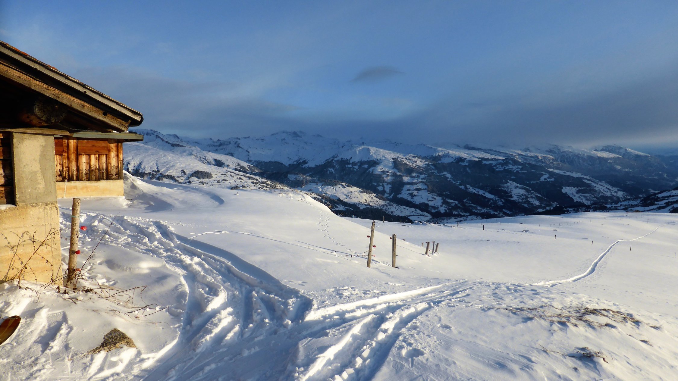 Wenig Schnee im Gebiet, unterhalb 2000 müM ohne Unterlage.Am Gipfel schwacher kalter Nordwind.