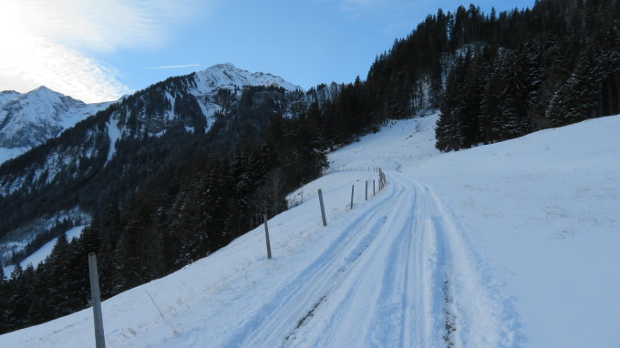 Start ab Feissenboden 1237m auf Asphaltierter Strasse bis Ramse 1443m mit 10cm genügend Schnee.