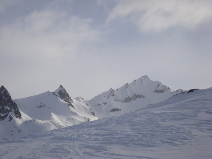 Nach meiner Gipfelankunft 12.45Uhr blieb mir leider nicht viel Zeit zum Verweilen, denn bald zog es ringsherum zu und bescherte mir eine Abfahrt mit diffusen Lichtverhältnissen.