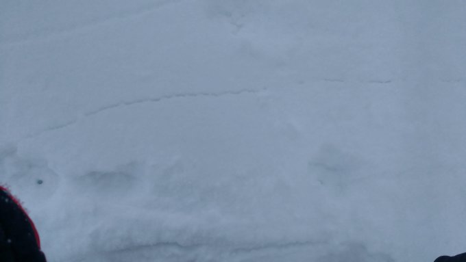 Schneeoberfläche durch triebschnee sehr ungleichmäßig. Steine sind teils gerade nicht zu erkennen.