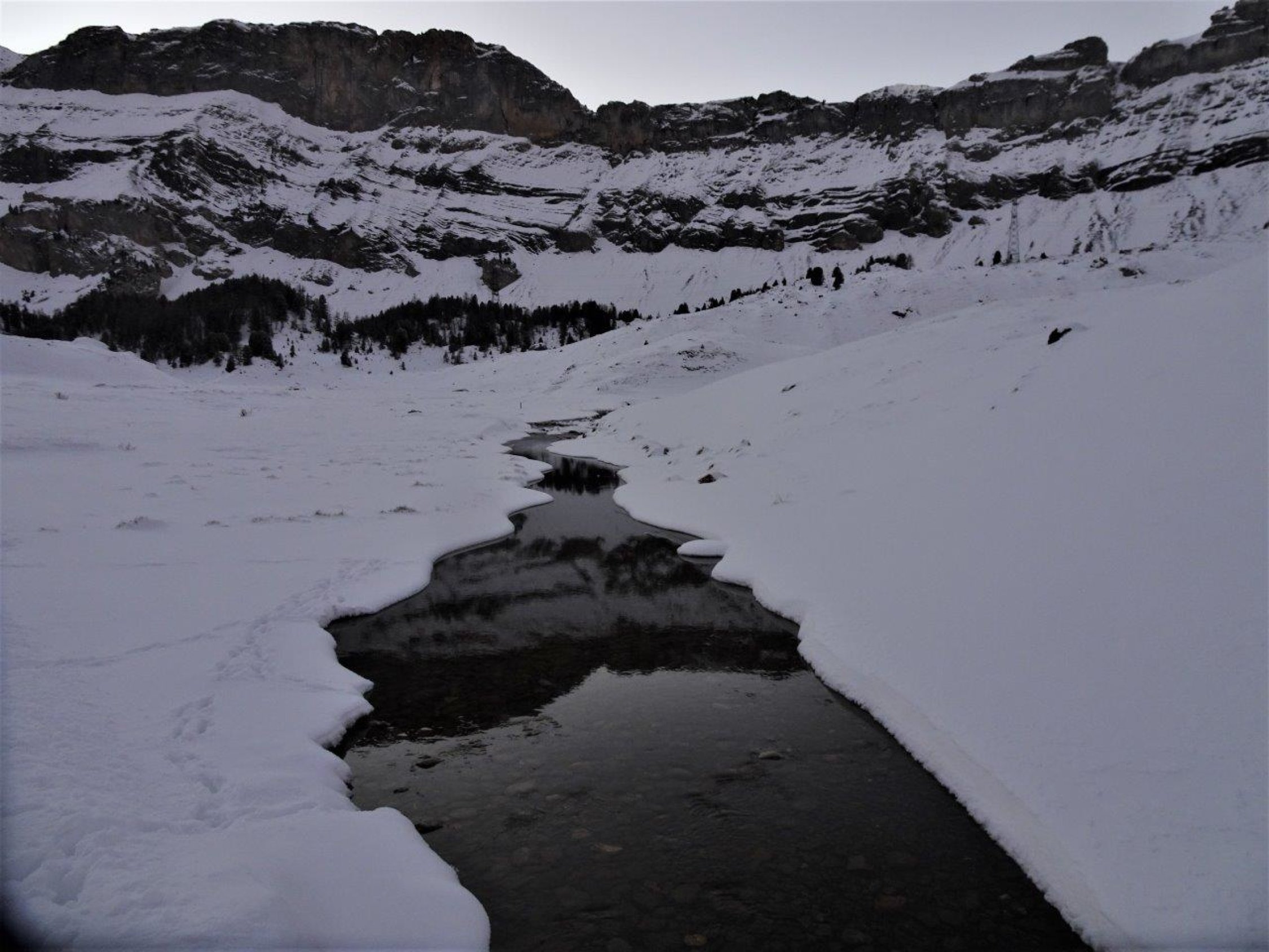 Auf dem gleichen Weg zurück zum Berghotel Schwarenbach und im Winterraum anschliessend die Nacht verbracht. Am Dienstagvormittag, 10.1.2016, wieder retour nach Sunnbüel.