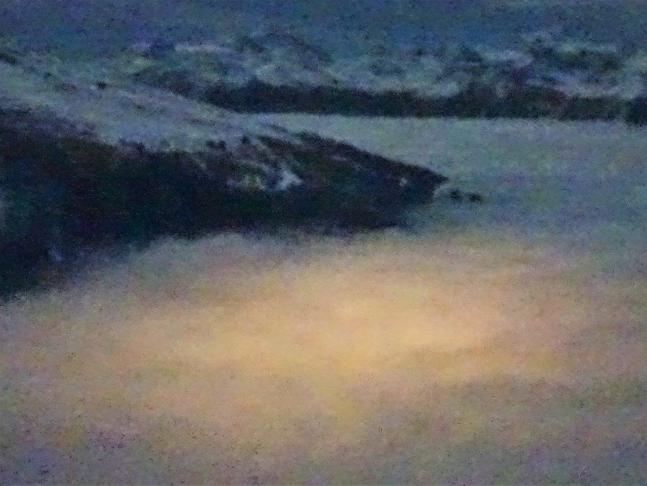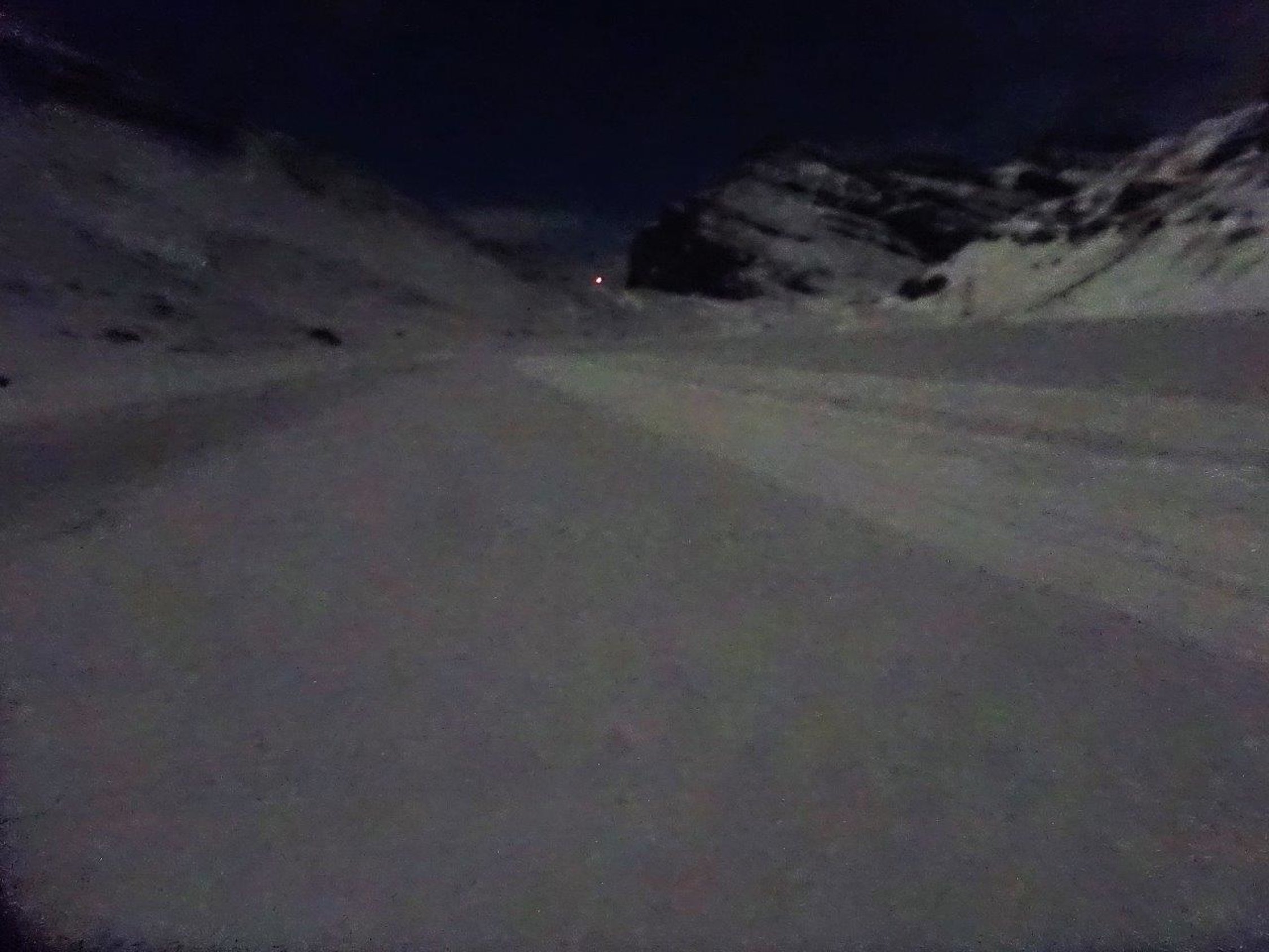 Beim Abmarsch auf der Gemmi um 21.00 zurück zum Winterraum leichte Eintrübung, aber nicht störend. Bei der Ankunft kurz nach 22 Uhr sehr schöner Halo über dem Schwarenbach. Temperaturen unterwegs -8° und leichter Wind. Interessanter Temperaturunterschied beim überqueren des Daubensees: hier eisige -16°