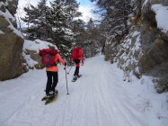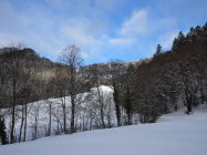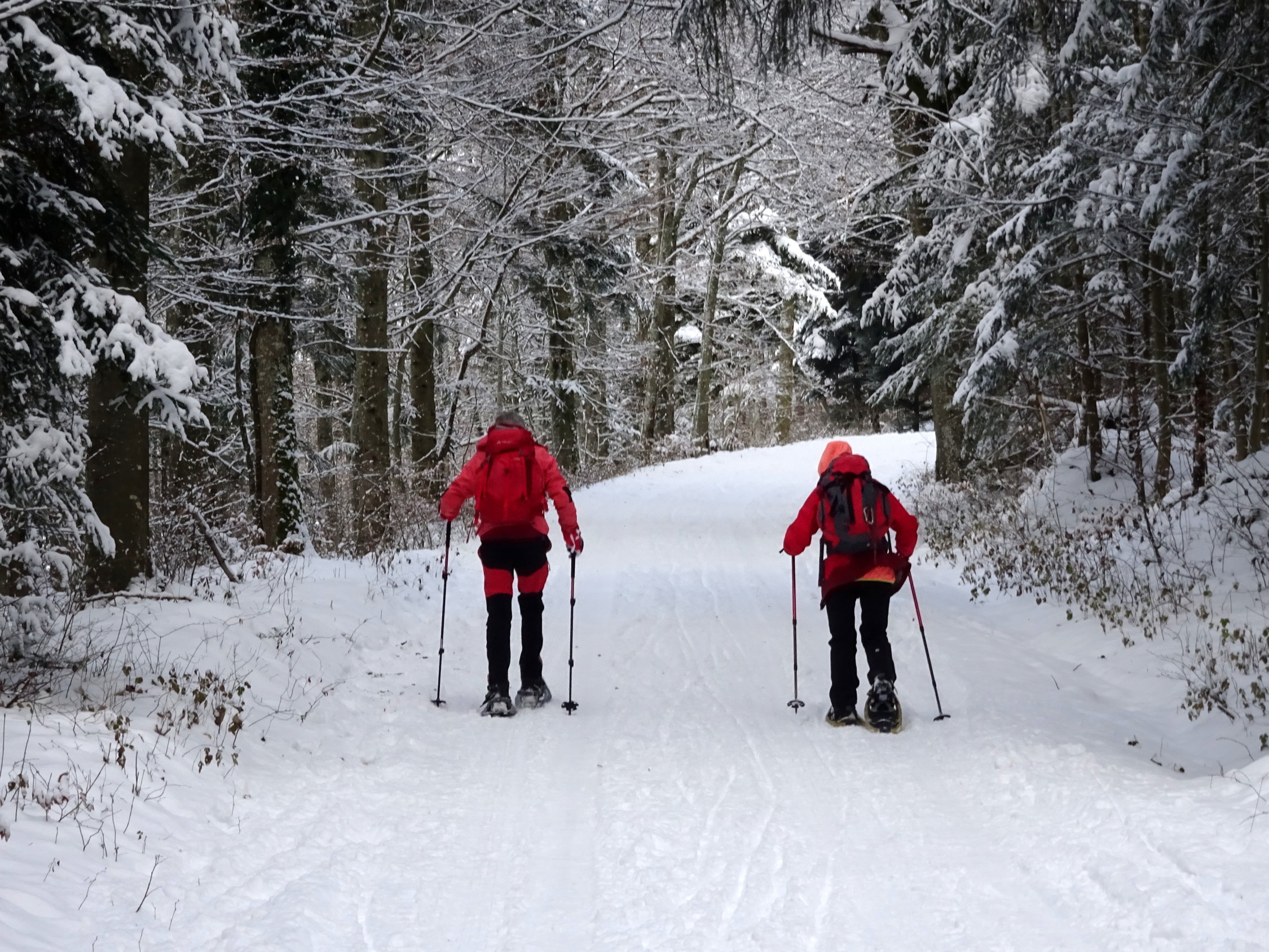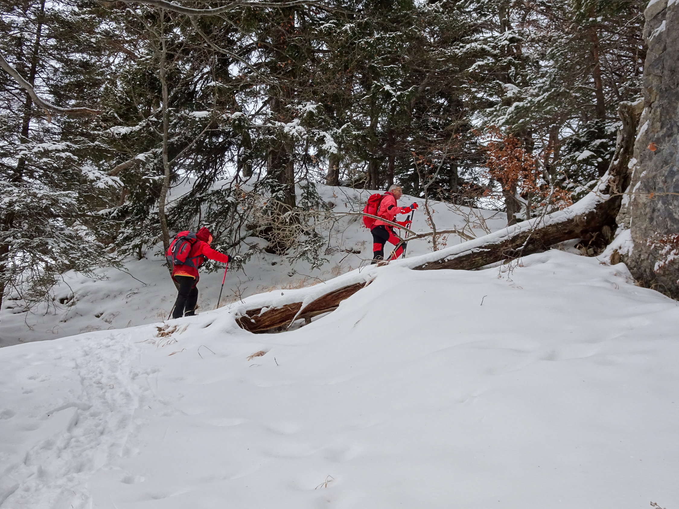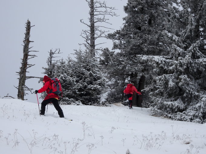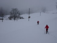 Die Schneehöhe war so, dass man mit den Schneeschuhen ab ca. 900 m wohl war. Man hätte auch ohne können, was aber im Aufstieg ein wenig mühsamer geworden wäre.