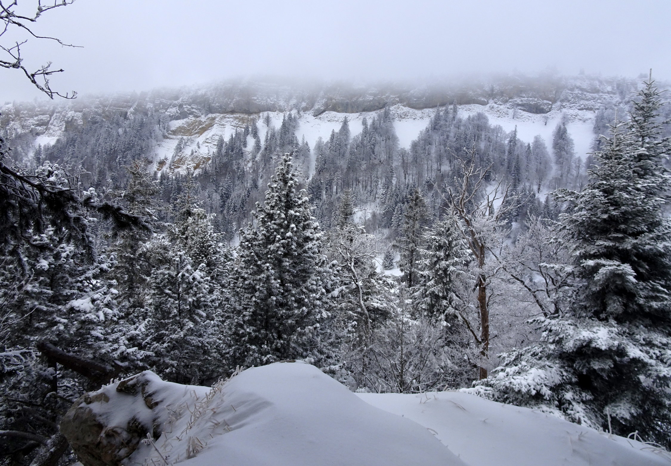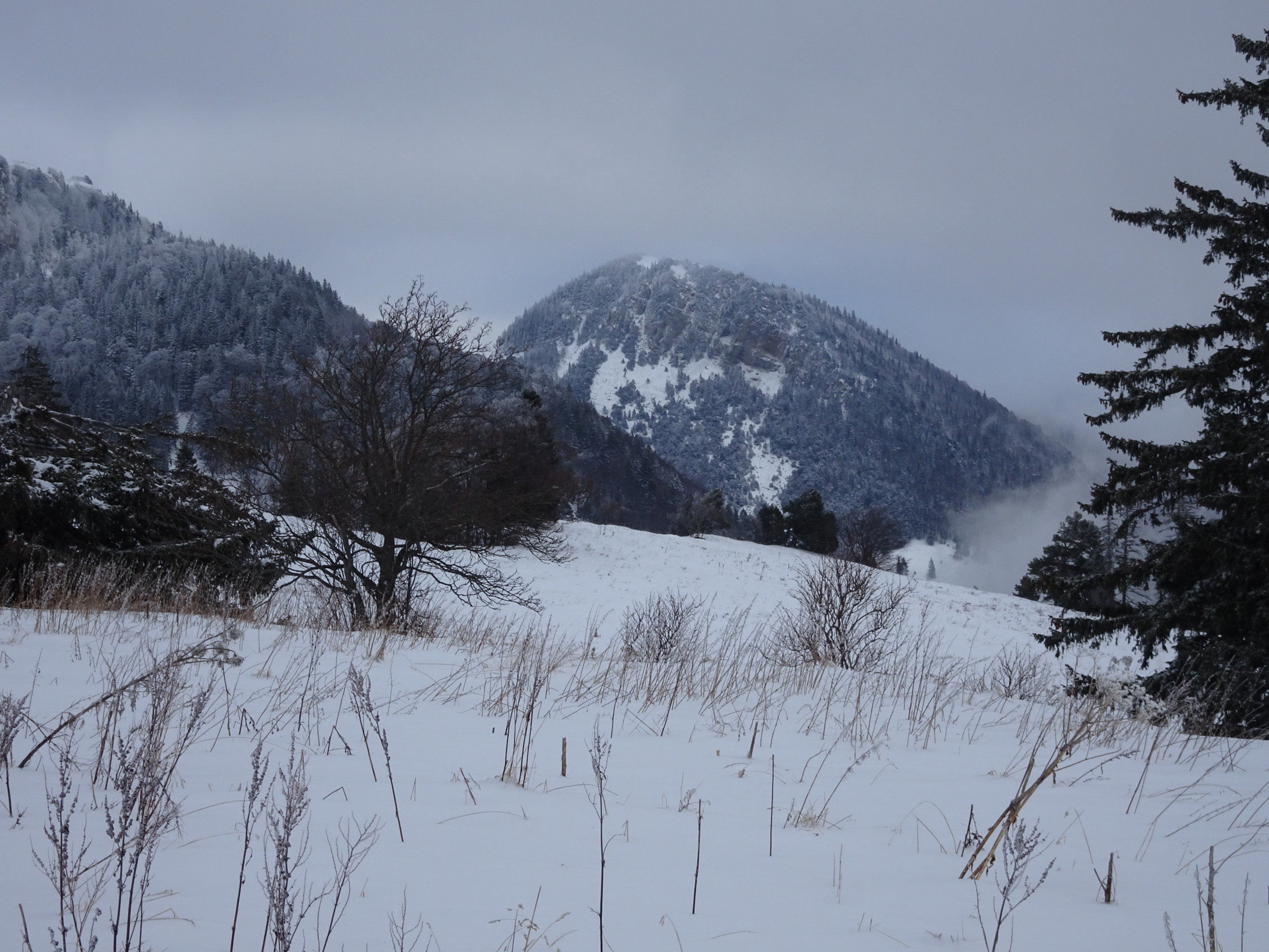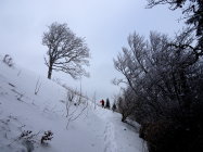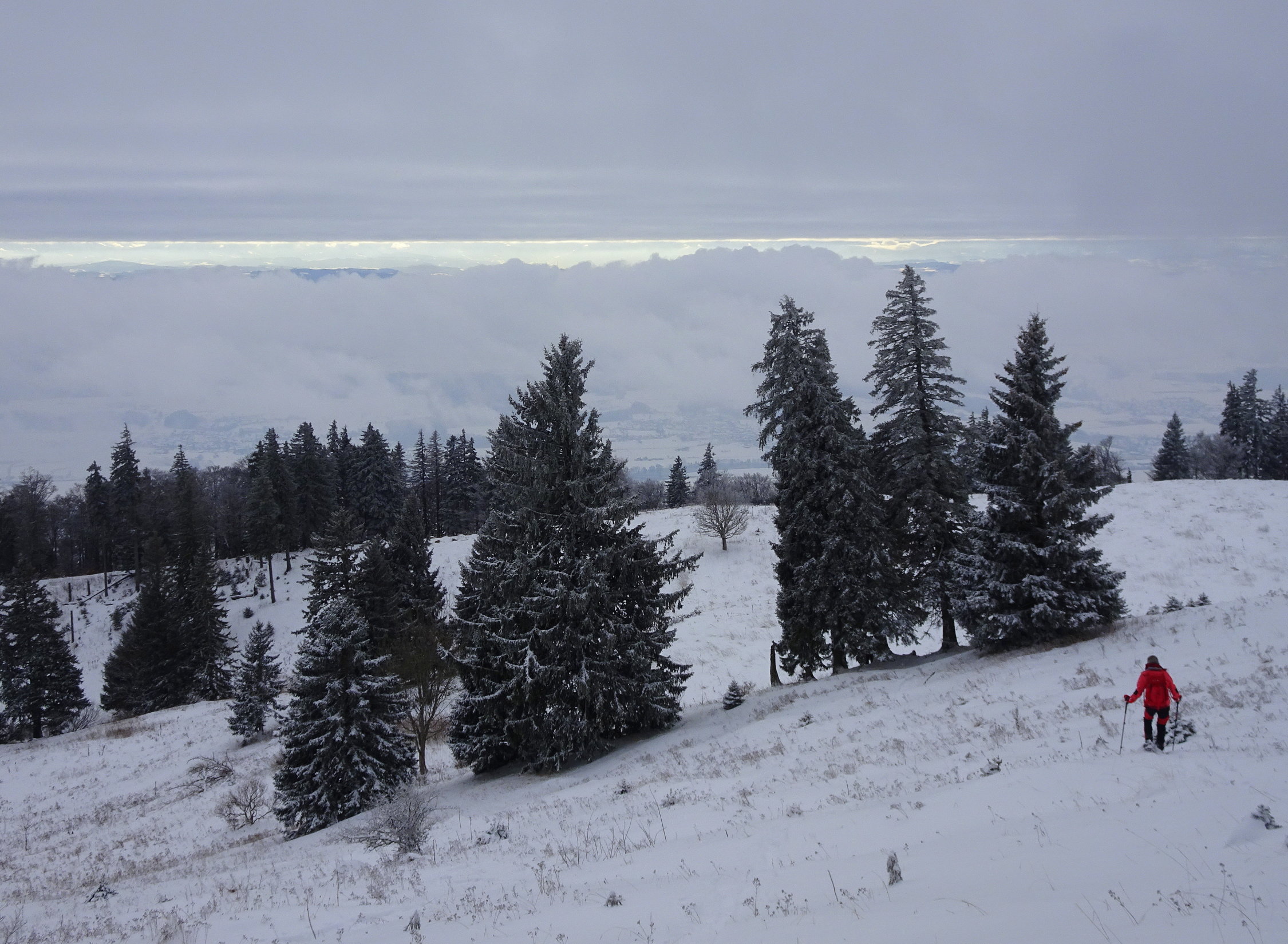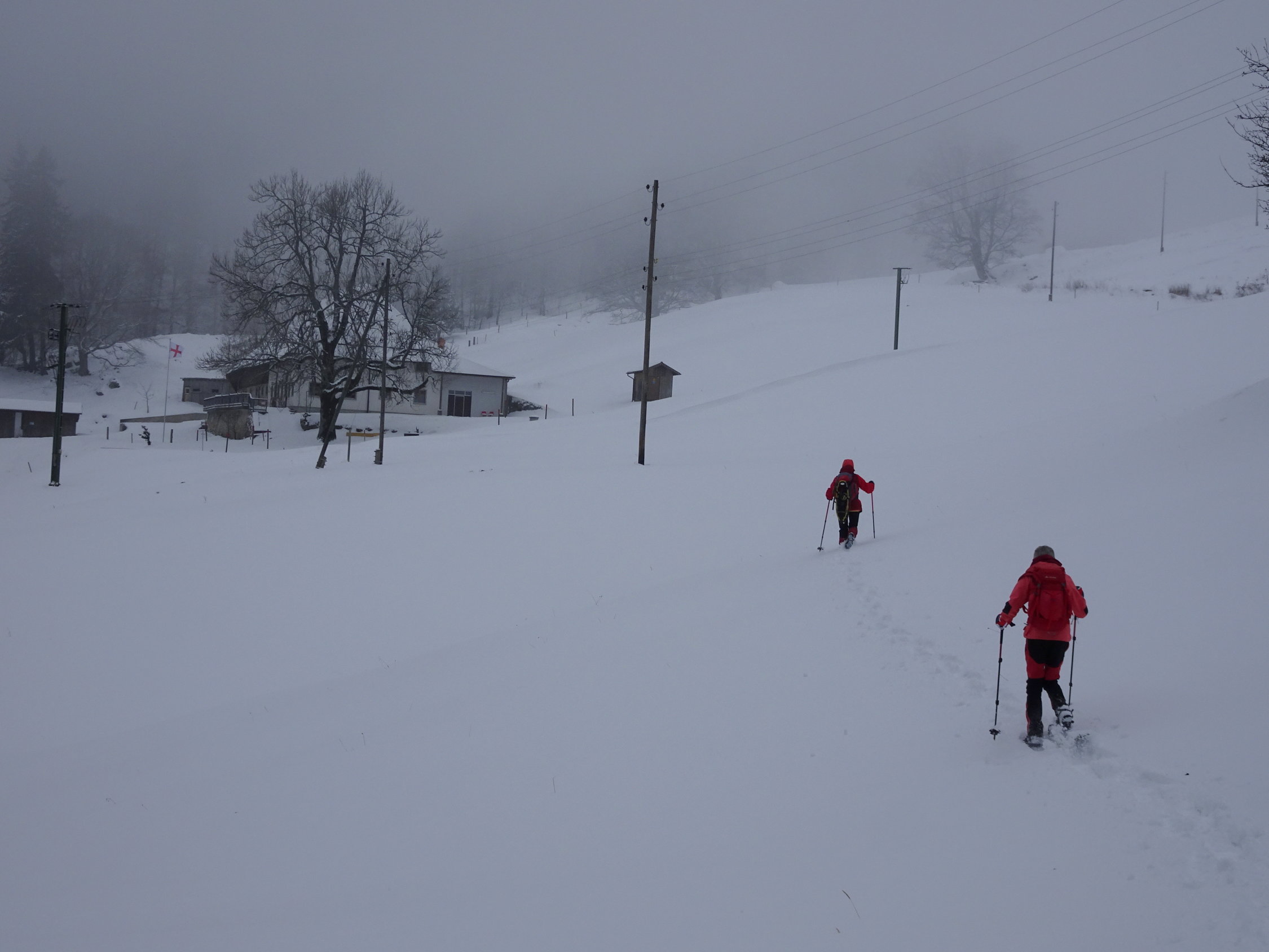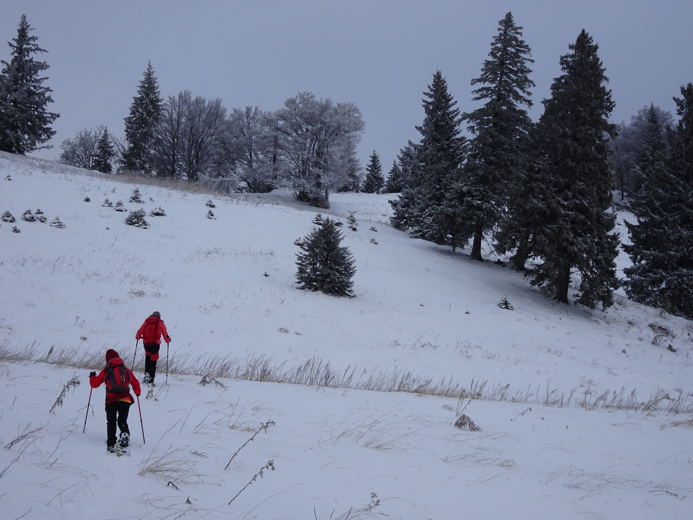 Es sind Touren für Gebietskenner. Einige Wege werden nicht mehr oder nur sporadisch begangen. Es sind nur die offiziellen Wanderwege markiert, da muss man mit Karte, Routine und Fantasie schaffen. Erschwert wird das ganze durch den Schnee der die schwachen Spuren ausebnet und praktisch unsichtbar macht. Ohne meine zwei Juraspezialisten hätte ich, als Neuling im diesen Gebiet, den Berg schon gefunden, aber den besten, speziellen und "richtigen" Weg ? Da bin ich mir nicht so sicher. Ohne Schnee wäre die ganze Sache schon leichter, man sähe die alten Spuren. Eine sehr interessante Tour auch bei schlechtem Wetter. Regen oder Schnee hatten wir nicht, nur Hochnebel.