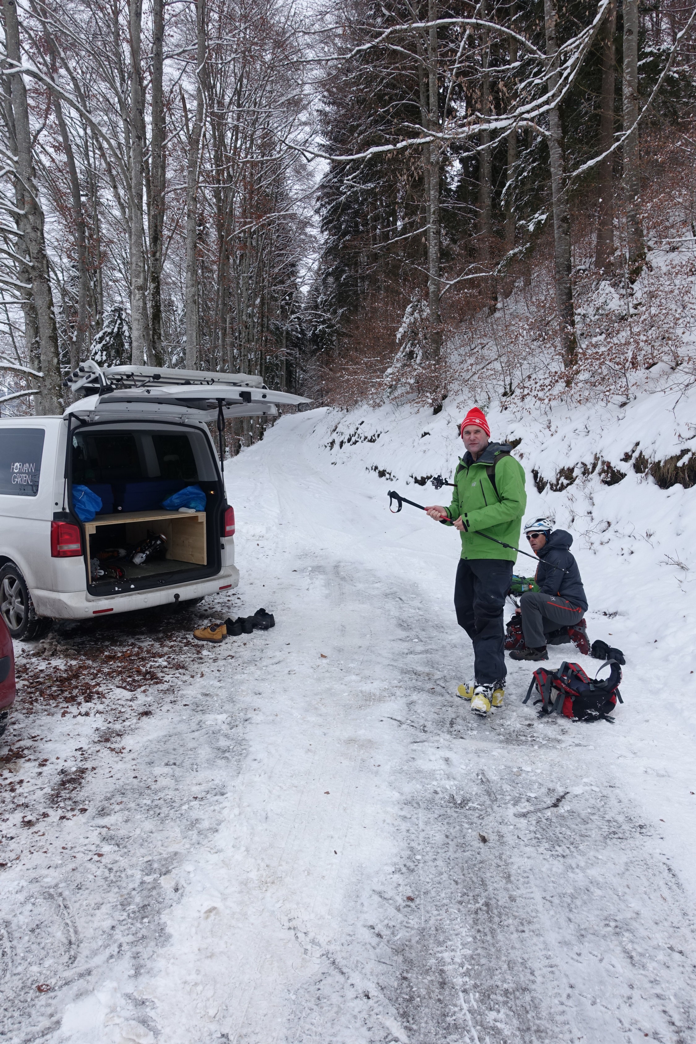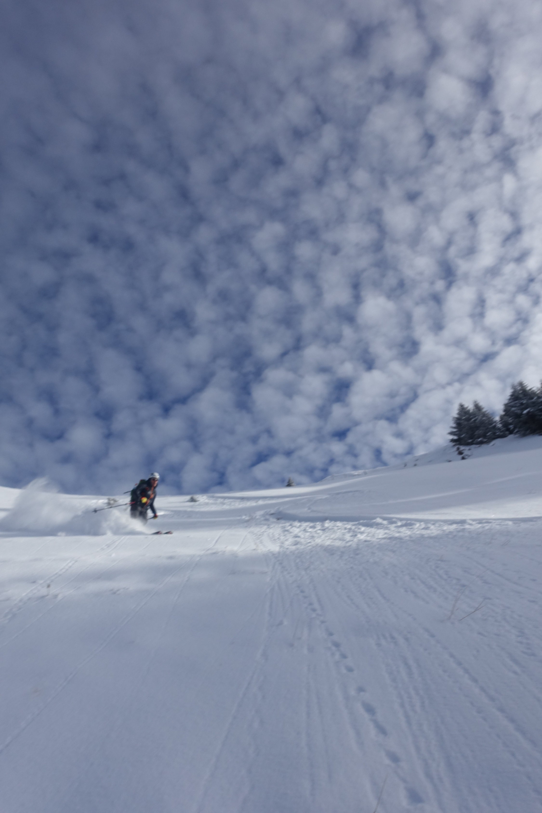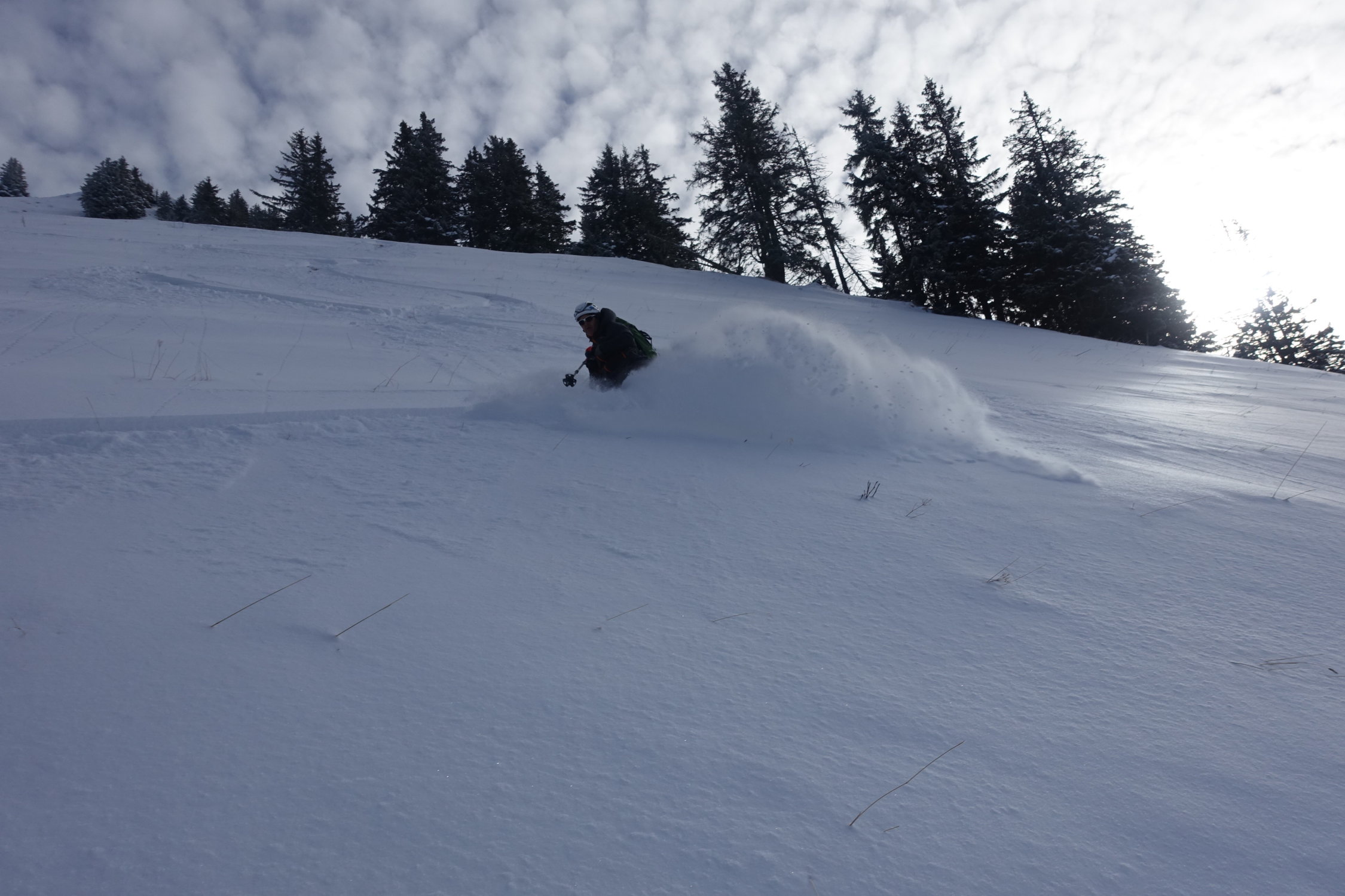 Die breiten Pulferwaffen waren Heute etwas übermotiviert.Aber mit angesagtem Neuschnee fürs Wochenende sichr gut Wahl.