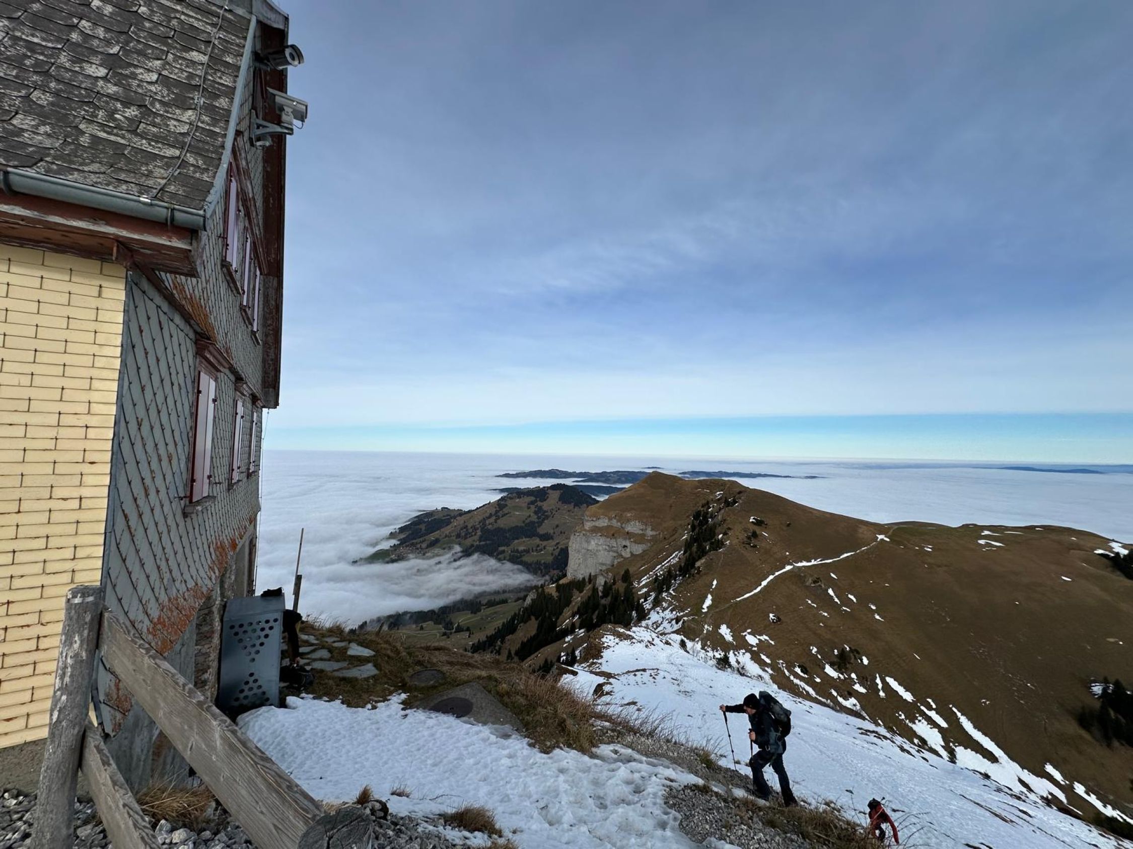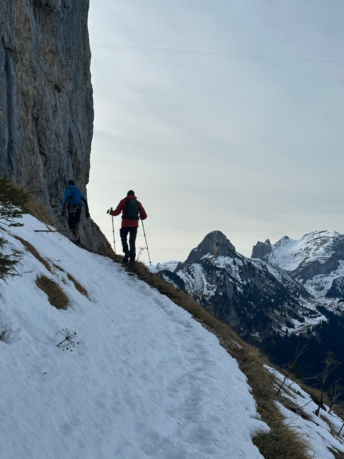 Von Sennwald aus (vom oberen Parplatz 850m), über die Kastenwand zum Hohen Kasten (alles Schnee frei, auser die letzten paar Meter hoch zum Gipel), dann bis zum Kastensattel (Grödeln/Spikes zu empfehlen) und von dort aus wieder schneefrei runter zur Alpe Rohr.