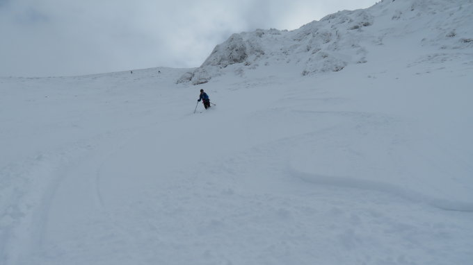 Das schlechteste war heute wie erwartet der Gipfelhang vom Fädi der zum teil fast bis aufs Gras abgeblasen wurde.