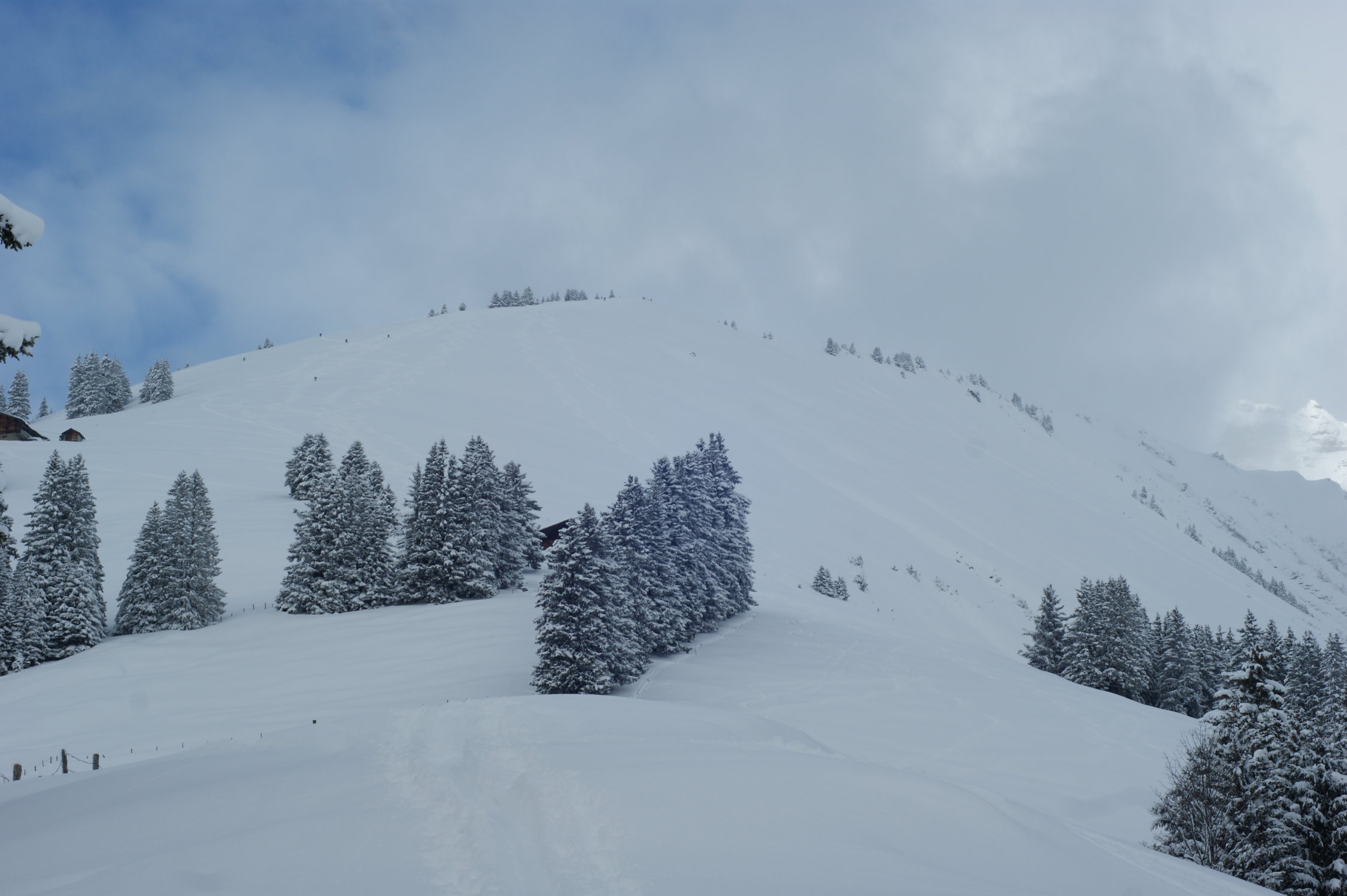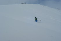 Heute waren ca. 15 Personen am Berg, dementsprechend sind die Hänge verfahren. Es hat jedoch noch viel Platz für grosse Bögen.